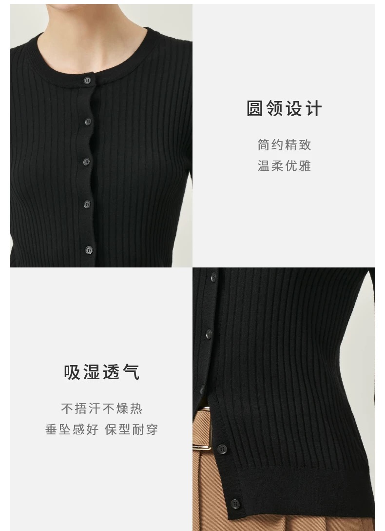 【三石*澜同款】精纺60支100%羊毛坑条圆领开衫,实穿百搭