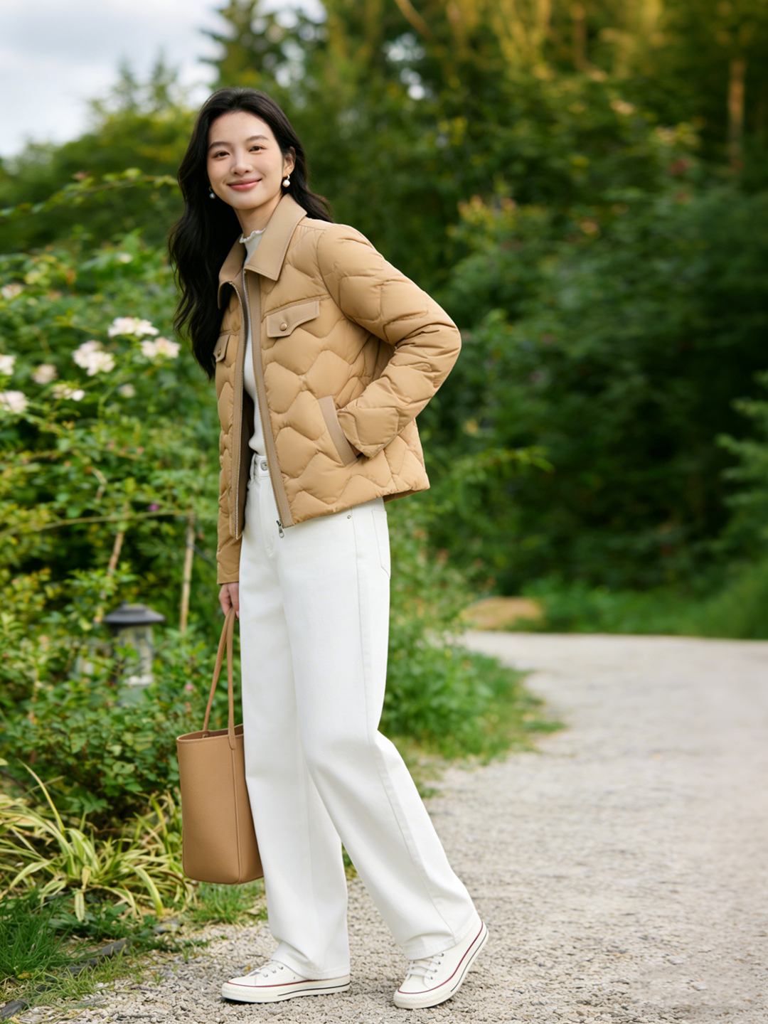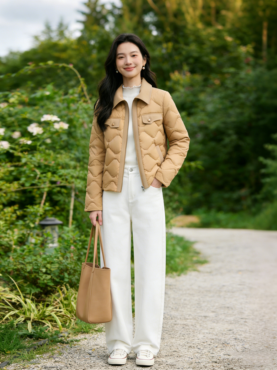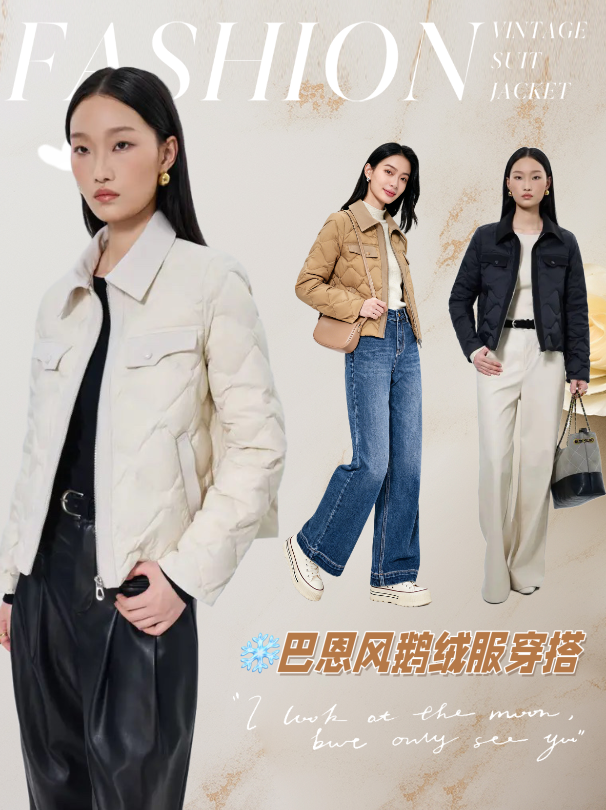 🔥 巴恩风鹅绒服✨拼接翻领,利落大方,不挑脸型; 90白鹅绒填充,轻盈温暖不压身✨ 短款合体款式,小个子穿也显高显瘦