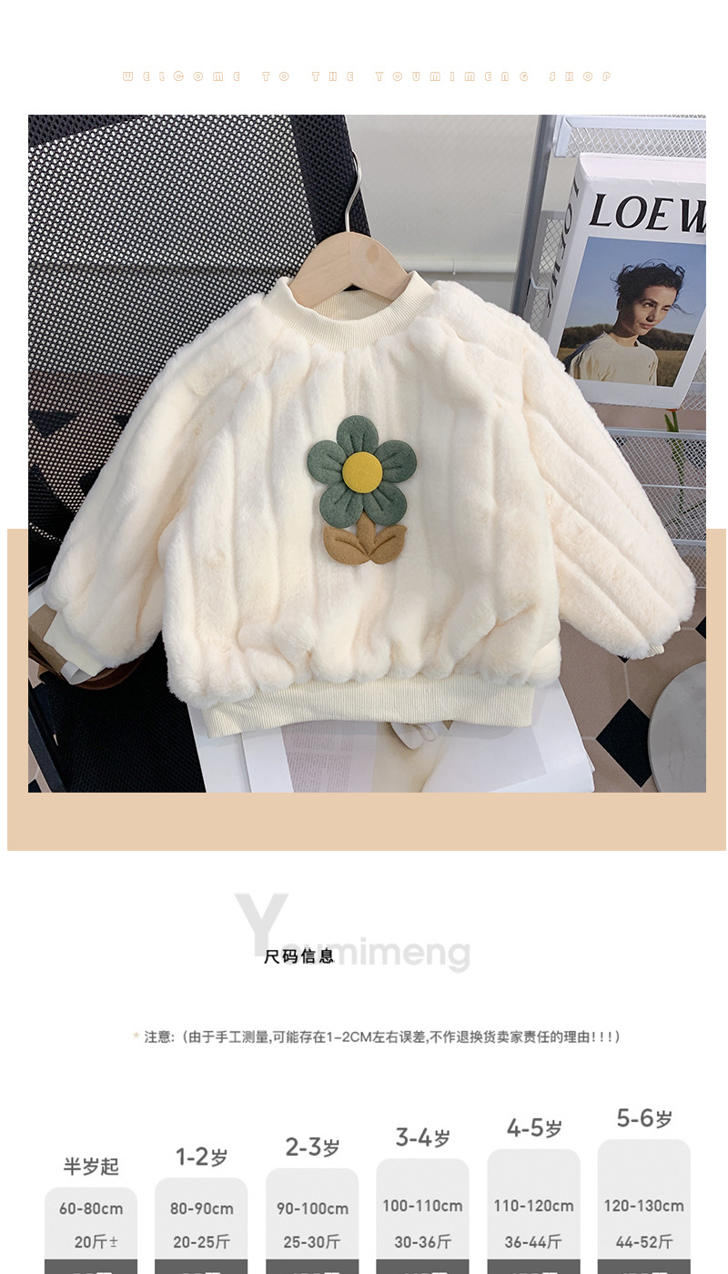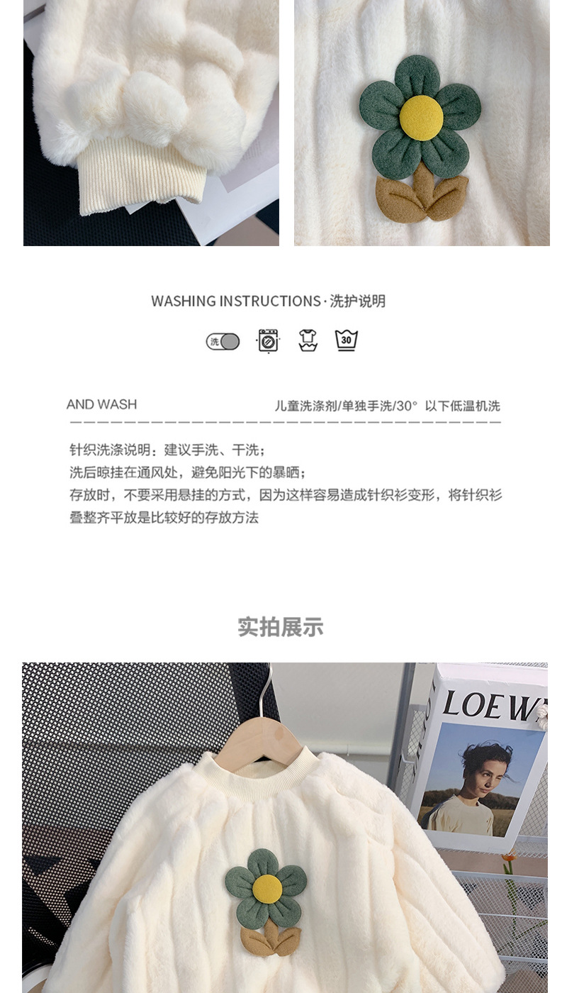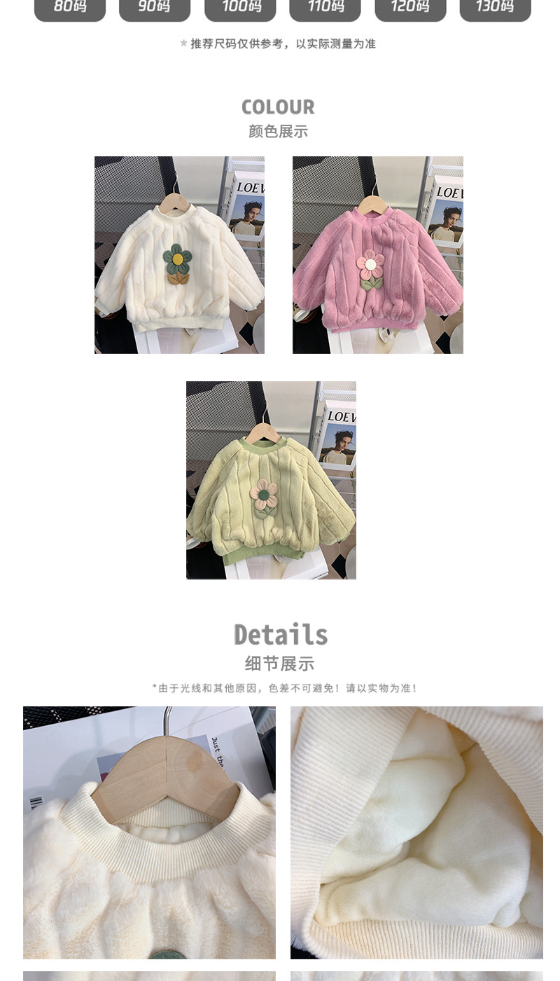 【柔软舒适,儿童专属暖意】女童冬装毛毛加绒卫衣2024春秋季新款,洋气儿童宝宝保暖加厚毛绒上衣,精致的剪裁和精美的图案使其更具时尚感和洋气感!