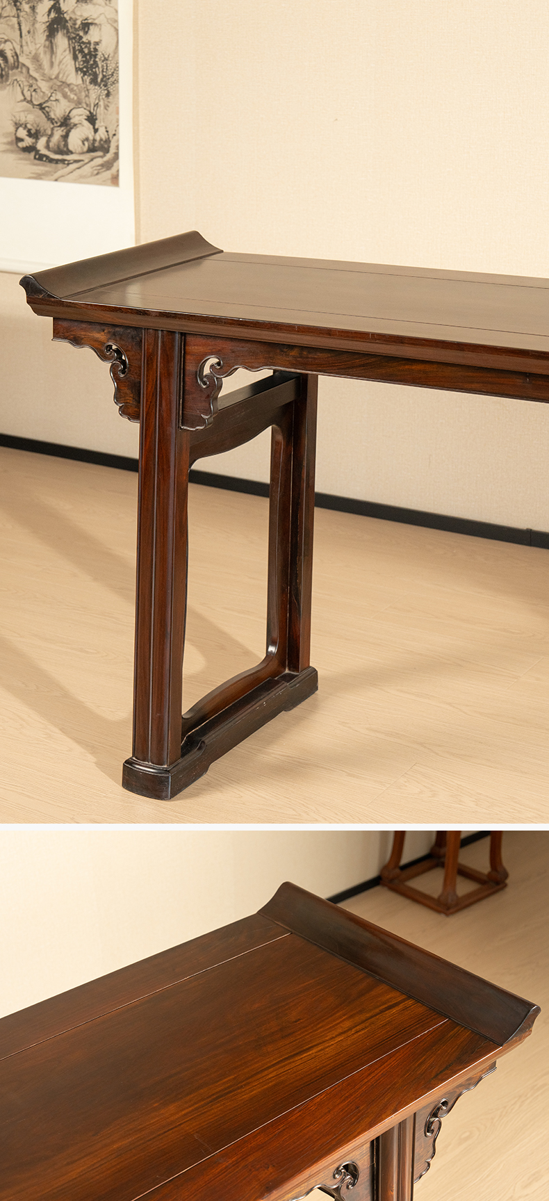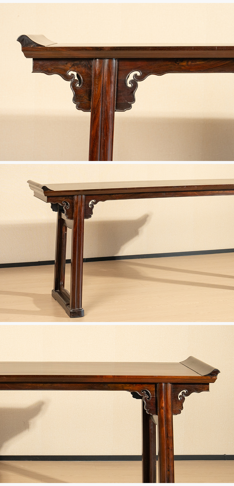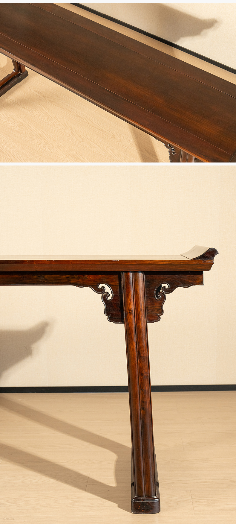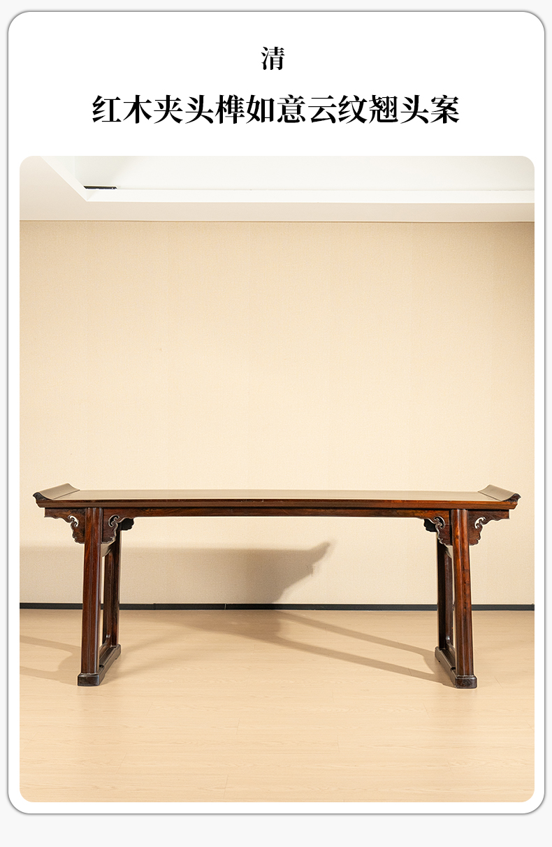 清代 红木夹头榫如意云纹翘头案