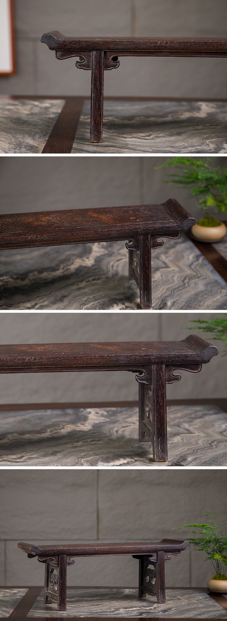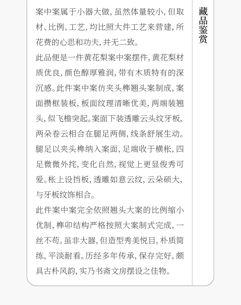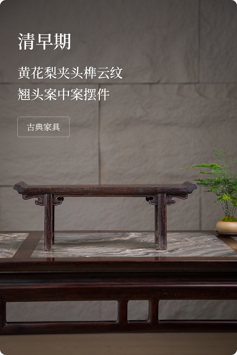 清早期 黄花梨夹头榫云纹翘头案中案摆件