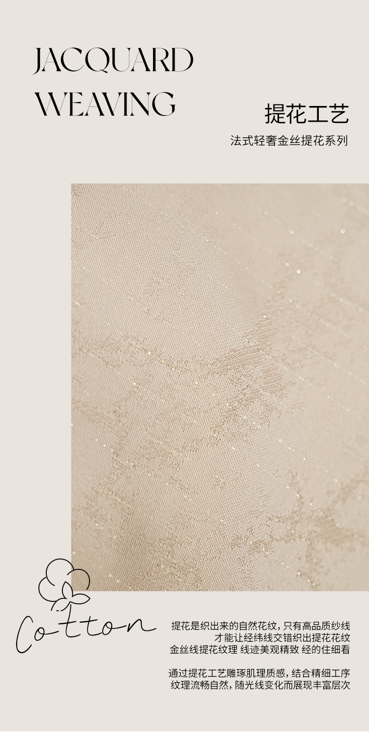 佳丽斯60S贡缎提花四件套-金丝斑斓(床单款-奶油黄)/1套(被套220*240cm,适合1.8/2m床)补单专用