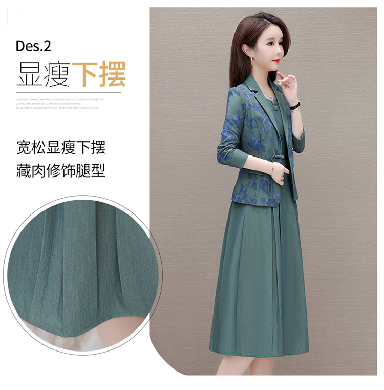 通勤时尚,印花小西装外套长款内搭连衣裙两件套QYM-XYKL-28053-6-L