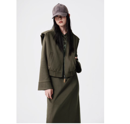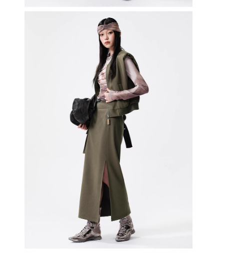D63春季新品咖色复古垫肩马甲背心休闲无袖外套