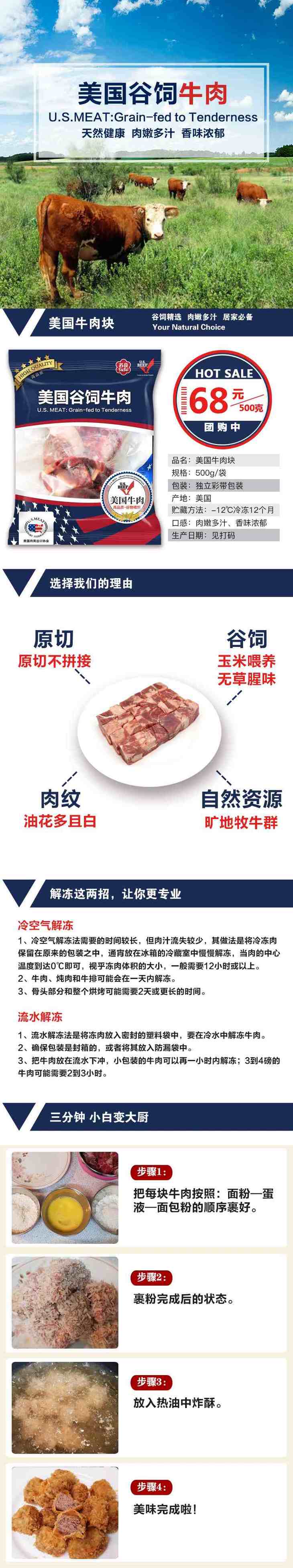 美国谷饲上脑牛肉块500g【021】
