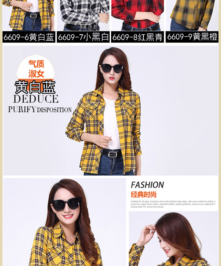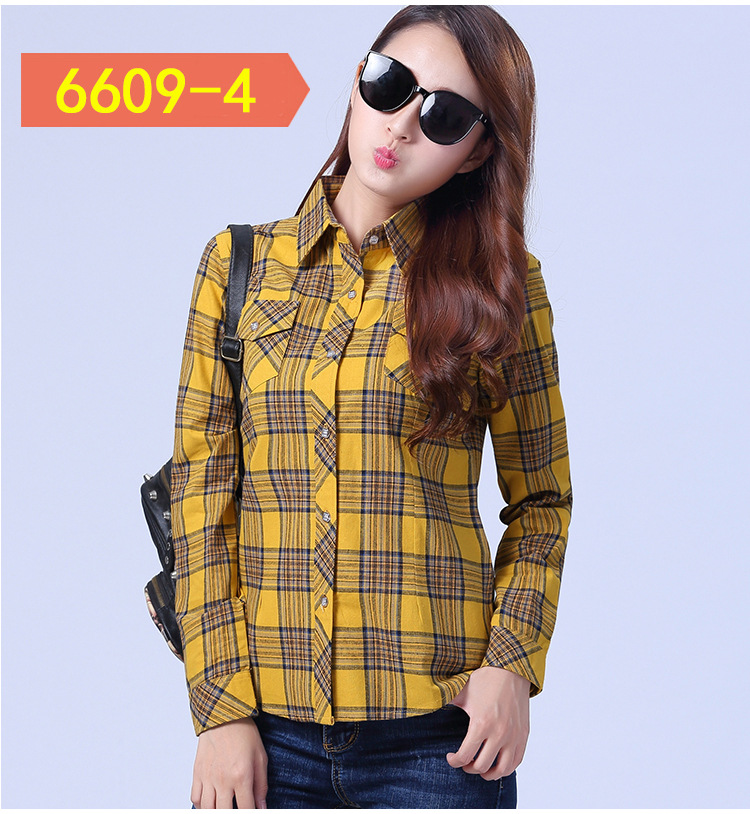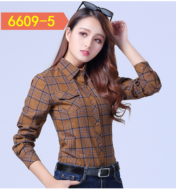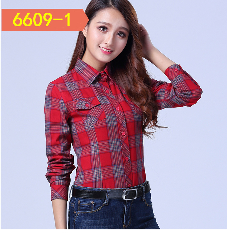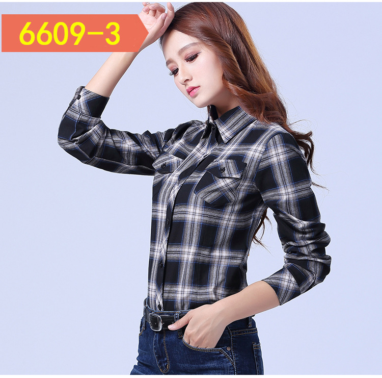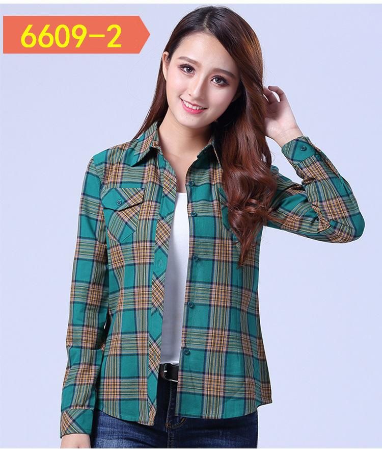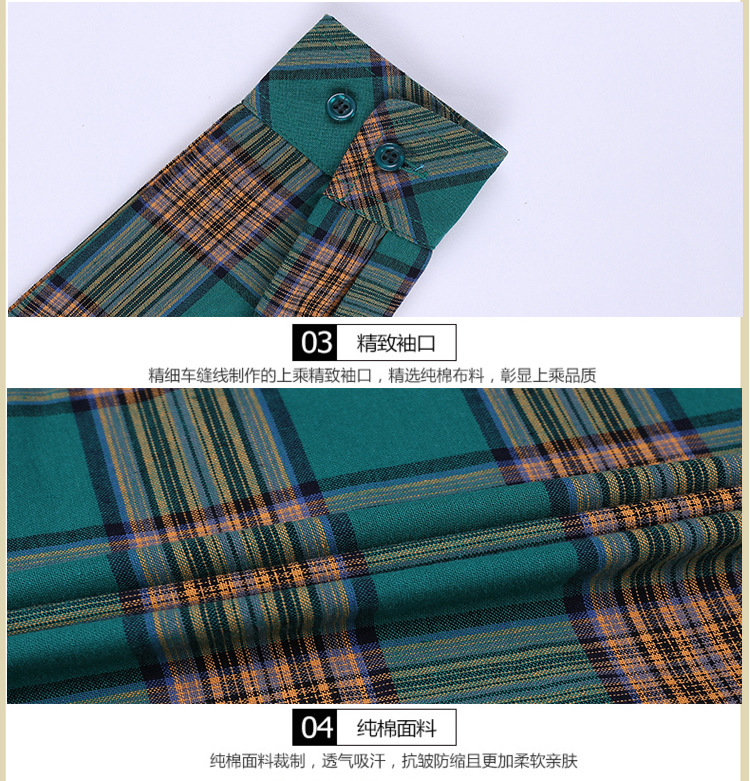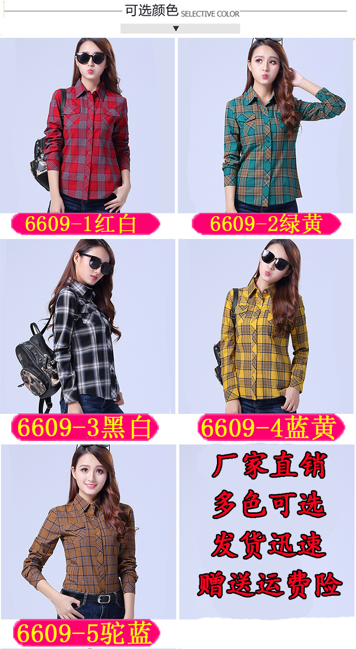 MY-6609-3新款韩版修身大码纯棉格子衬衫