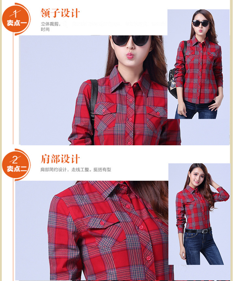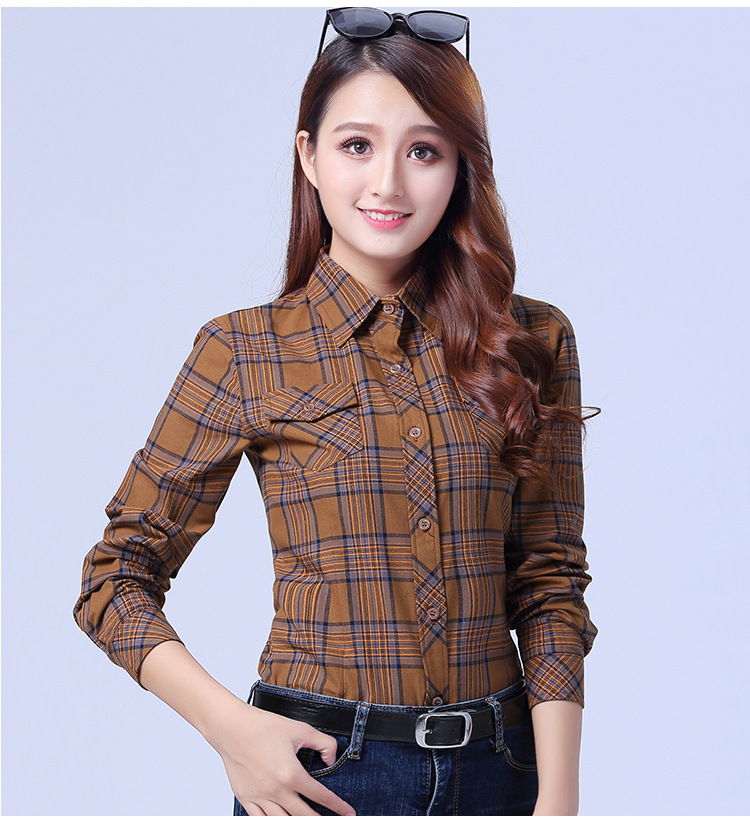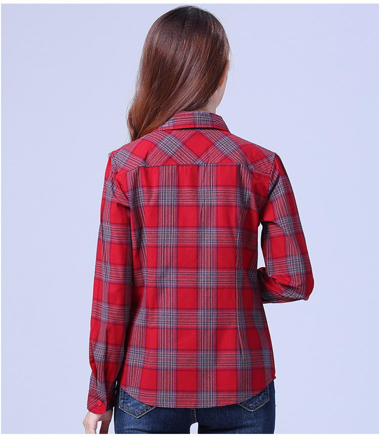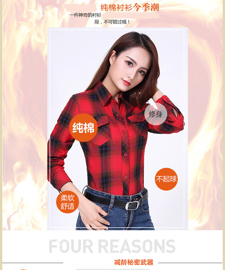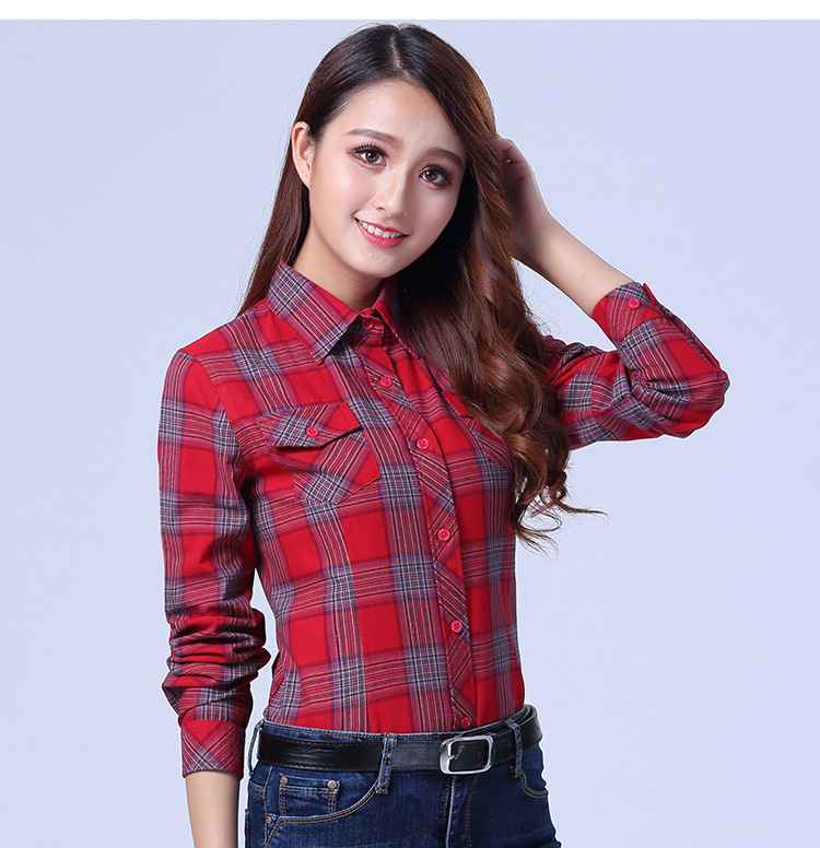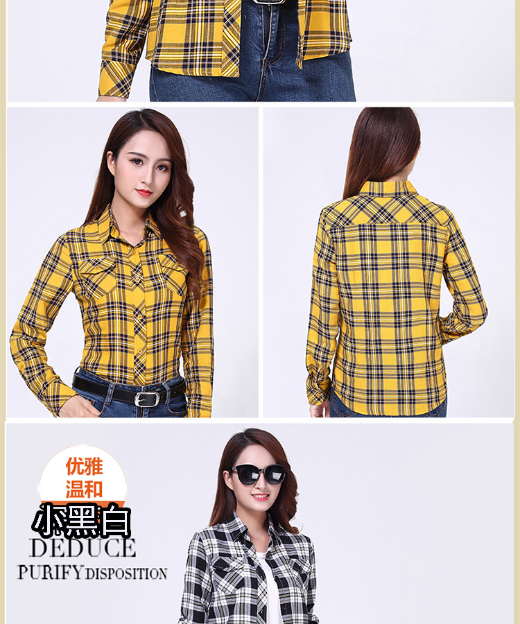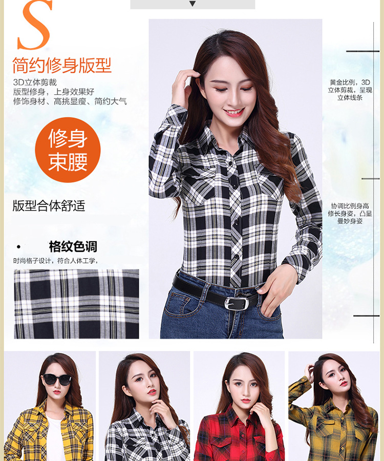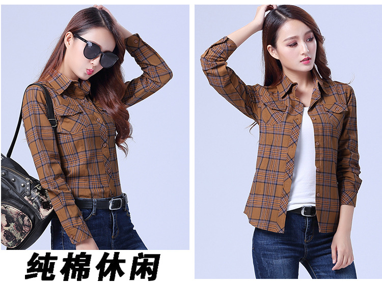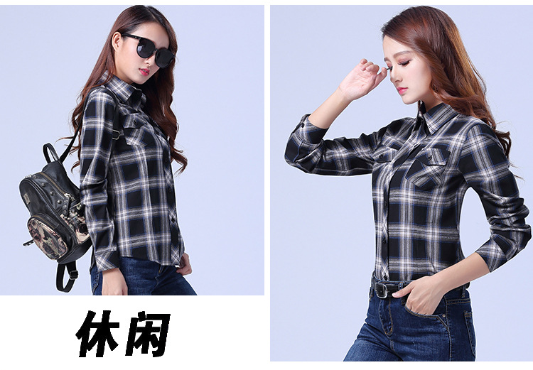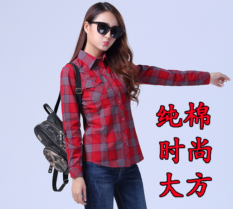 纯棉格子衬衫女长袖2018春夏新款韩版修身大码女装上衣打底衫外套