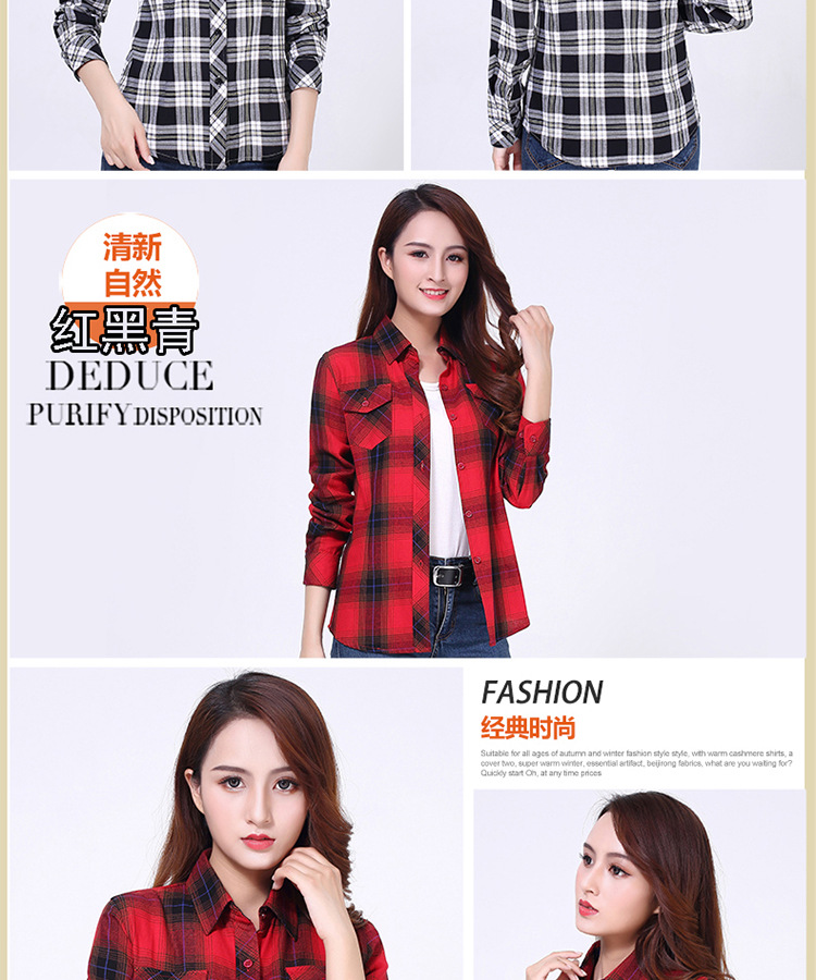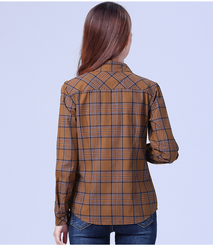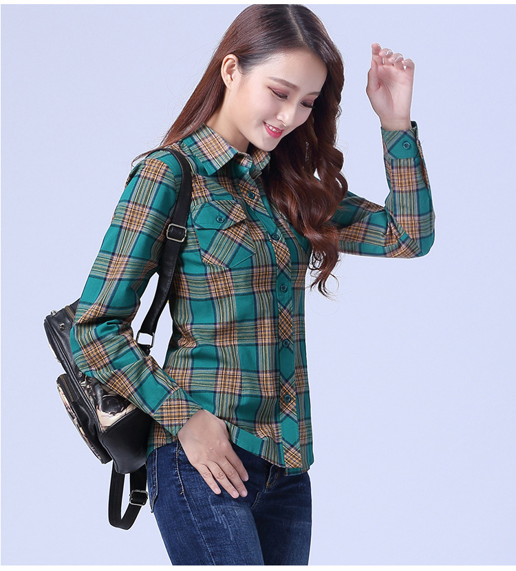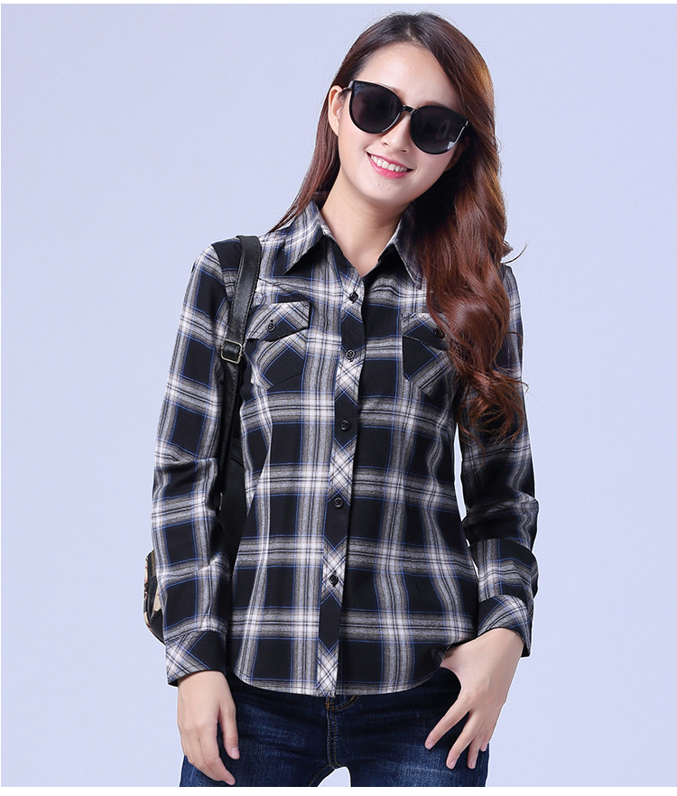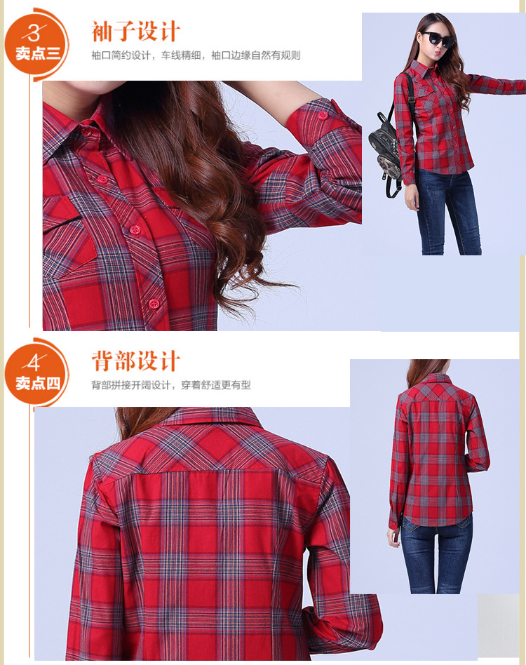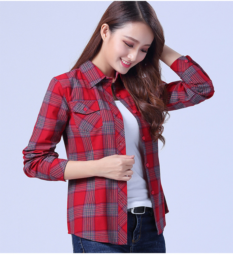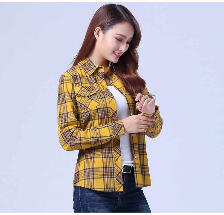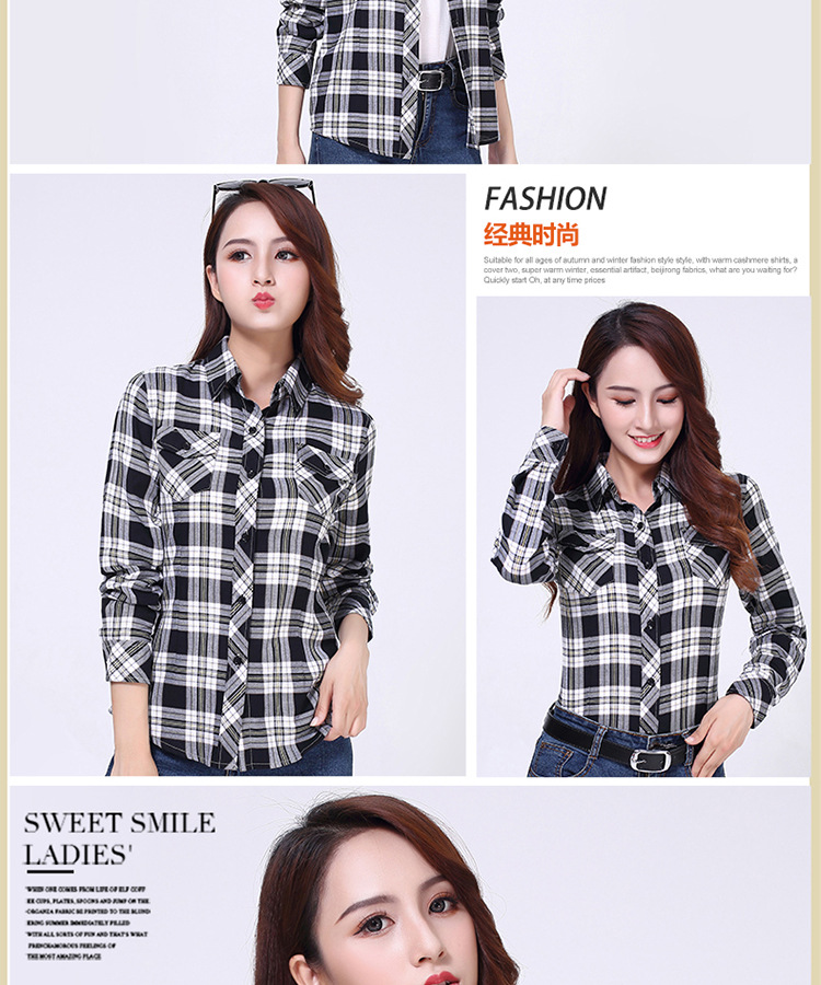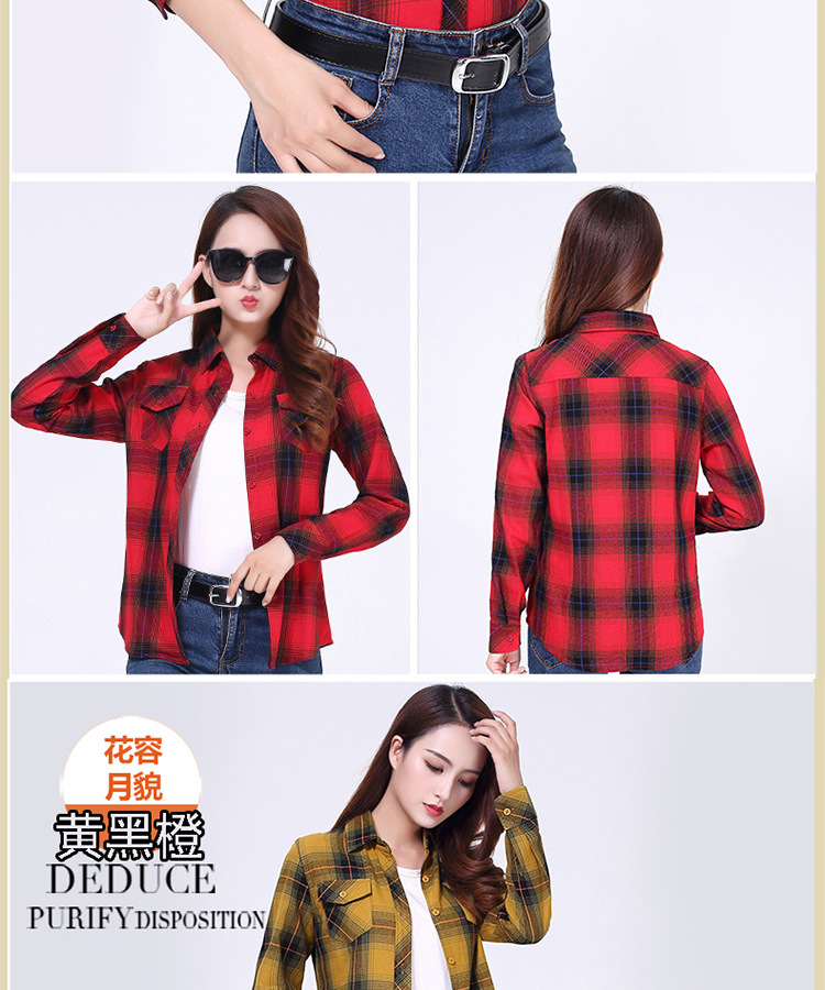 纯棉格子衬衫女长袖2018春夏新款韩版修身大码女装上衣打底衫外套