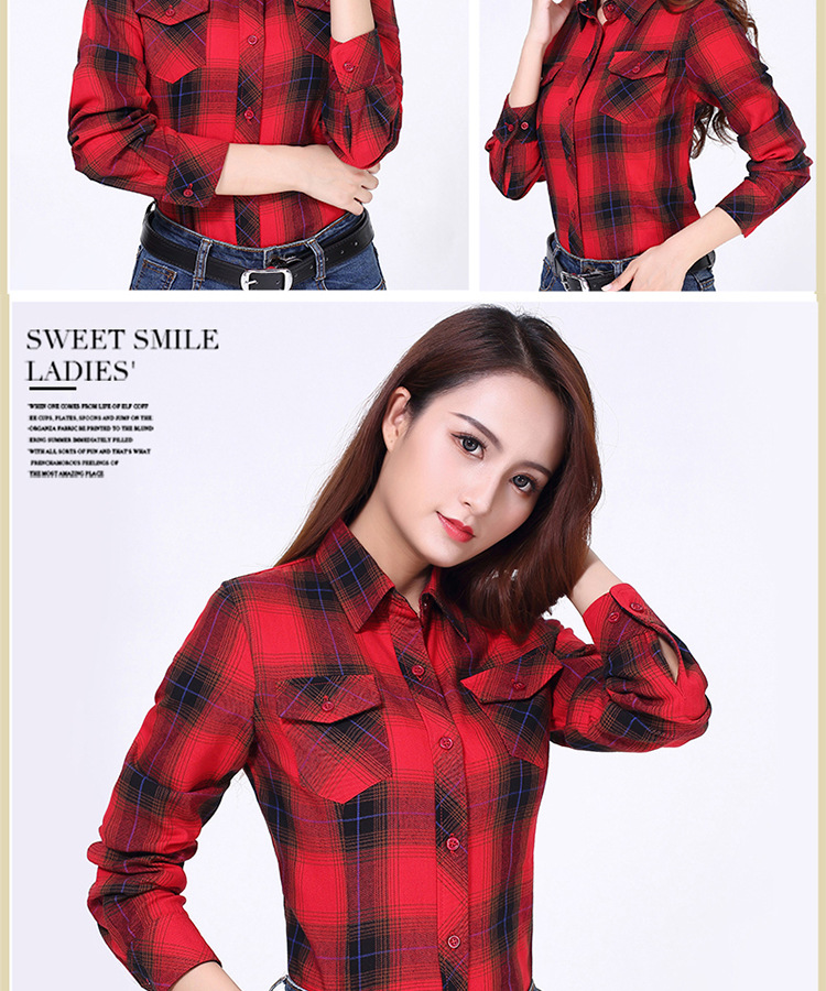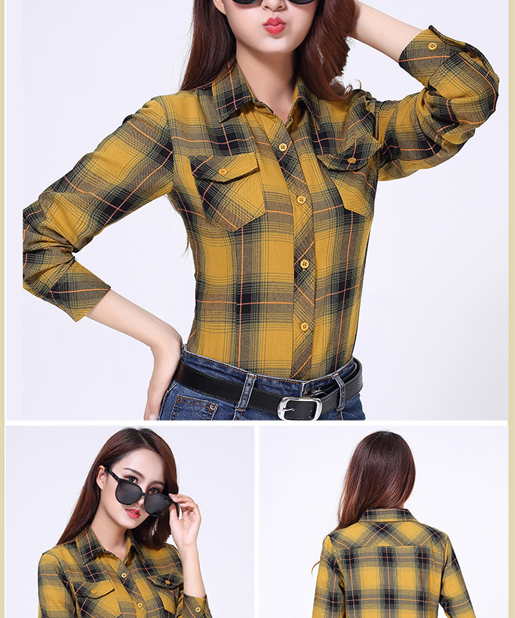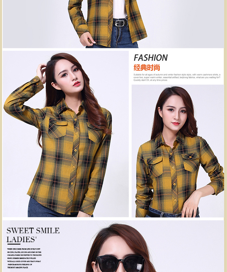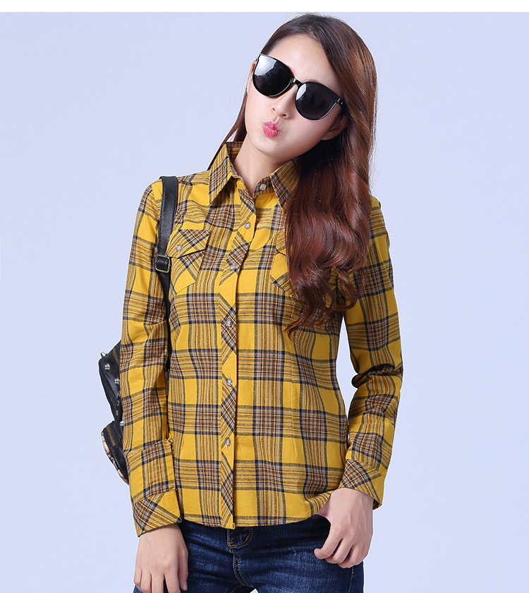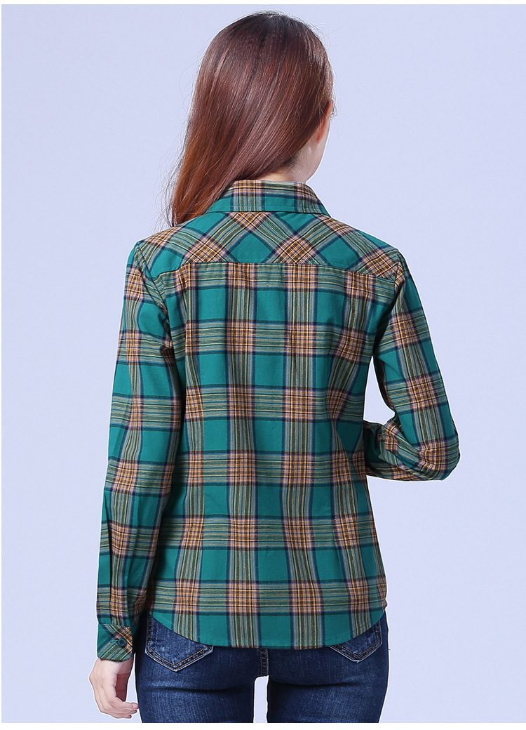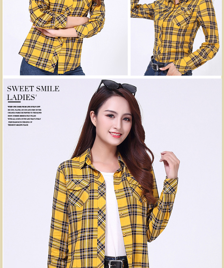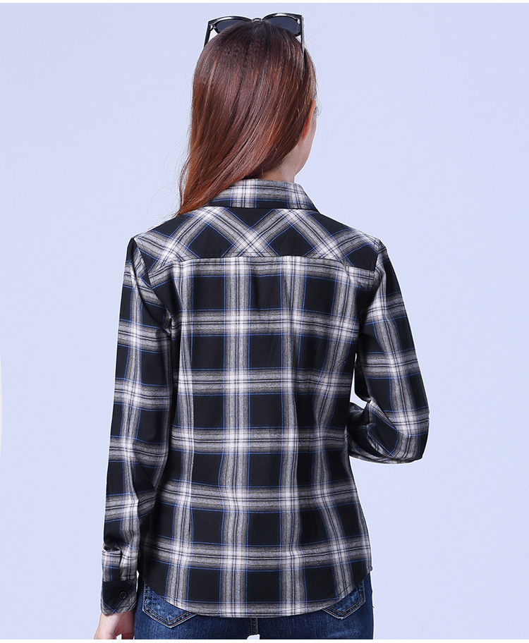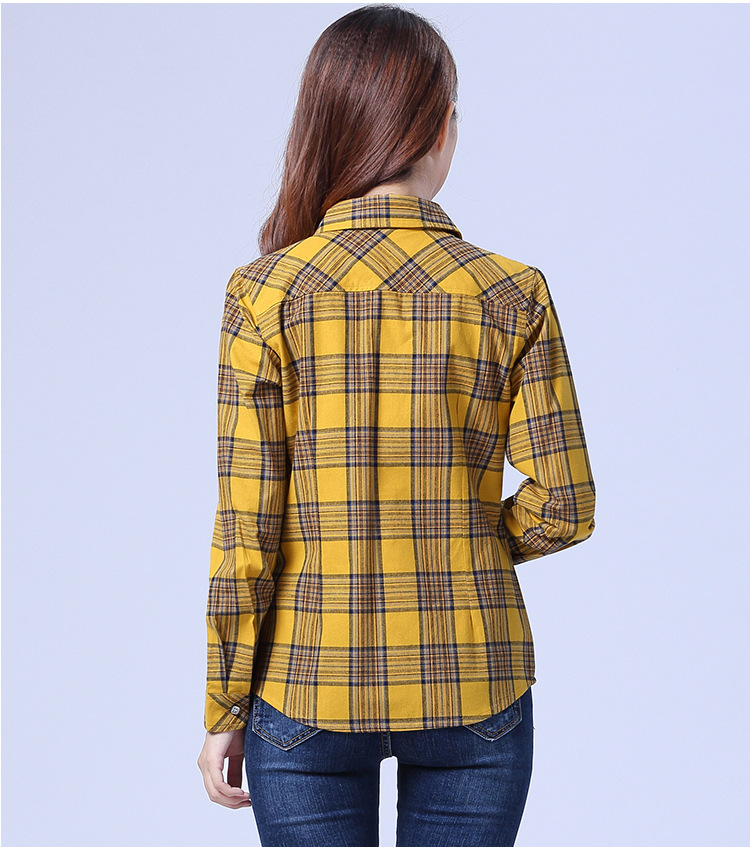 纯棉格子衬衫女长袖2018春夏新款韩版修身大码女装上衣打底衫外套