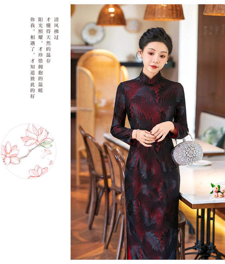 蓝色刺绣加绒加厚冬装国风改良旗袍年轻款 SC22380