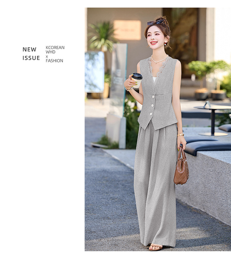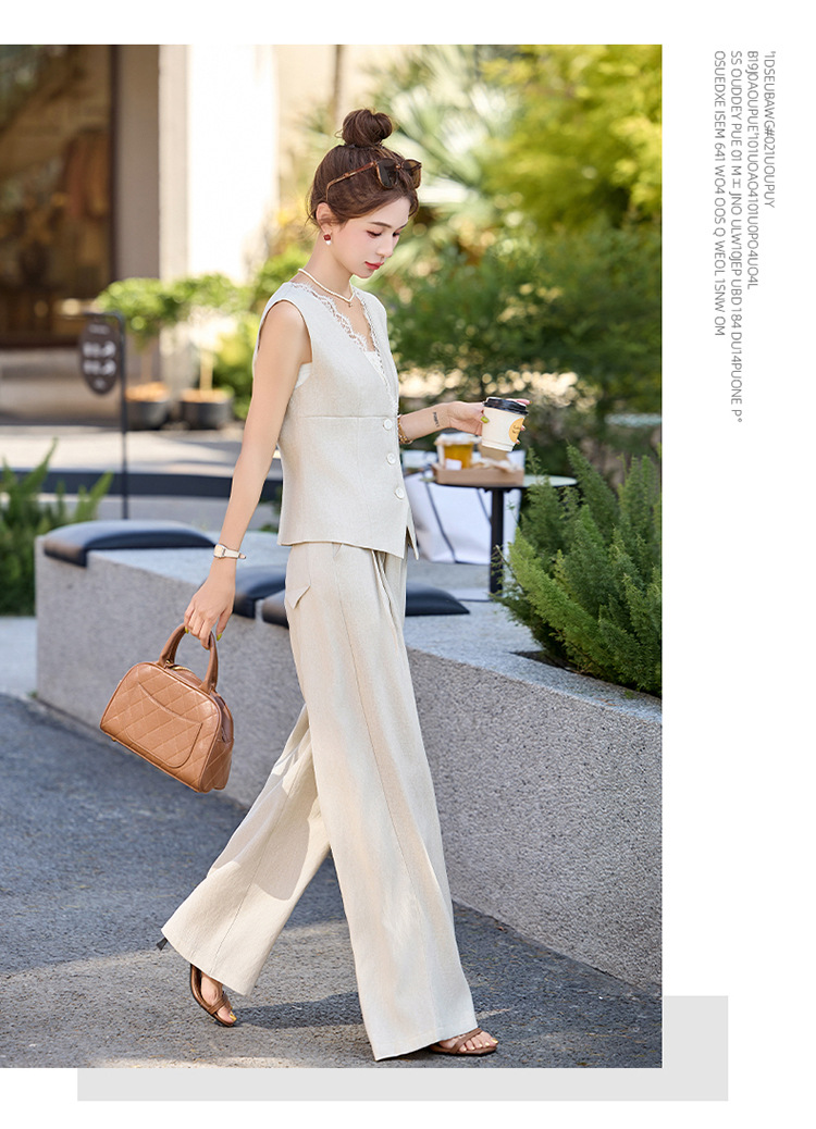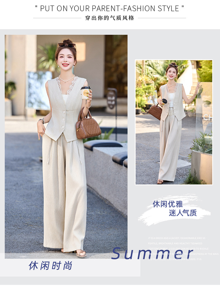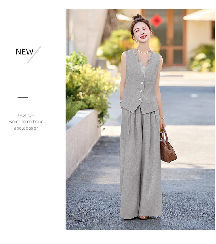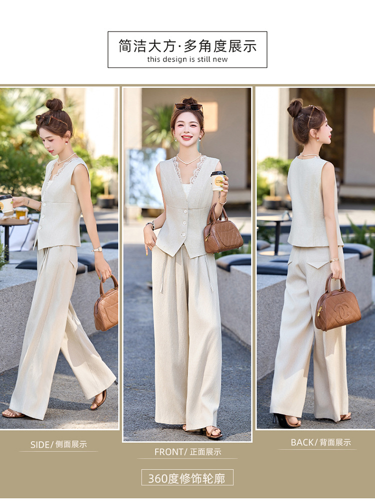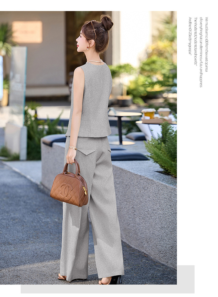新款舒适领型提升女人味阔腿裤脚穿着透气舒适两件套套裤