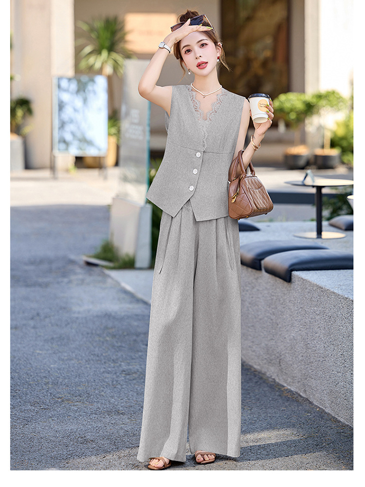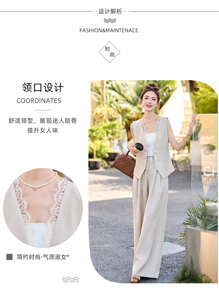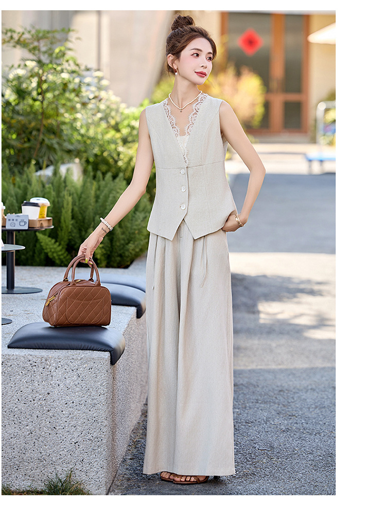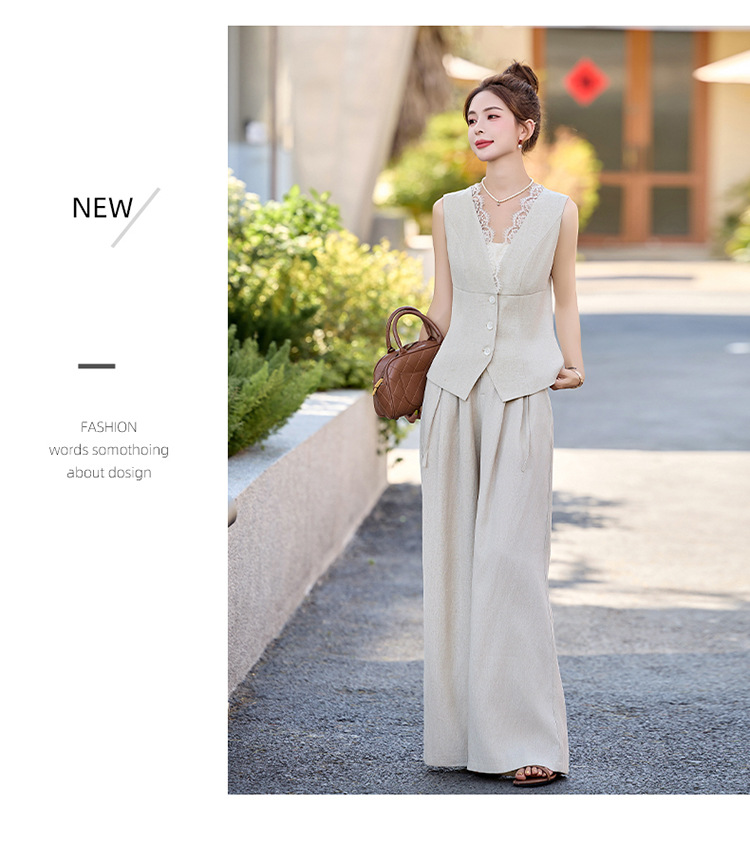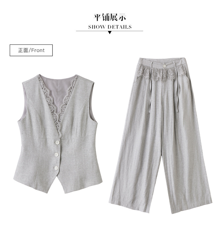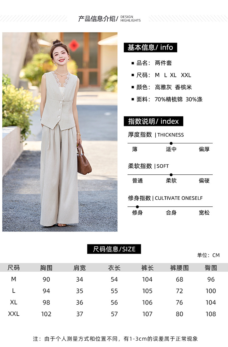 新款舒适领型提升女人味阔腿裤脚穿着透气舒适两件套套裤