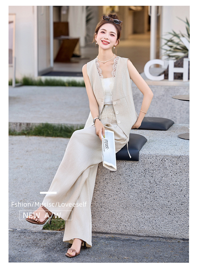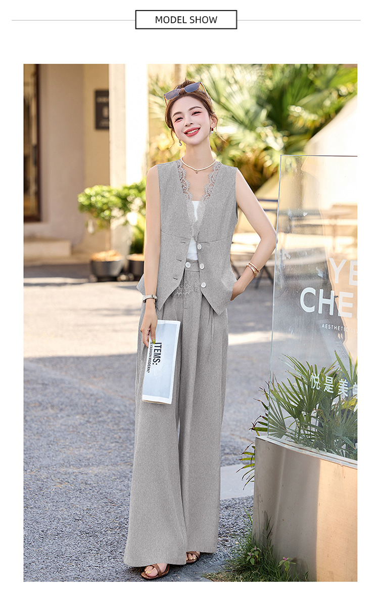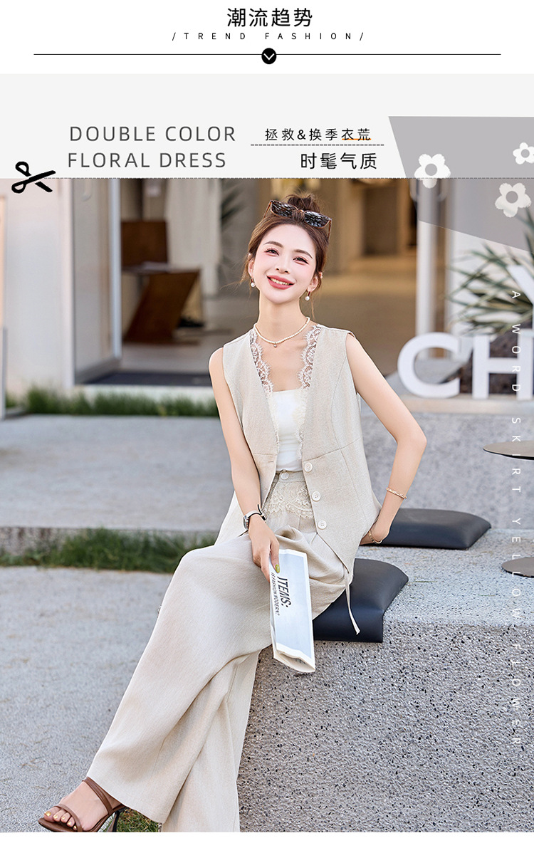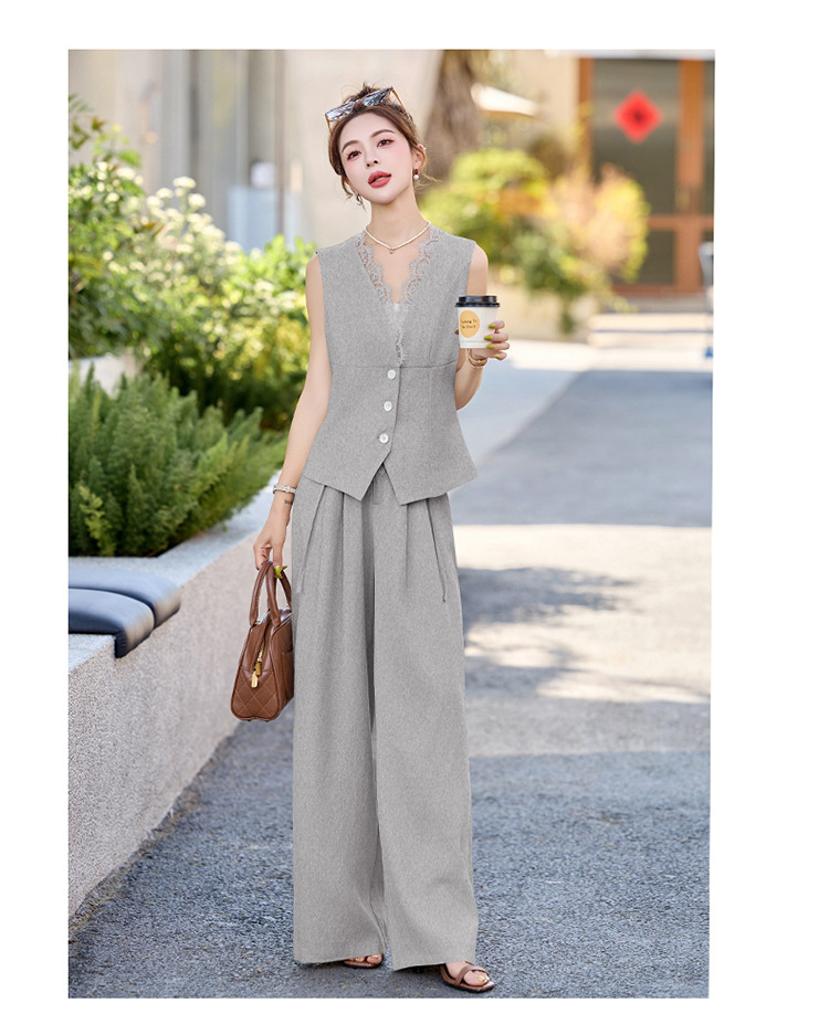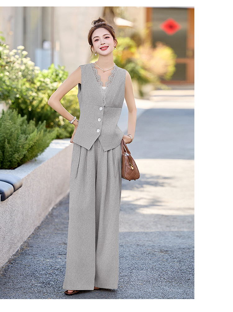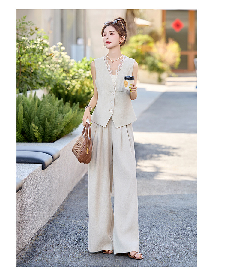新款舒适领型提升女人味阔腿裤脚穿着透气舒适两件套套裤