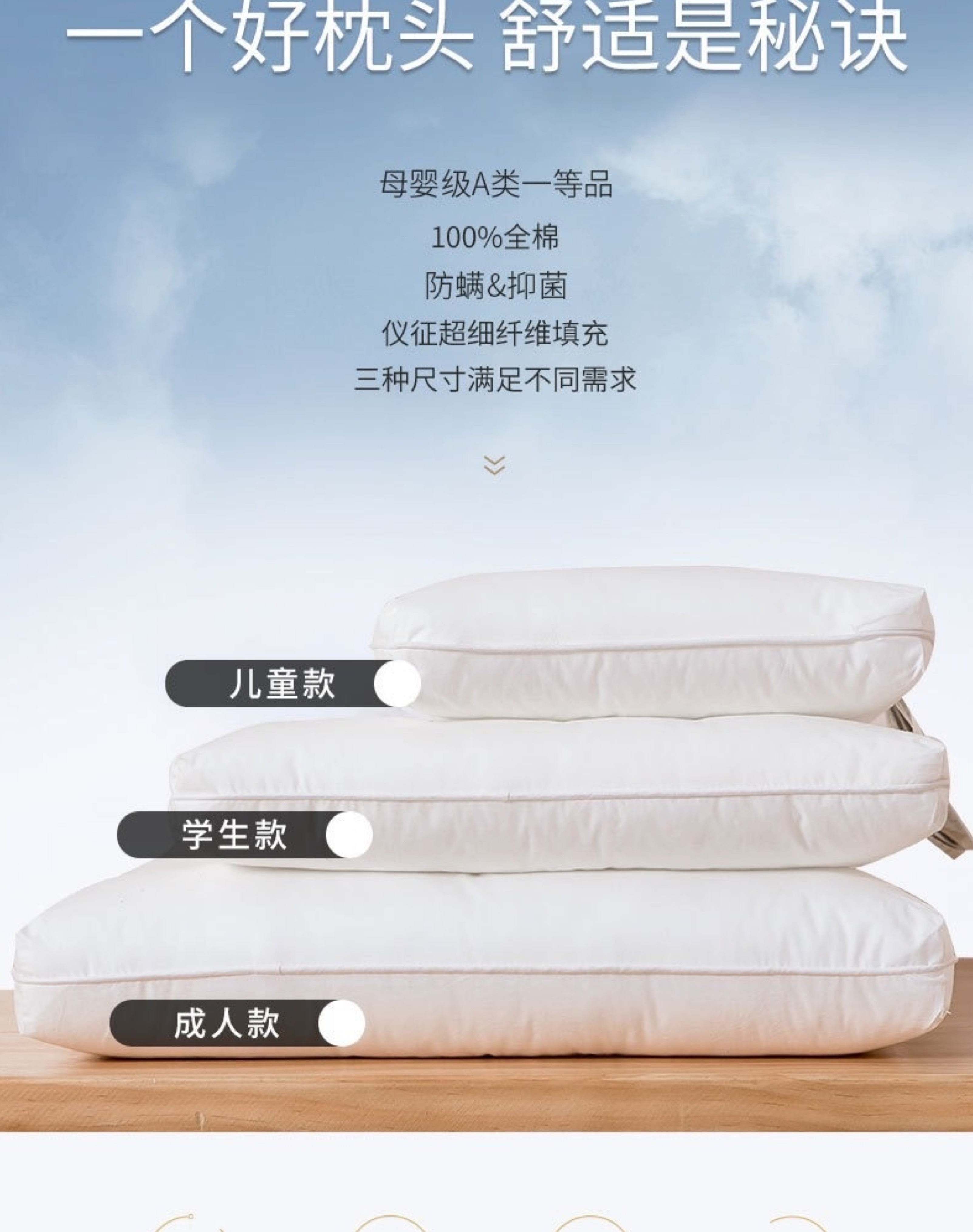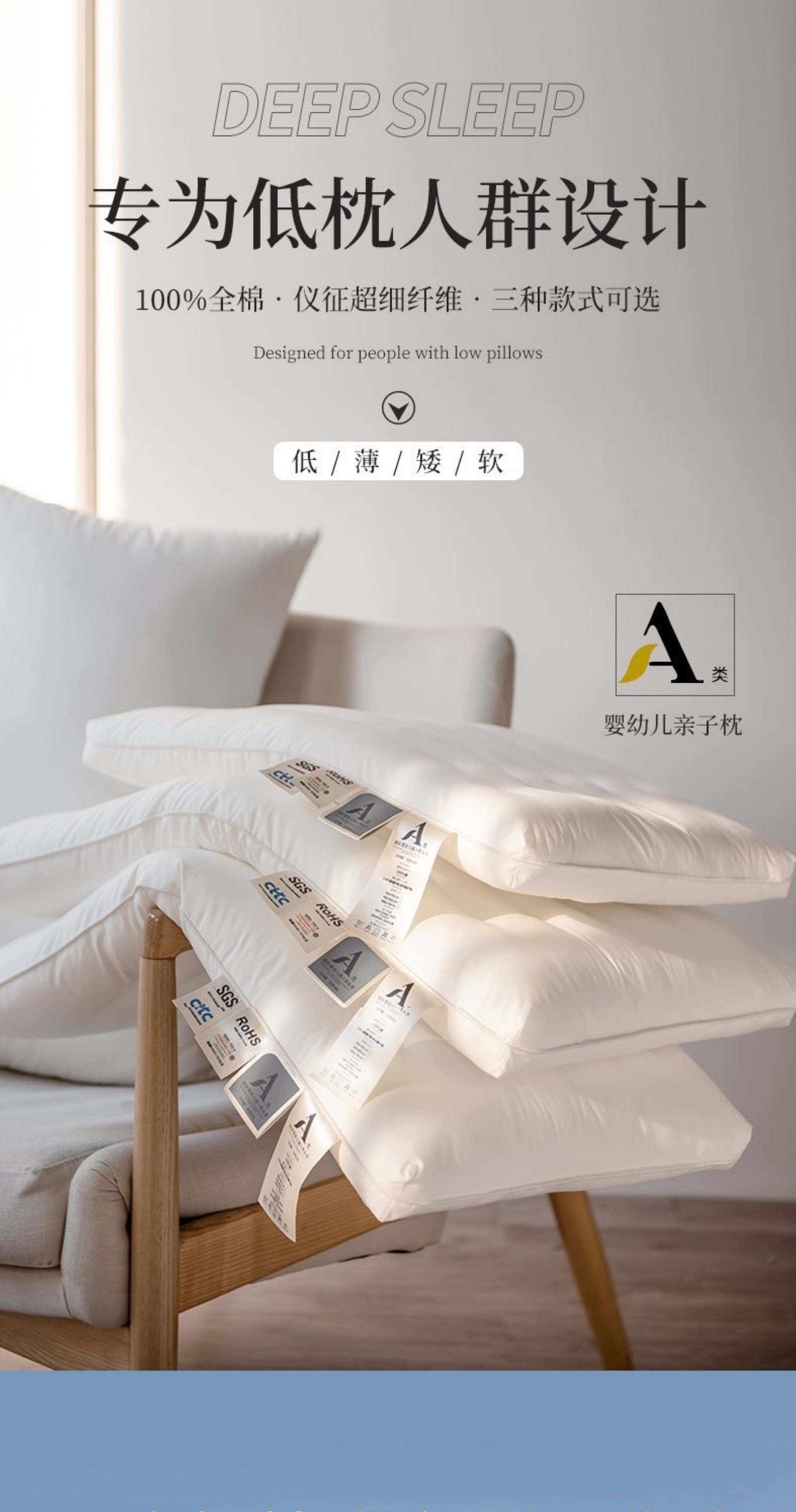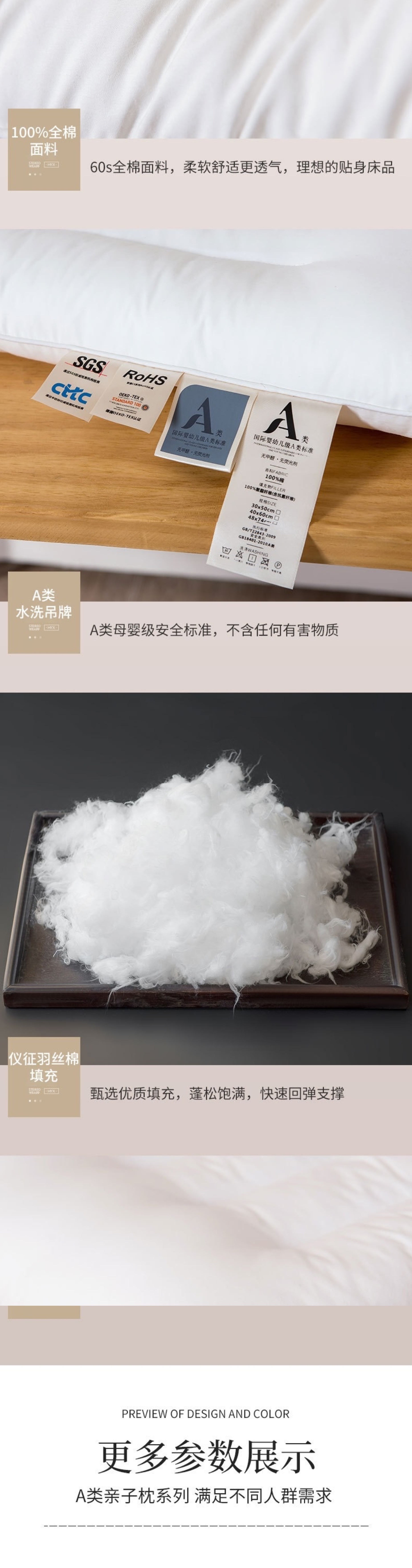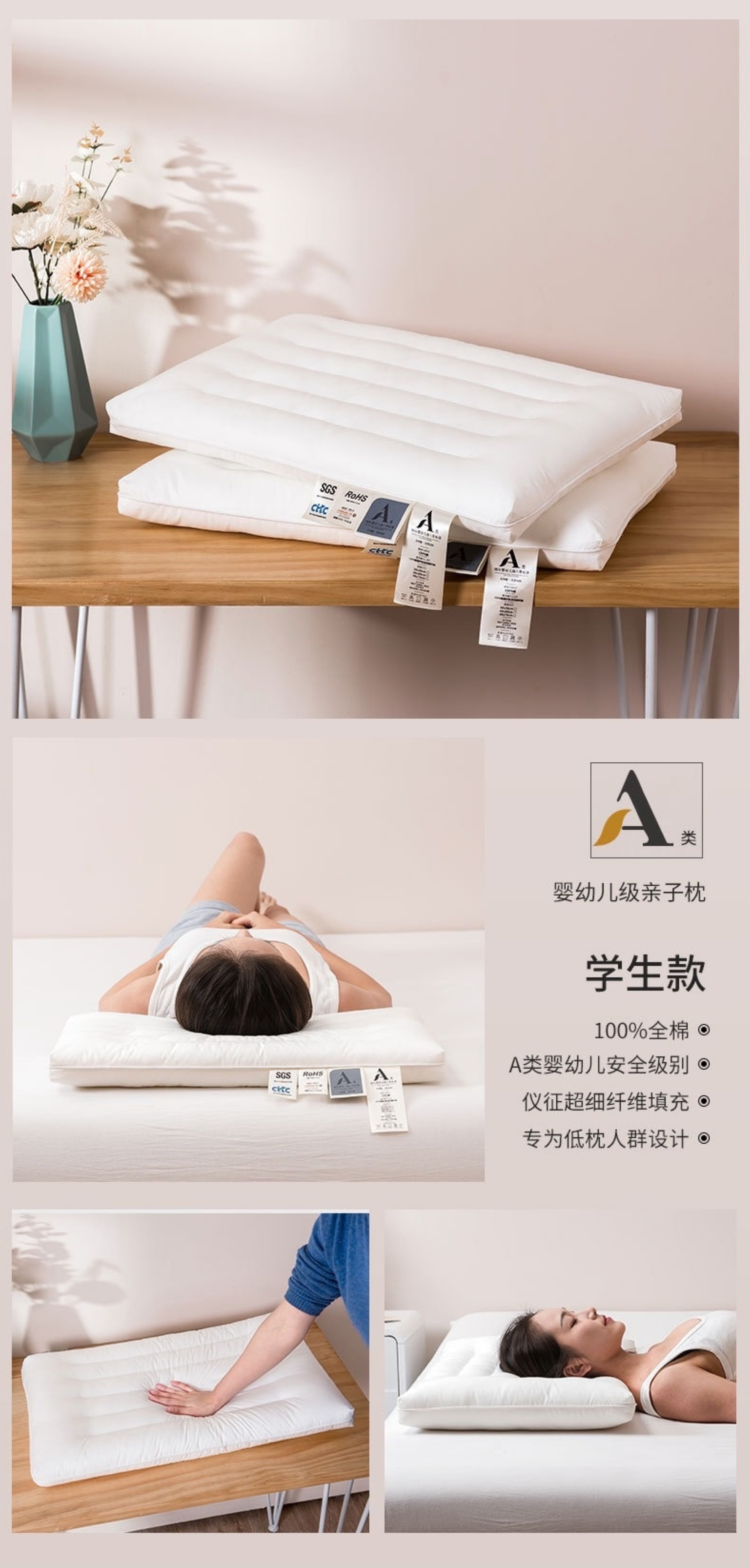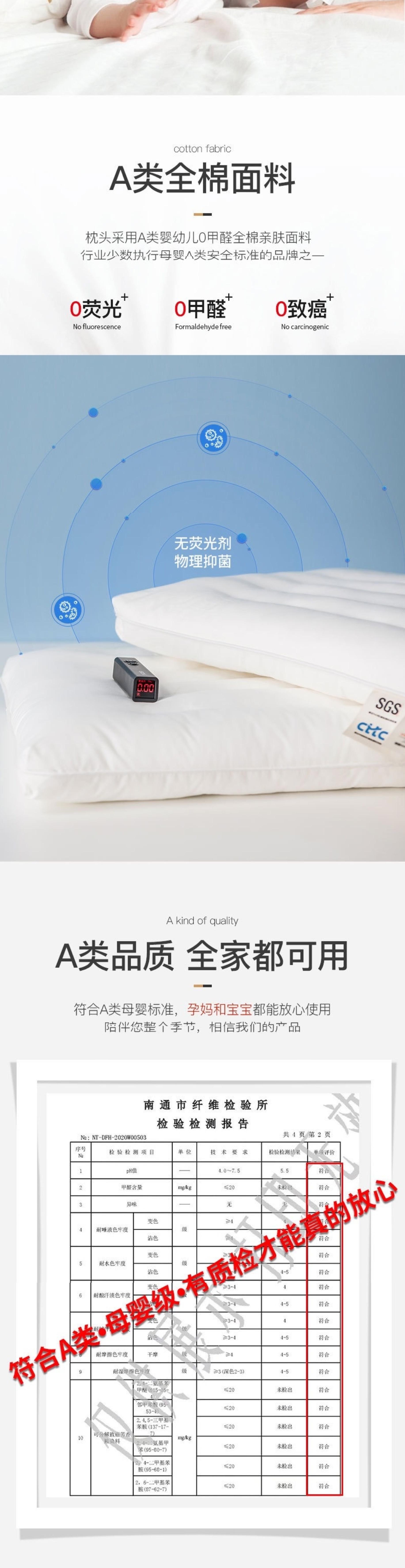 【让枕芯不再发黄】母婴级A类婴幼儿亲子枕防螨防霉采用优质新疆棉46+项认证检测不含有害物质