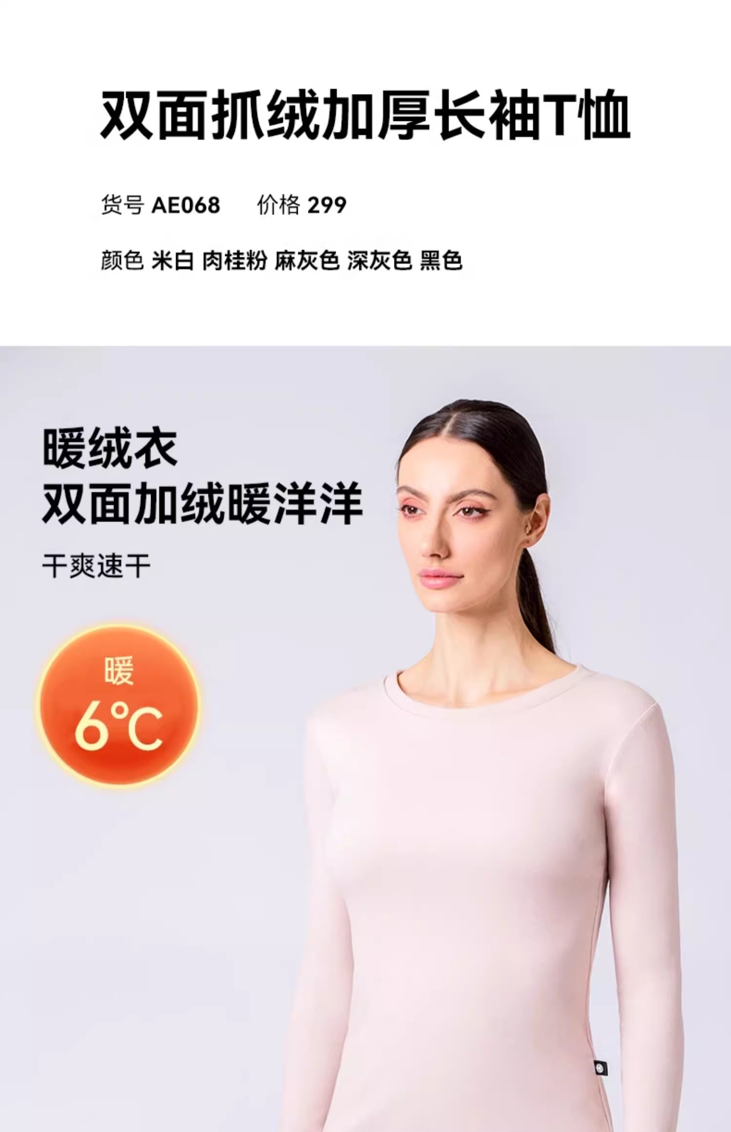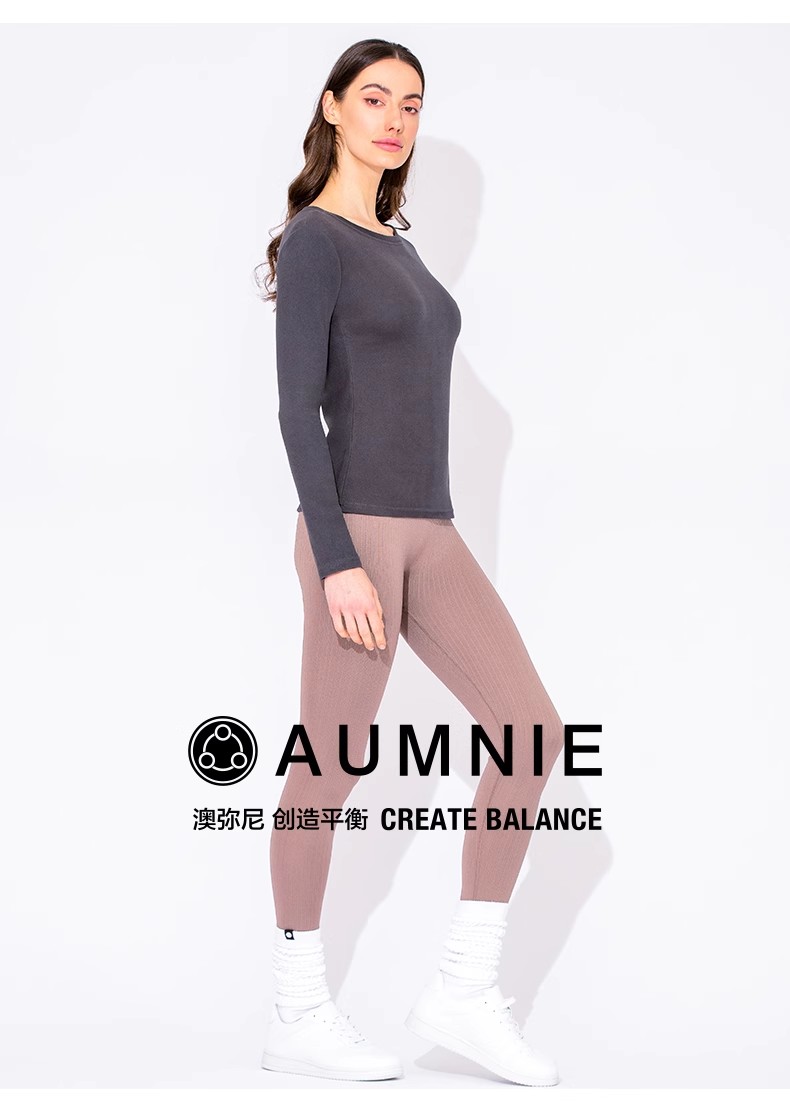 AUMNIE澳弥尼双面抓绒加厚长袖T恤运动健身加绒保暖瑜伽服新款