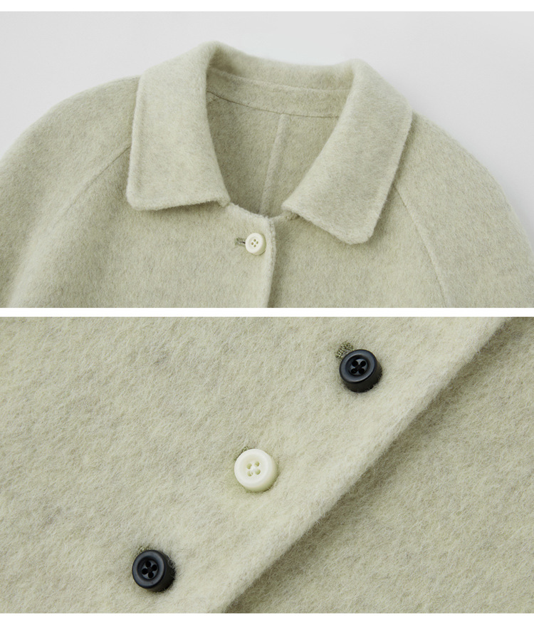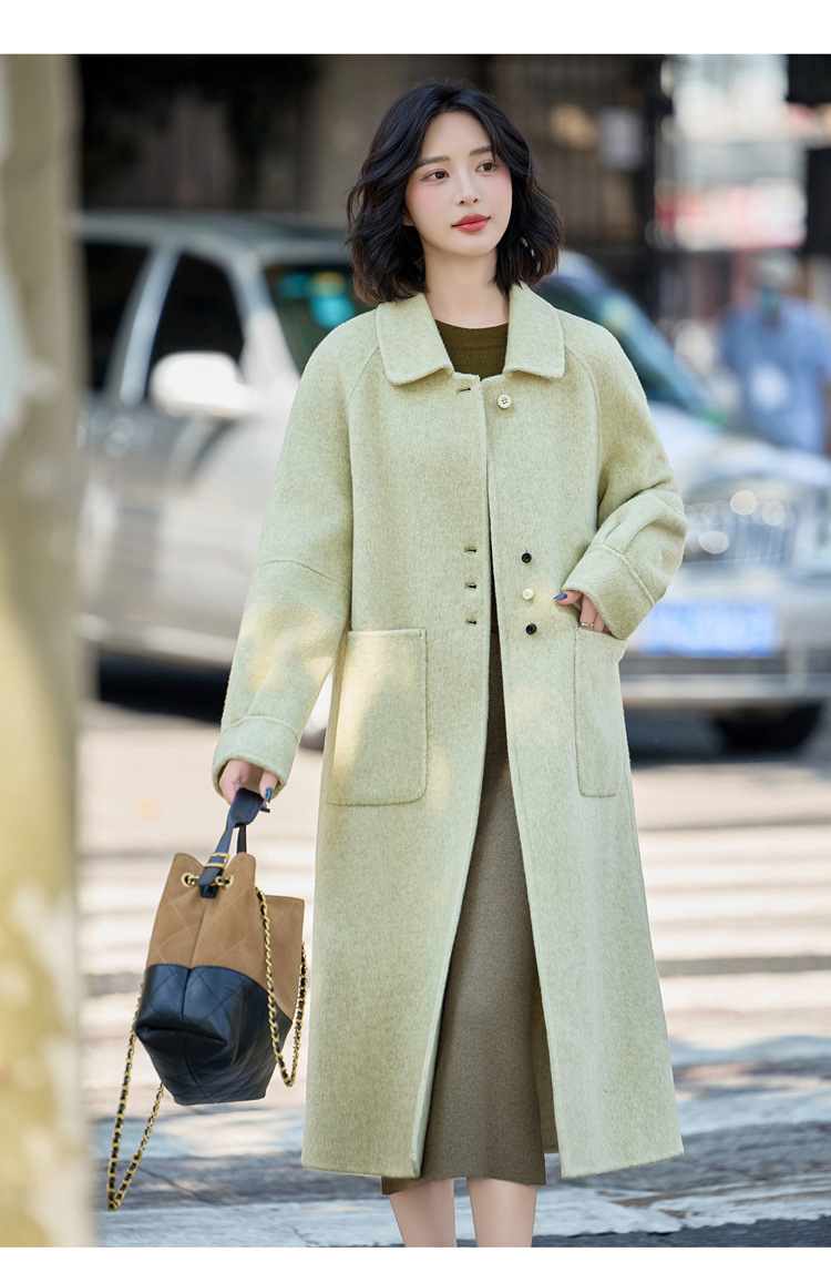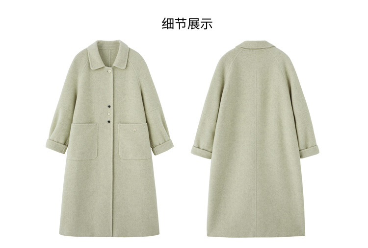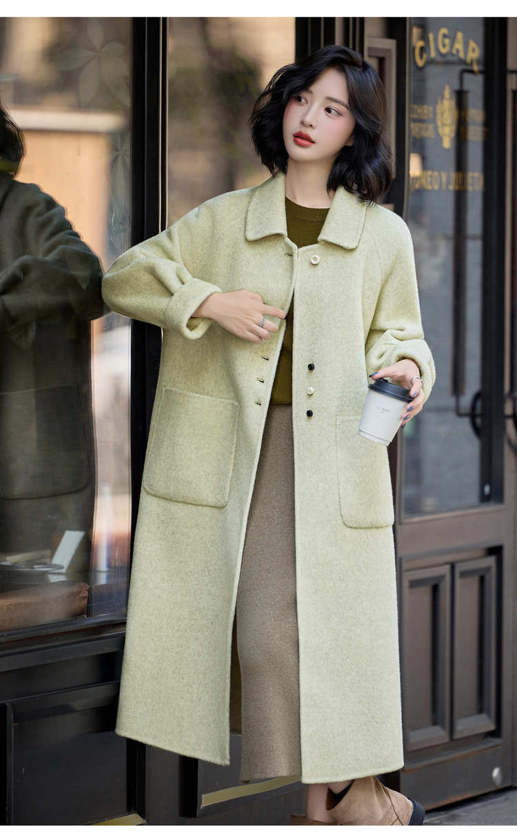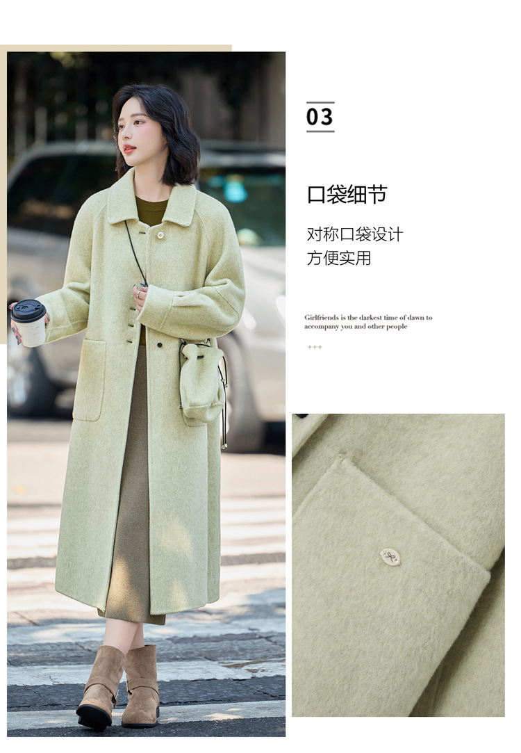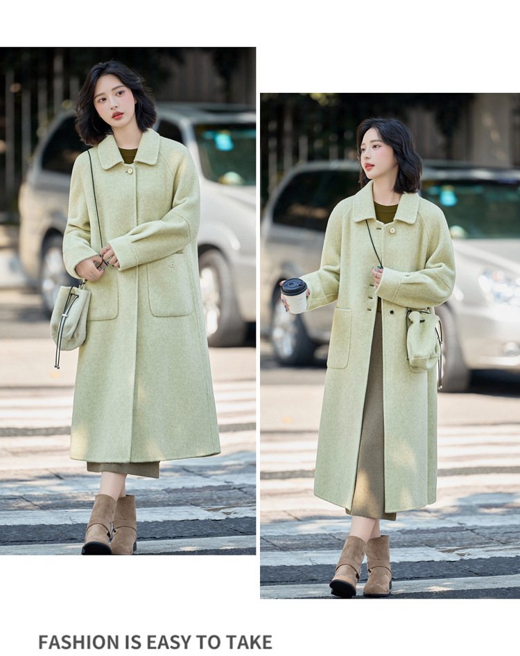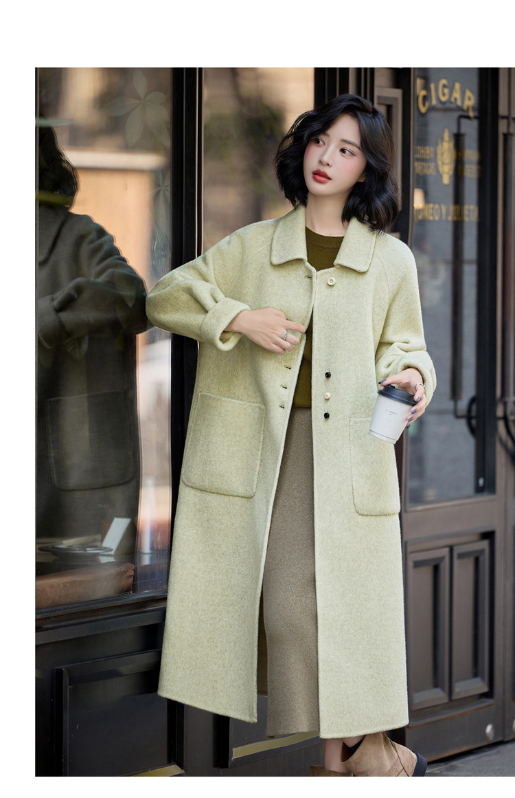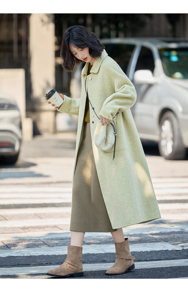 MEIQIN727韩系新款娃娃领双面绵羊毛大衣女2025过膝长款双面呢气质毛呢外套