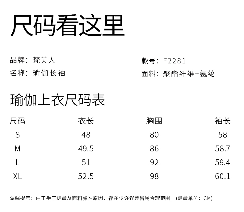 梵美人 F2281 瑜伽长袖 无胸垫 薄阳离子