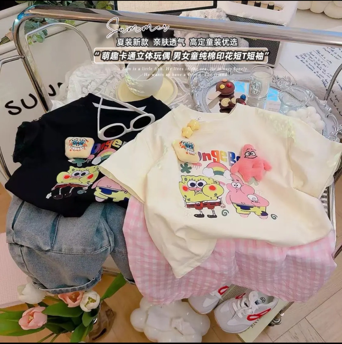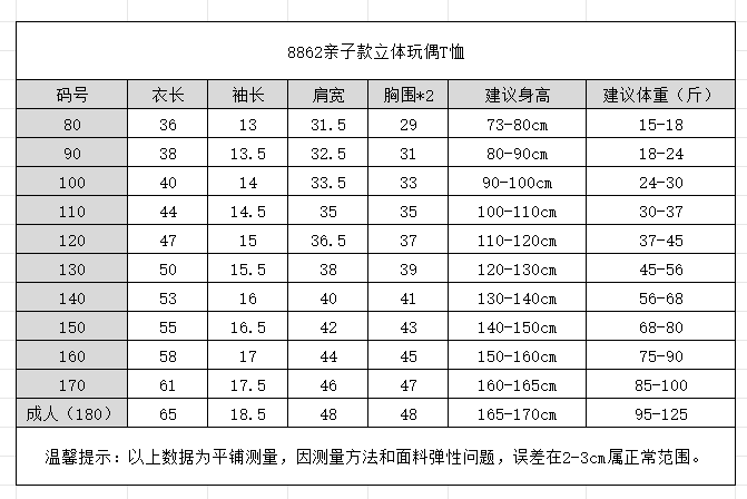 【观偎】纯棉T恤 夏季亲子款夏装玩偶T恤卡通T恤 8862