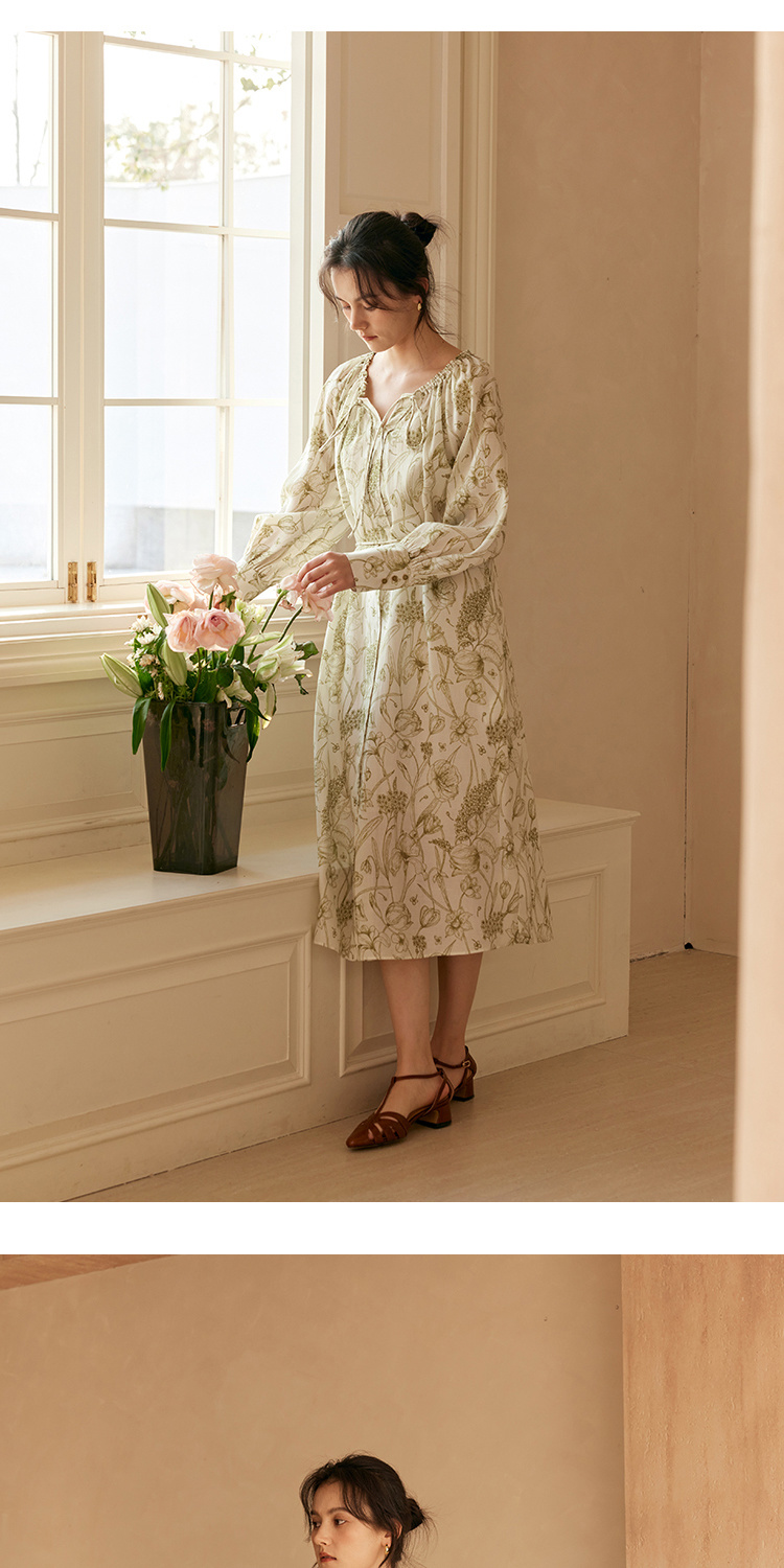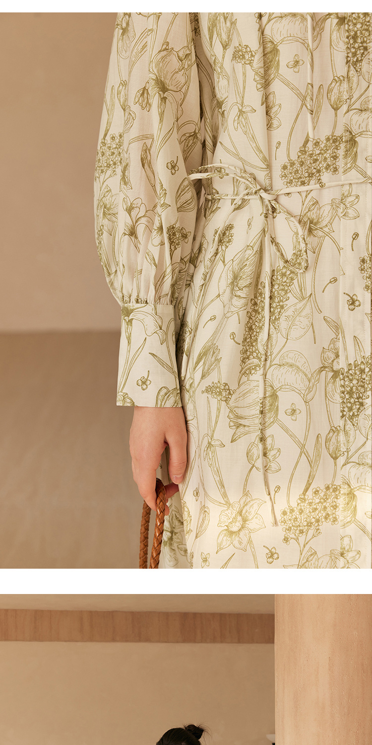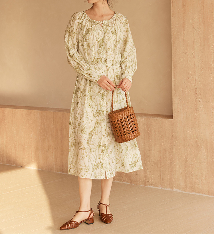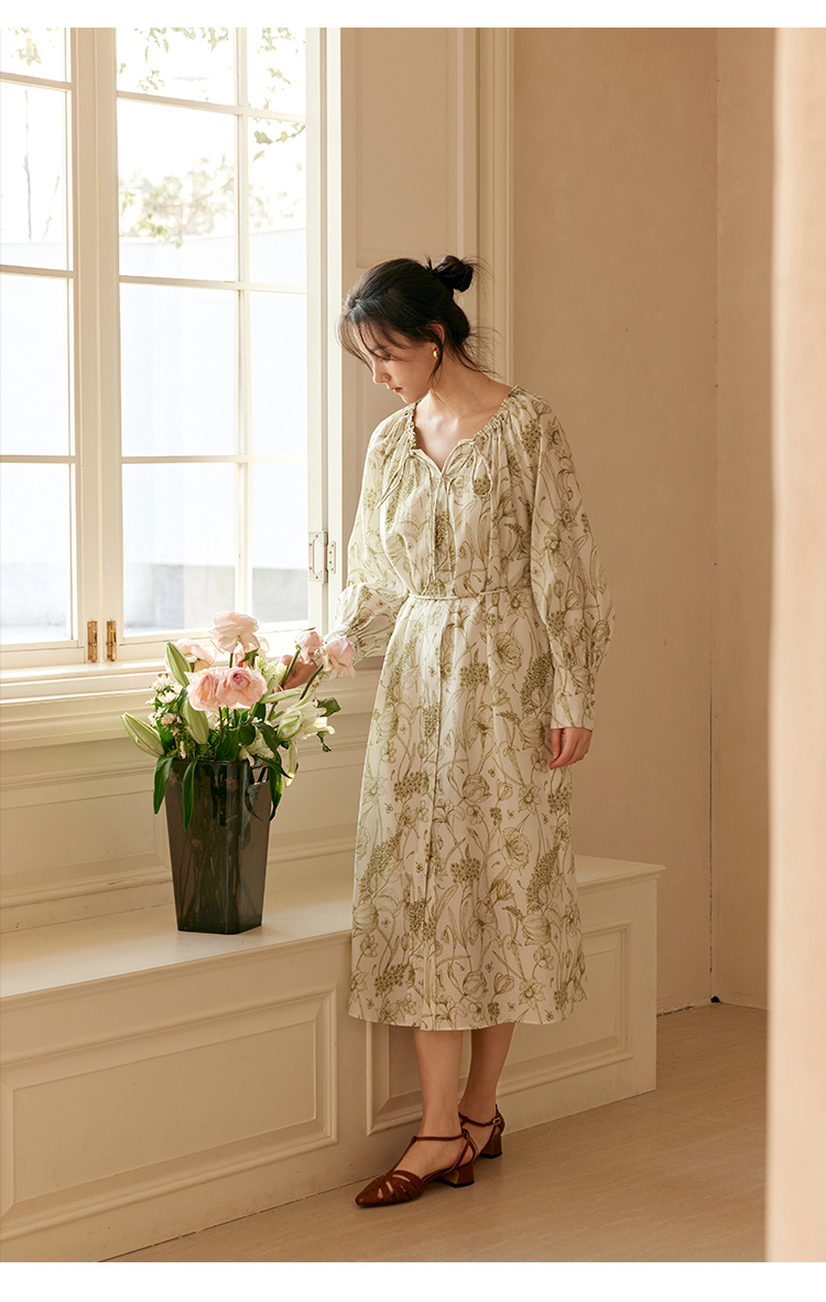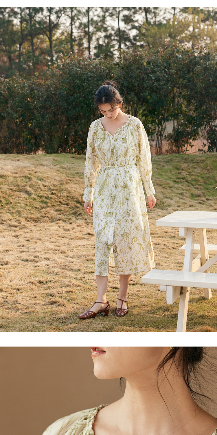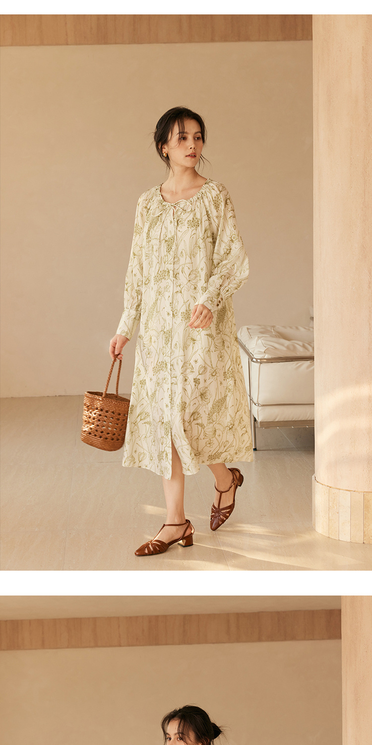 HeyDress法式天丝植物印花连衣裙女春季宽松抽腰收腰气质度假裙子