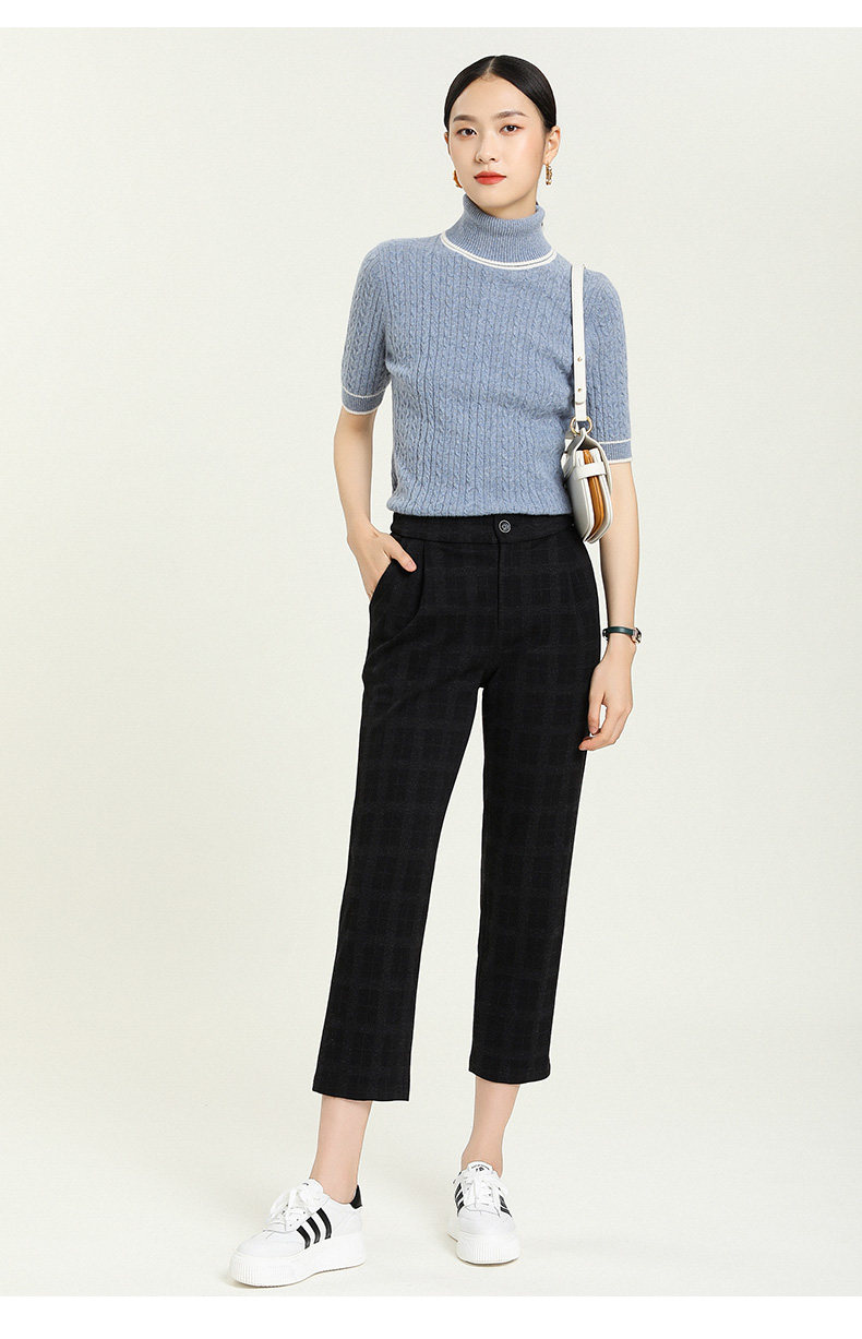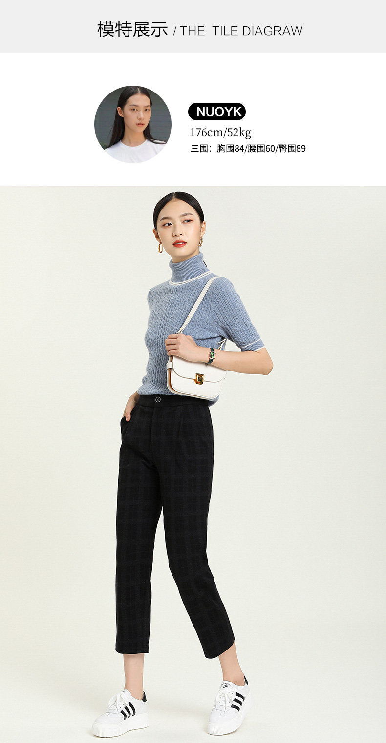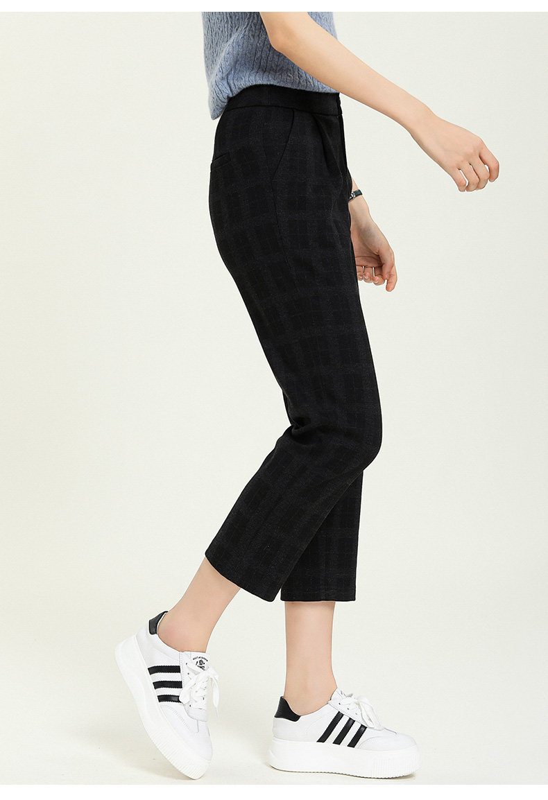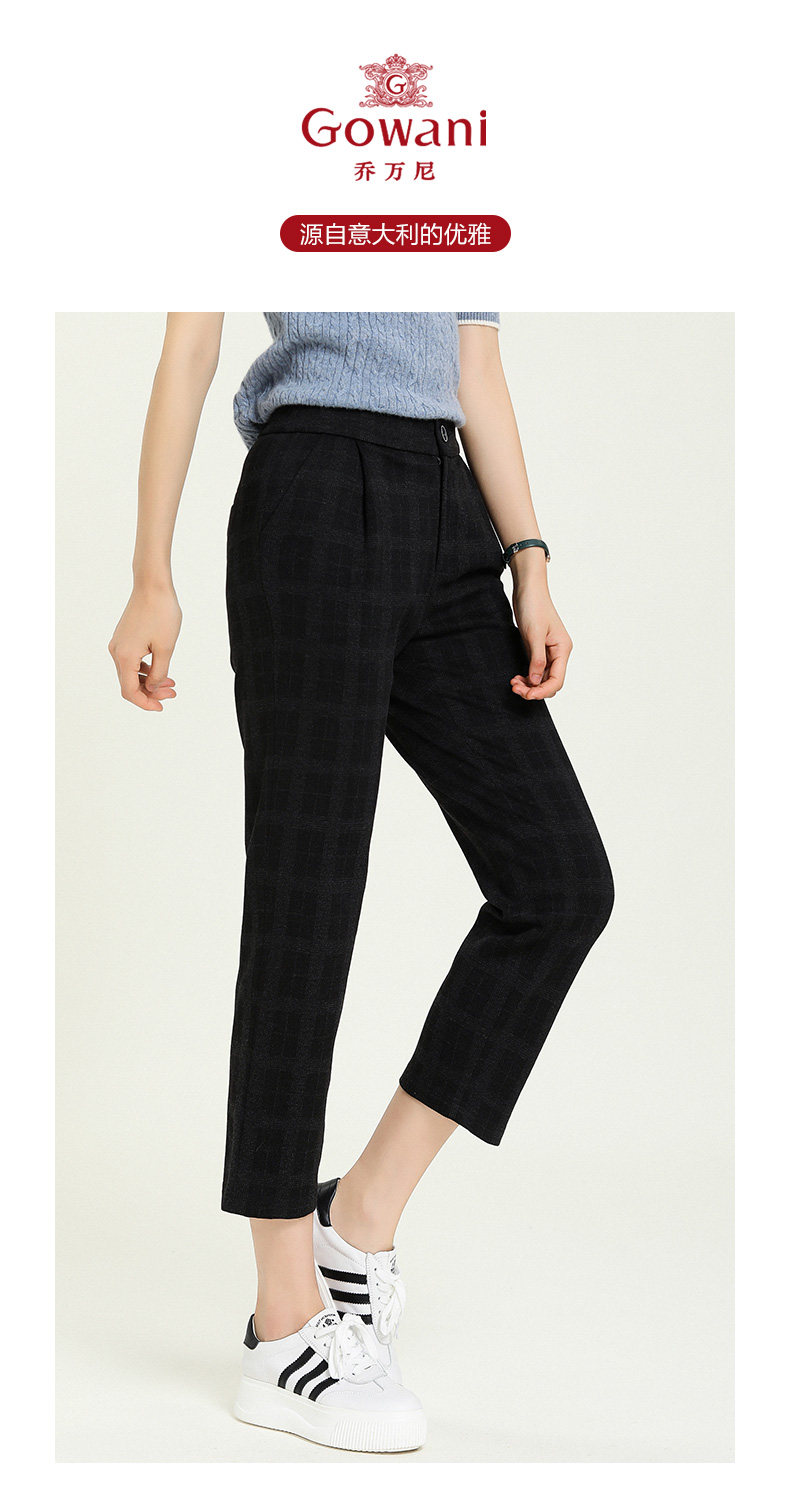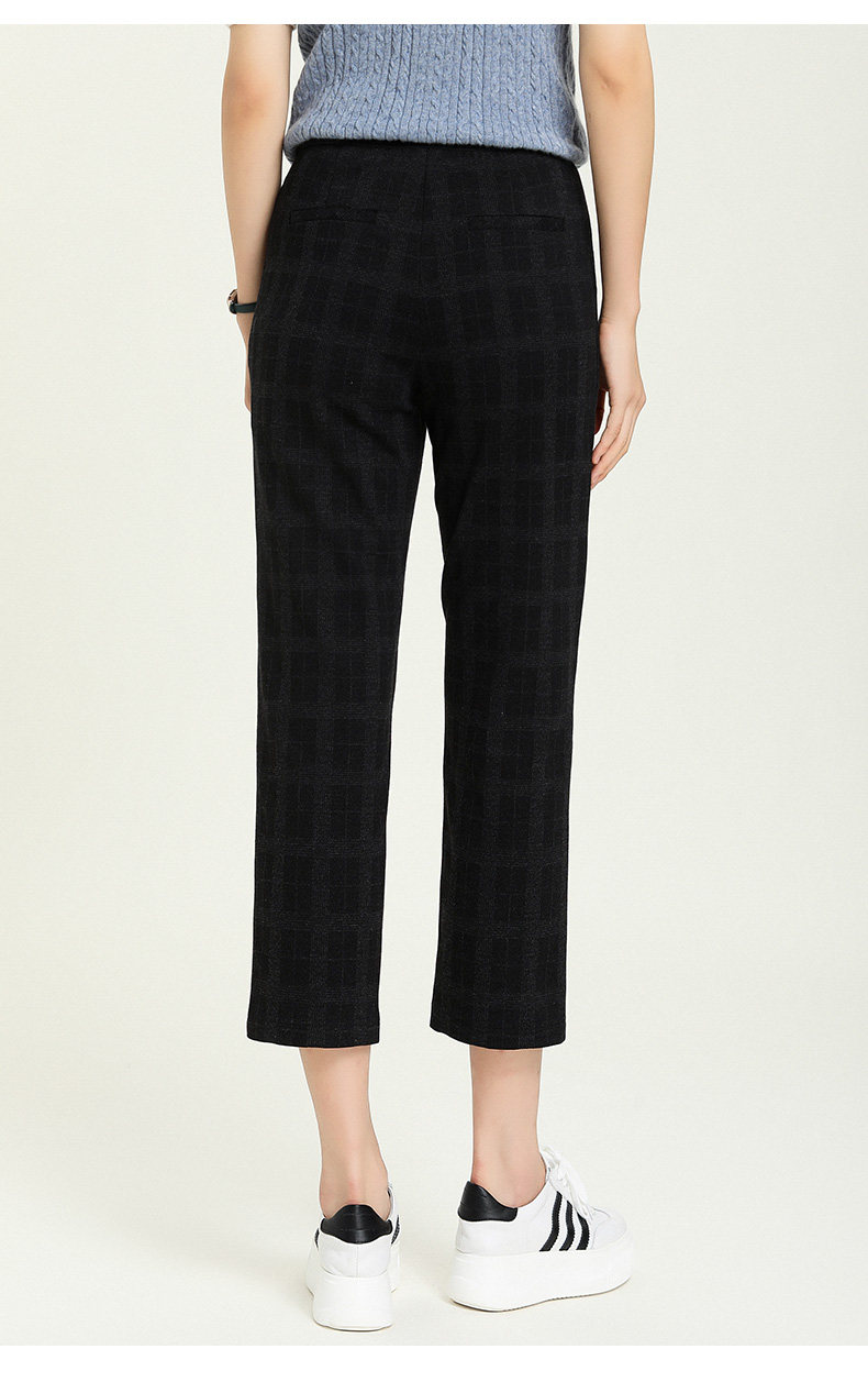 乔万尼秋季新款弹力舒适显瘦格纹七分直筒休闲裤子EB4F062