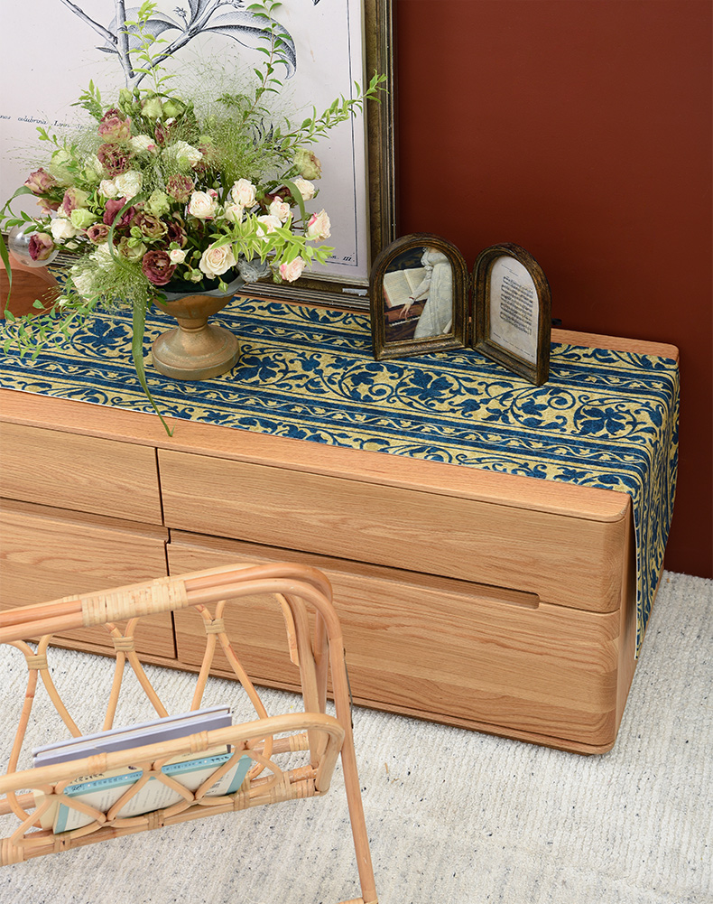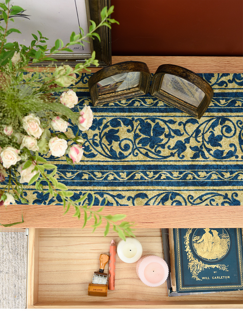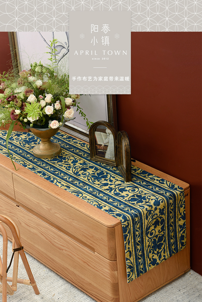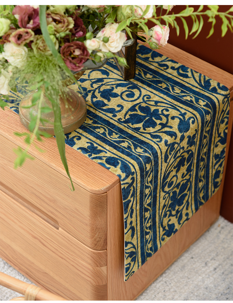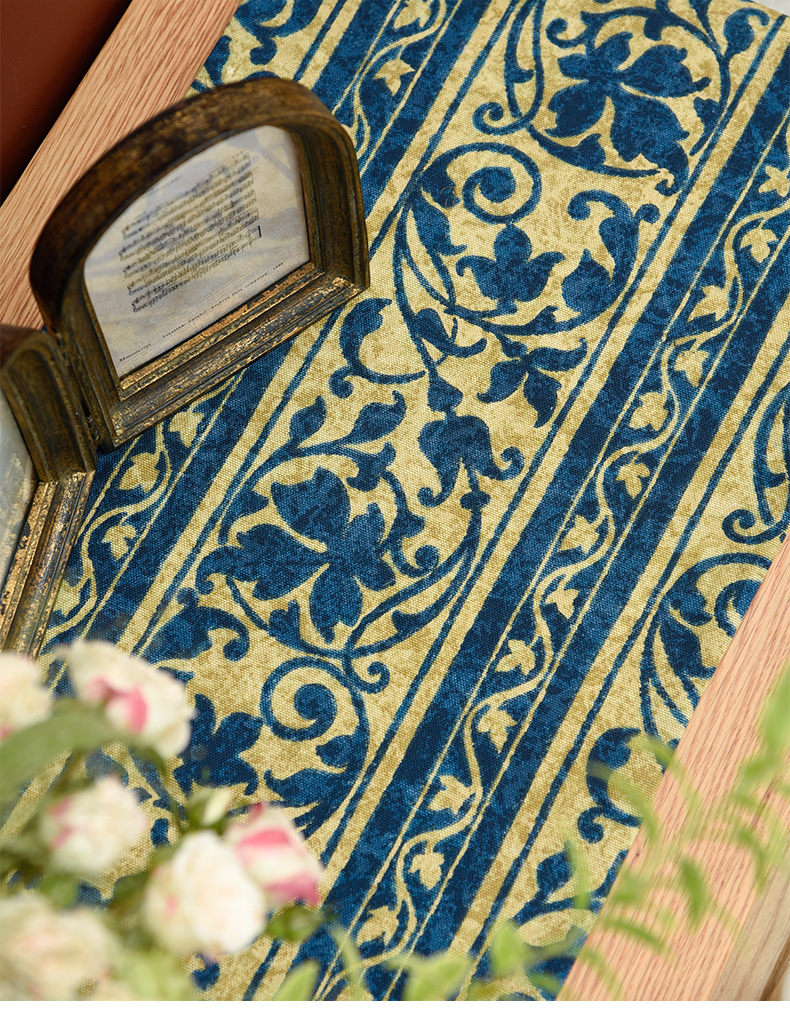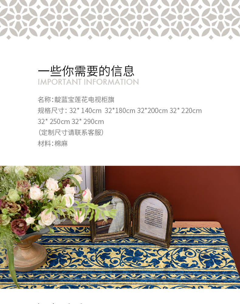 靛蓝宝莲花电视柜盖布美式桌旗茶几巾