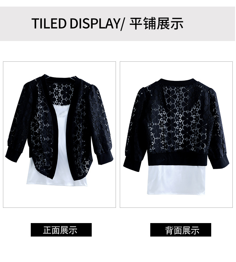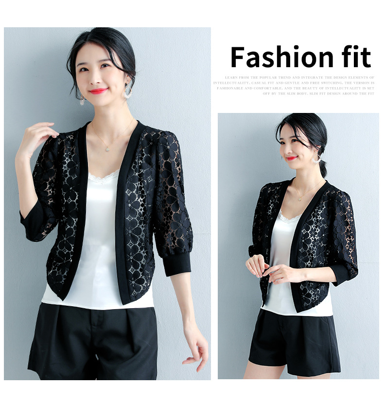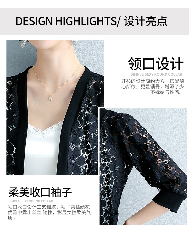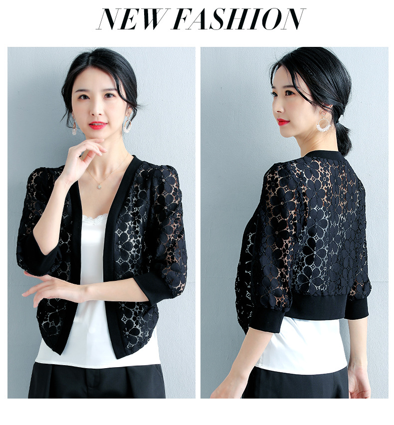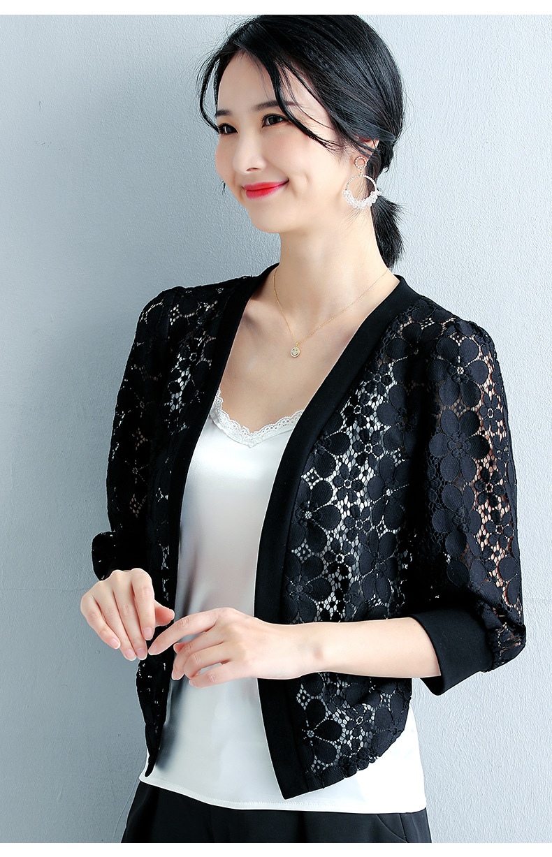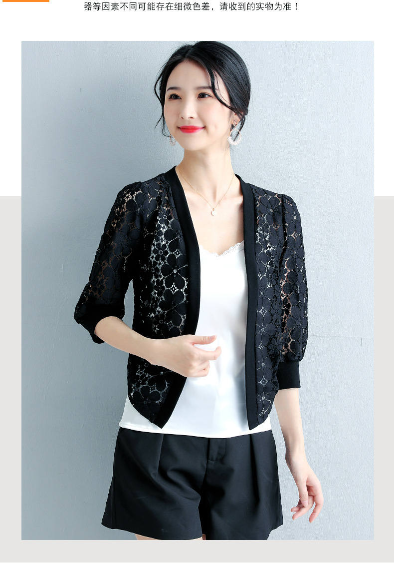ZZ-LM02558小香风蕾丝外套五分袖上衣空调防晒衫开衫薄款