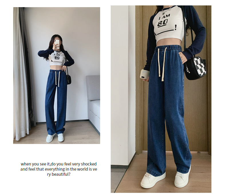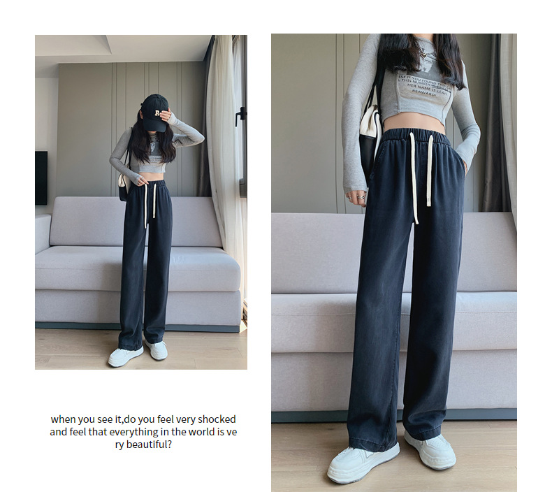丁摩 【牛仔阔腿裤】春天新女装天丝牛仔直筒阔腿长牛仔阔腿休闲裤子5ZF- C166