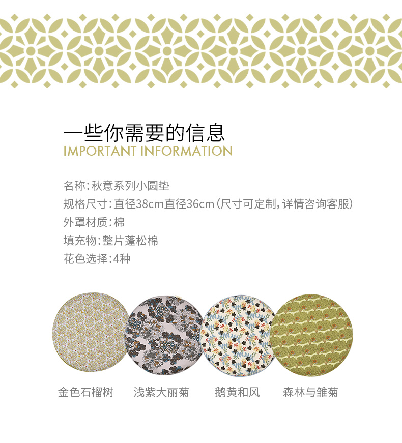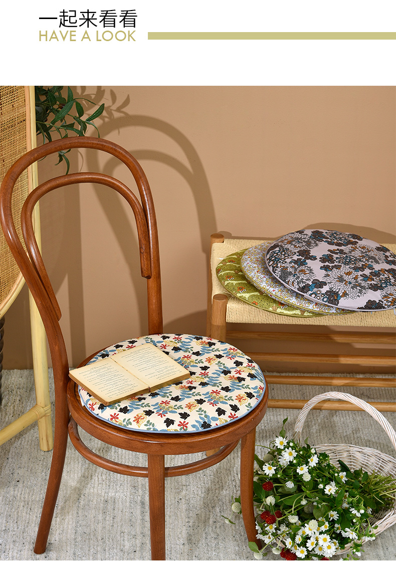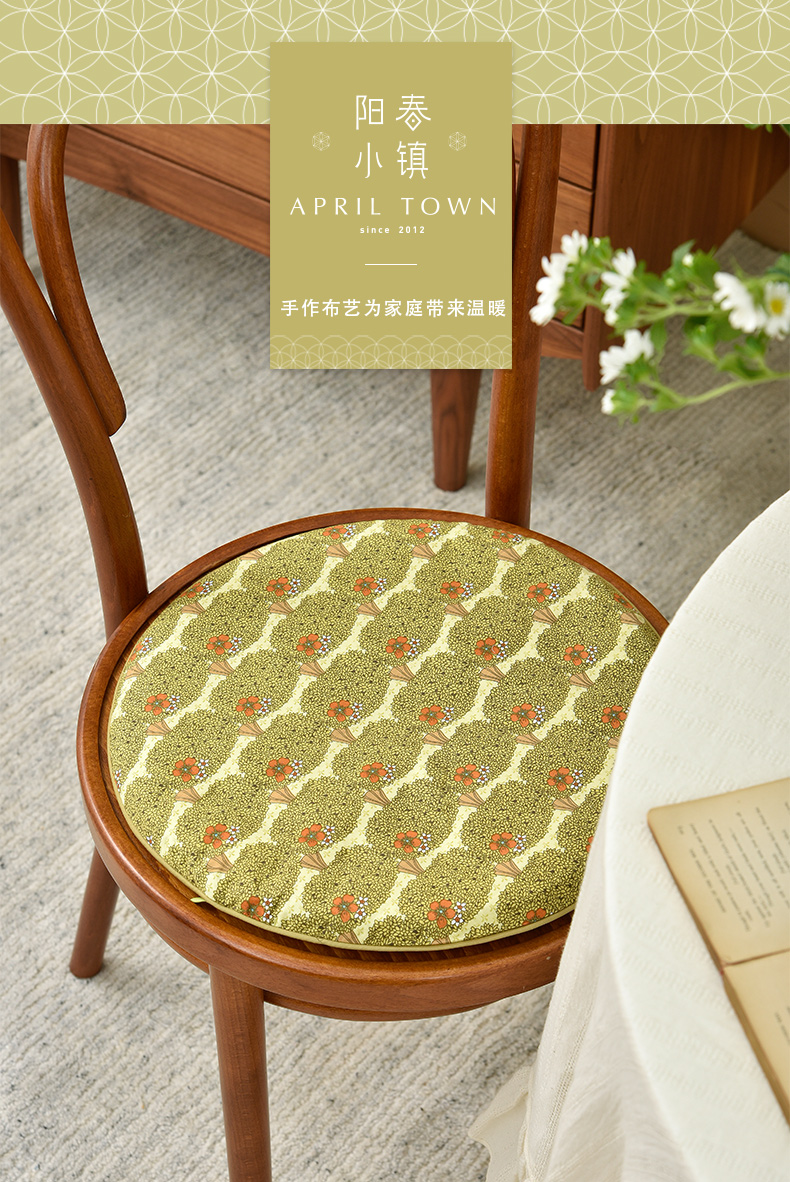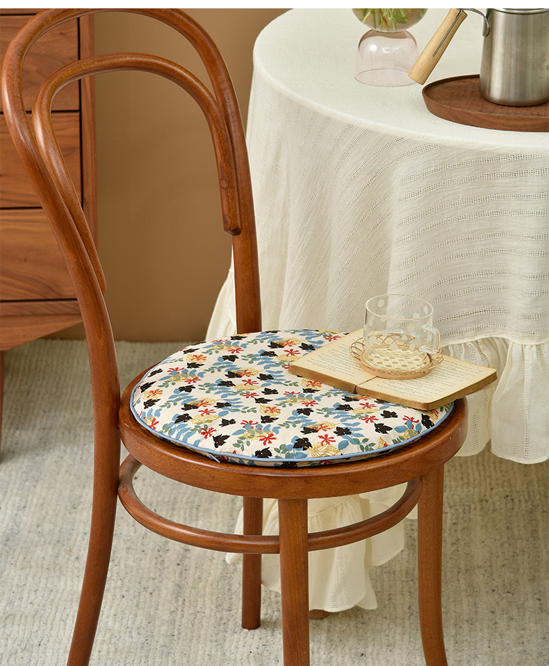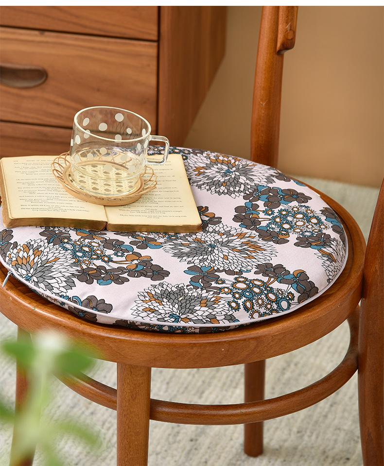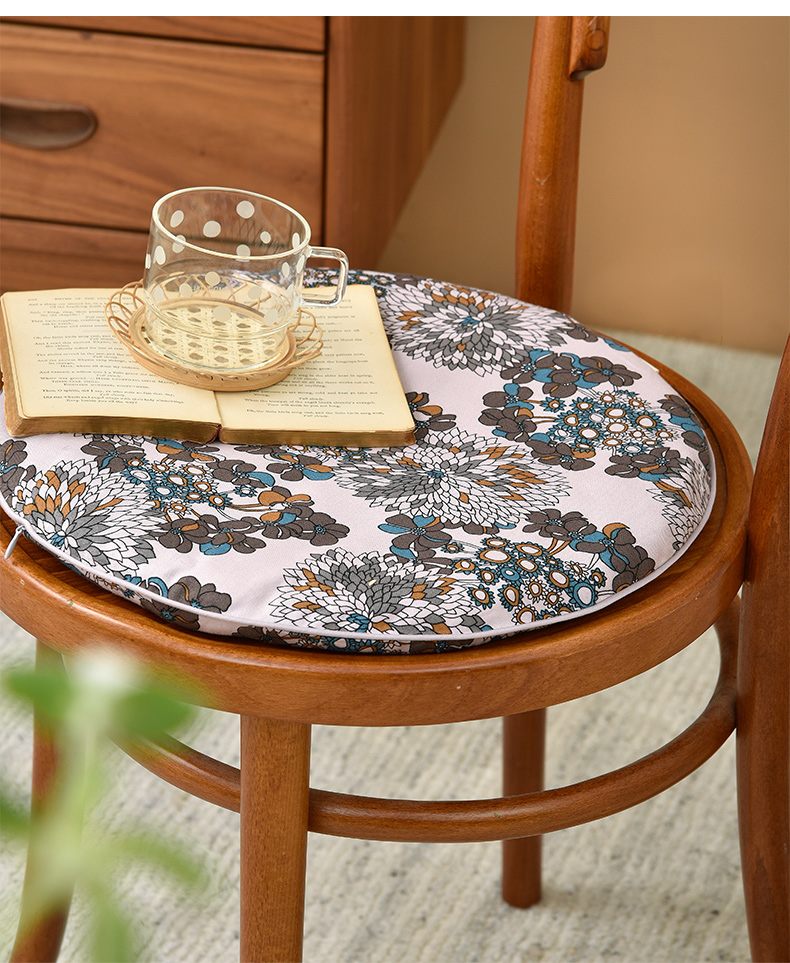 秋意碎花圆形布艺棉椅垫可拆洗