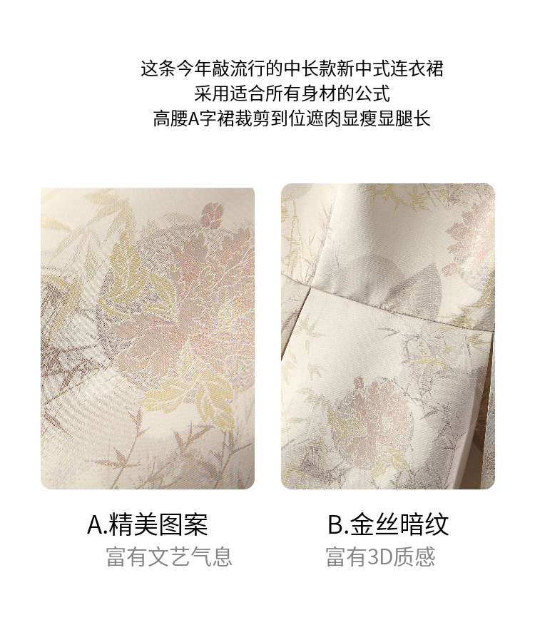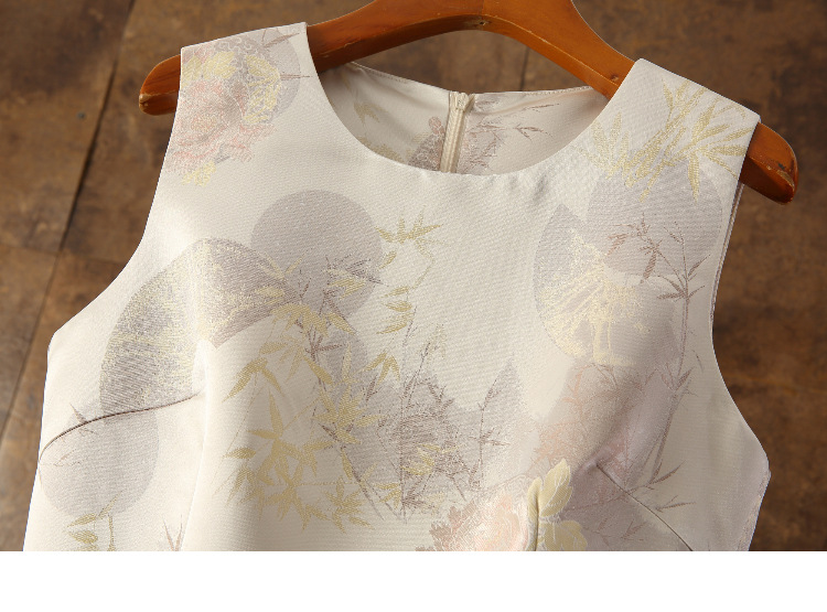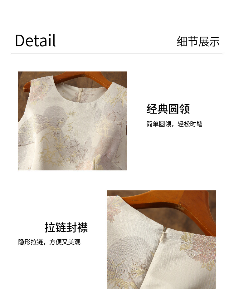 复古中国风,中长款四季款竹叶提花无袖背心裙ZSM-240424