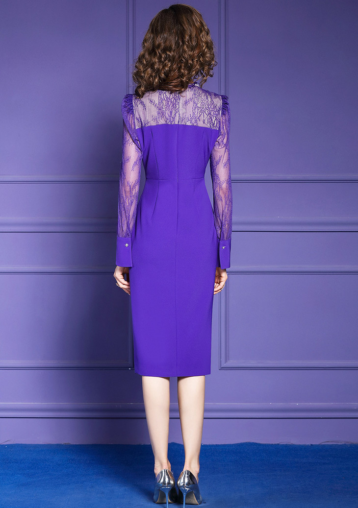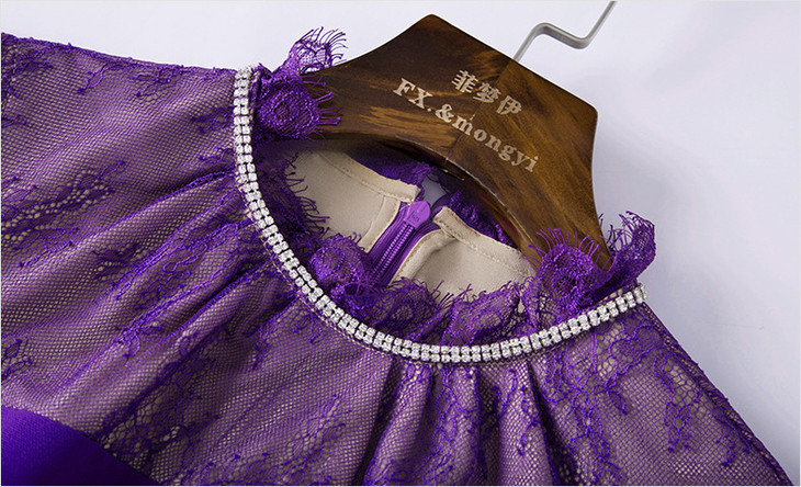 FMY-29323春装洋气时尚修身蕾丝拼接开叉包臀裙子