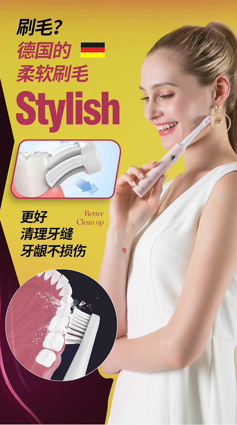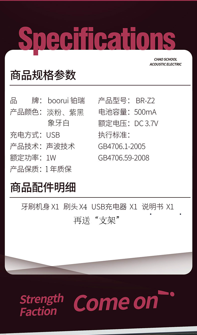 【配4刷头 再送支架】铂瑞Z2电动牙刷 成人自动 4档调节 声波情侣款 充电式软毛电动牙刷