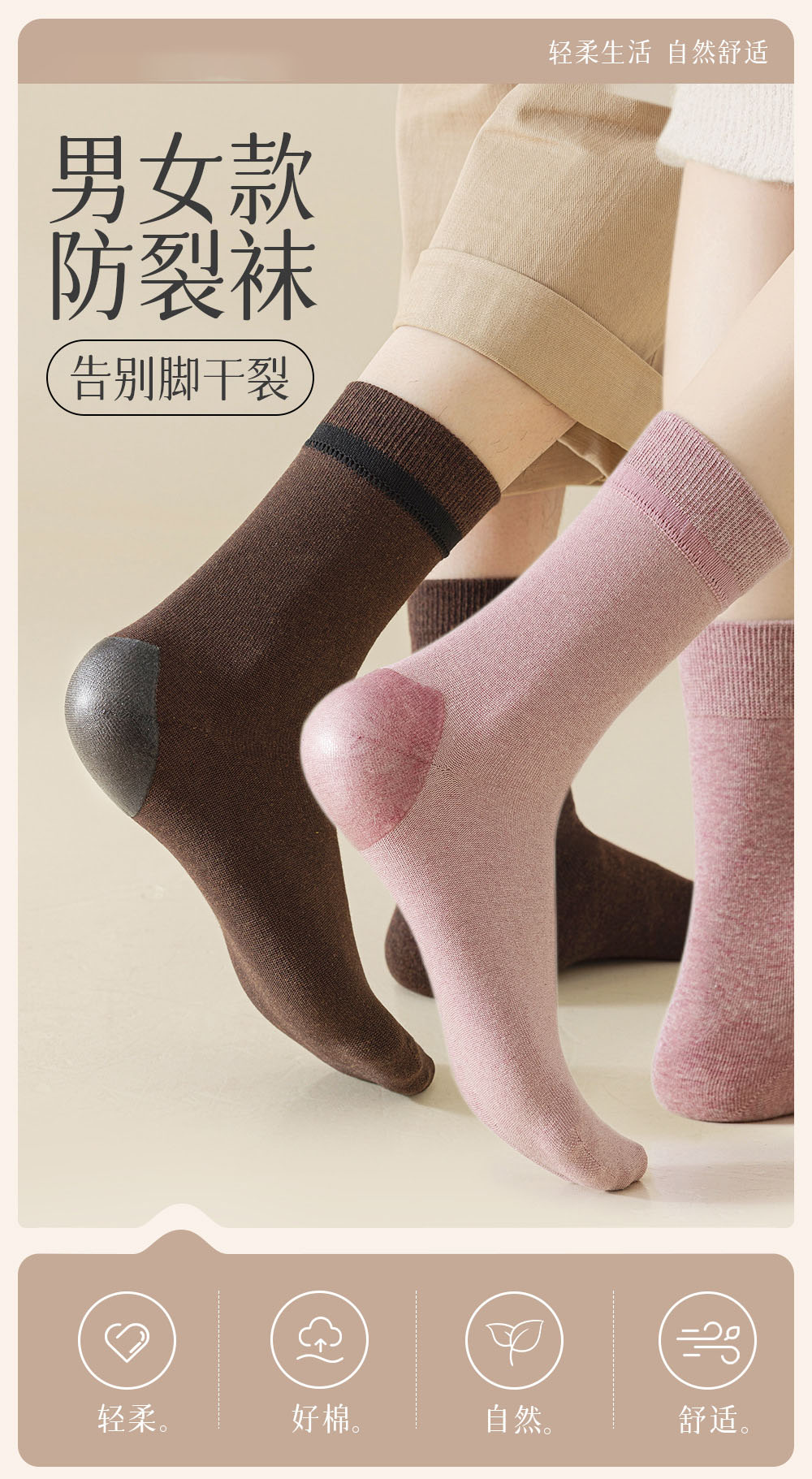 雀说 【5双】防裂袜子硅胶保湿袜中筒男女款护脚袜
