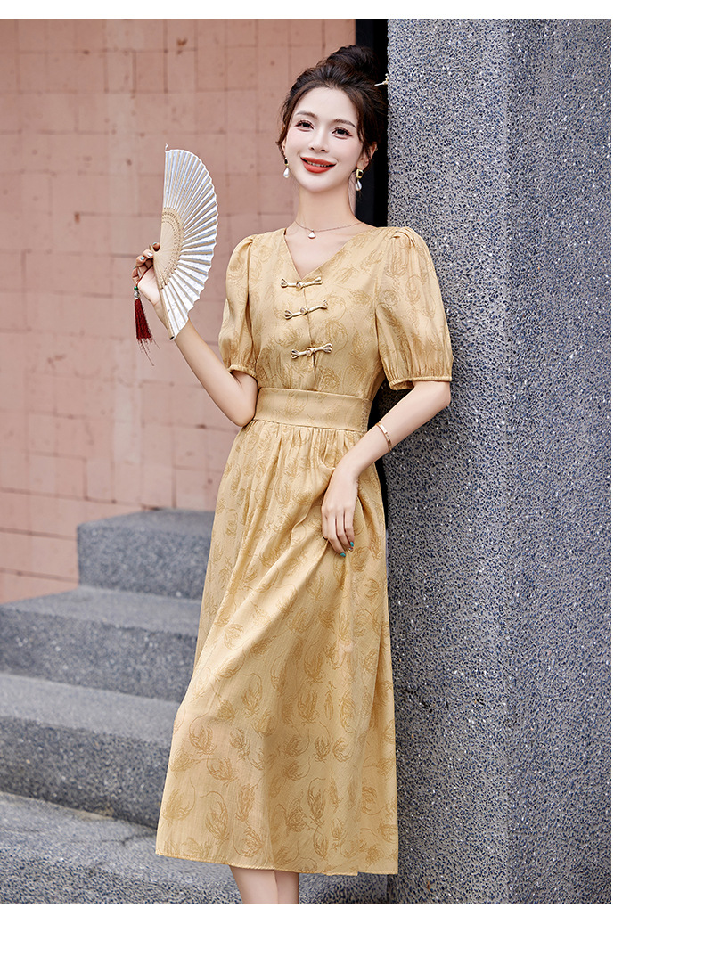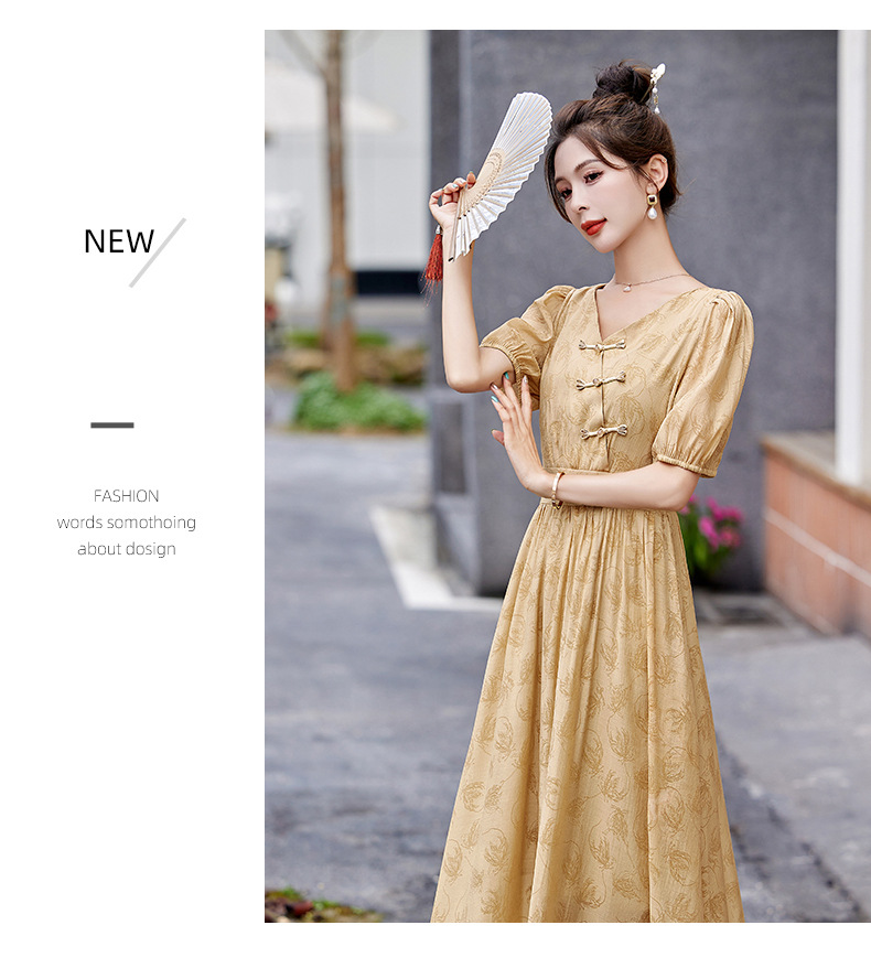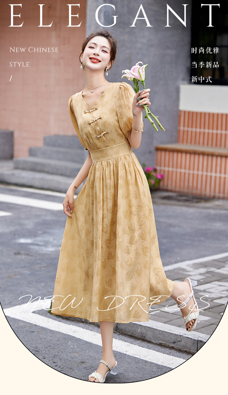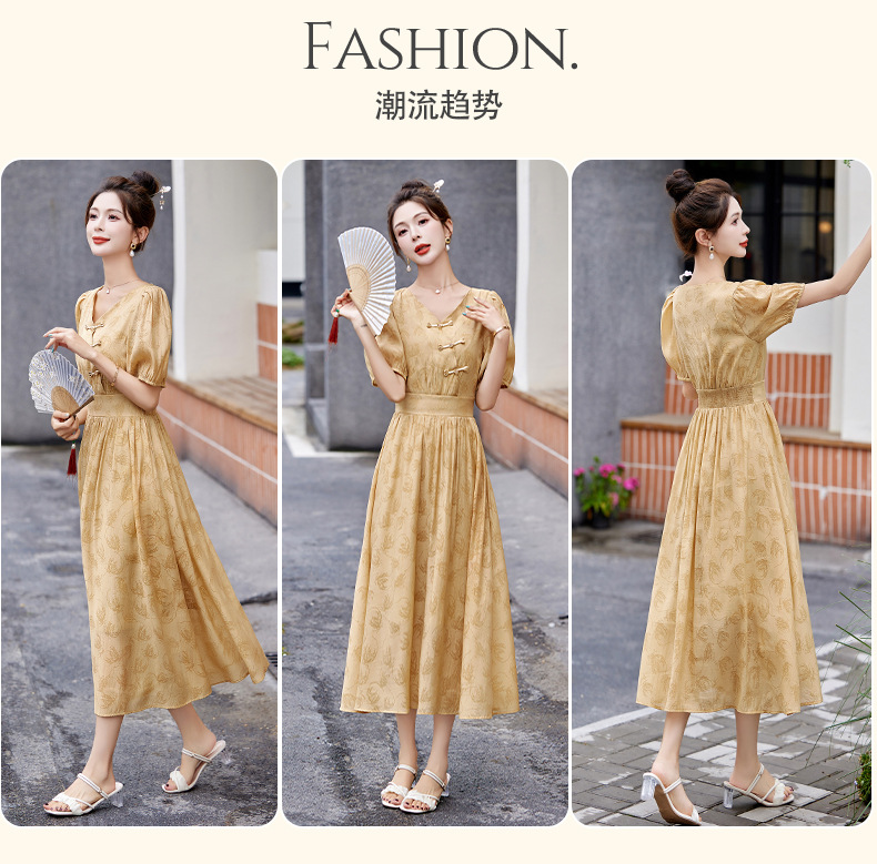 新中式改良旗袍连衣裙,气质国风收腰长裙YQMH5325