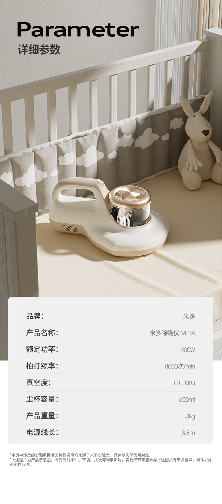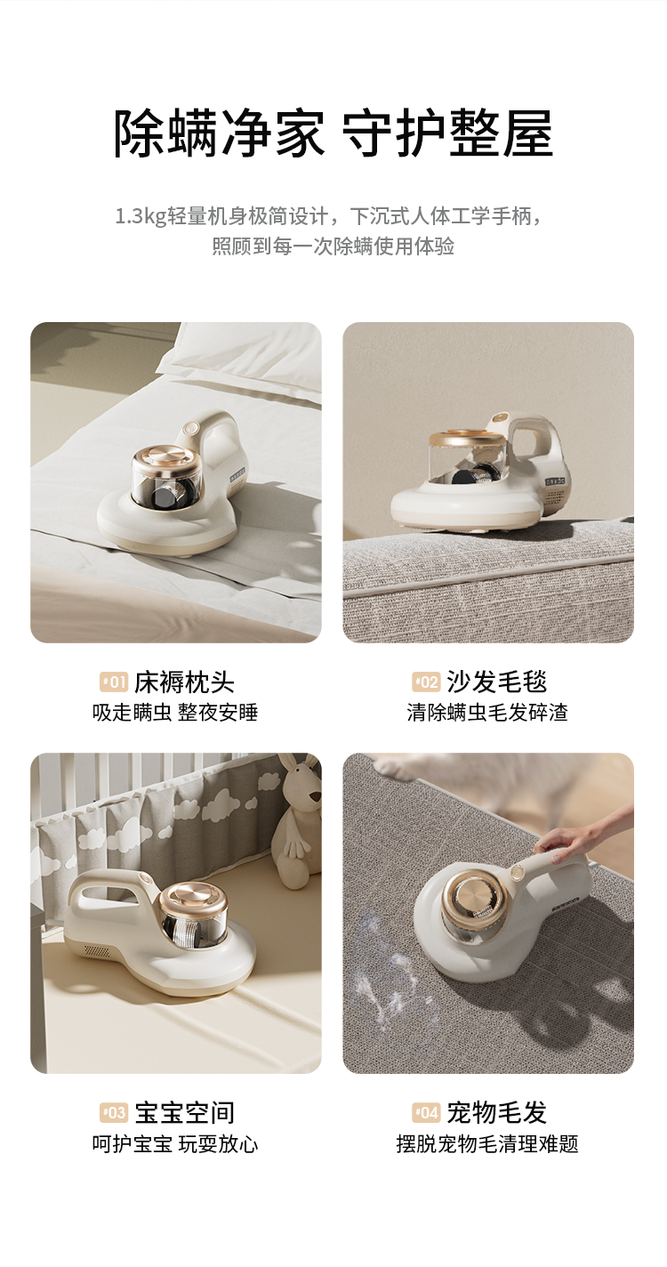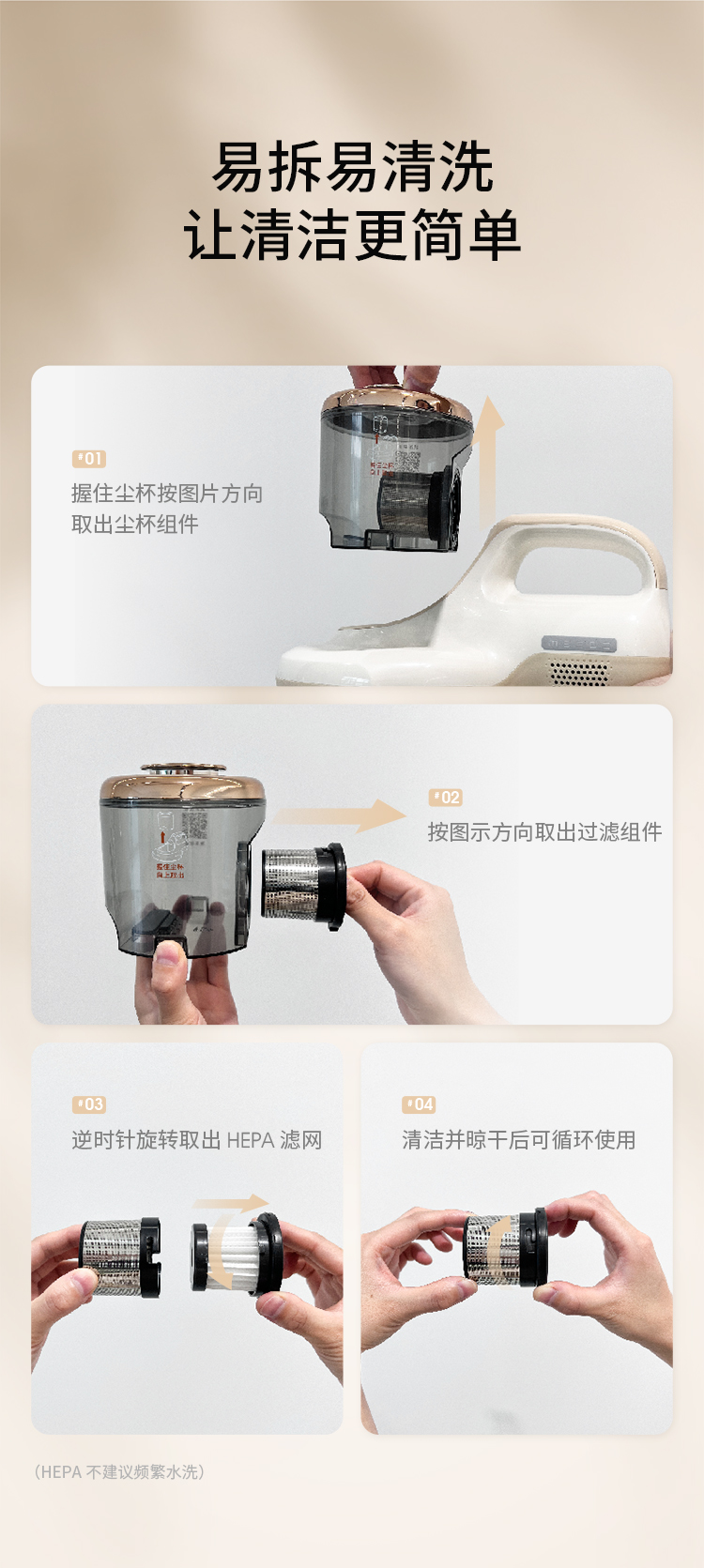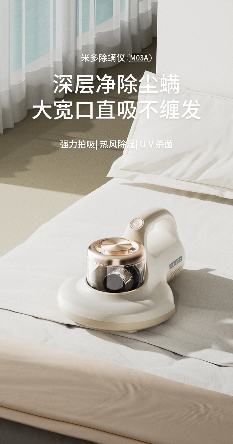 米多有线除螨仪M3手持式大宽口直吸不缠毛发热风除湿