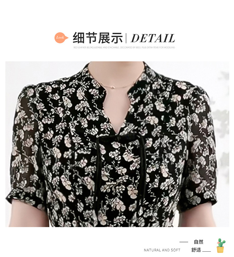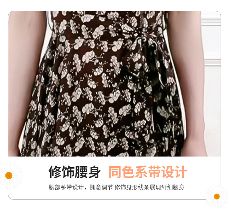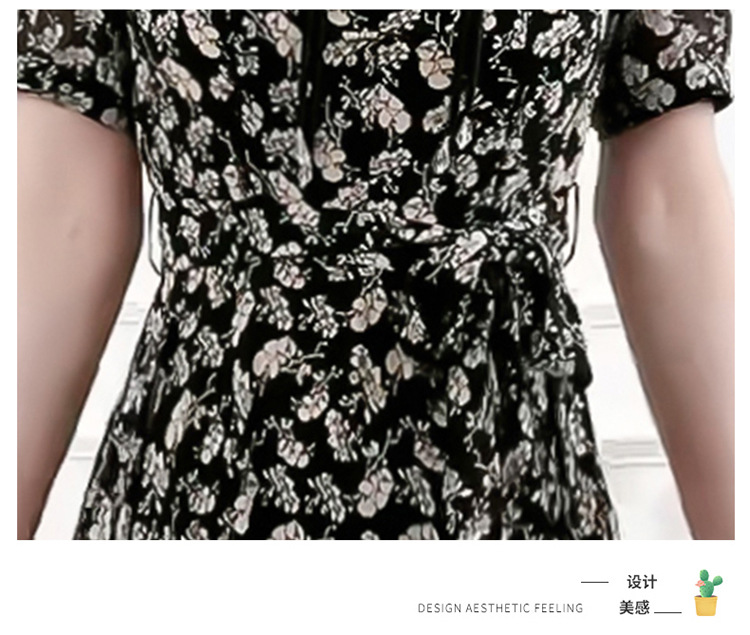 QYM DQ4927-L显瘦修身时尚碎花大摆裙V领休闲雪纺连衣裙 商品图3