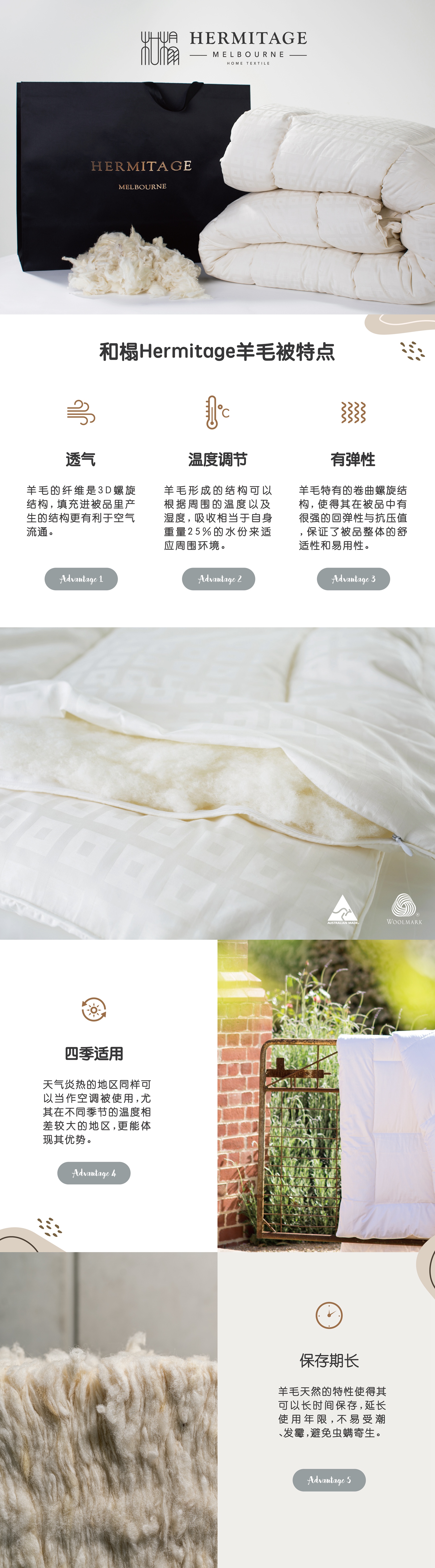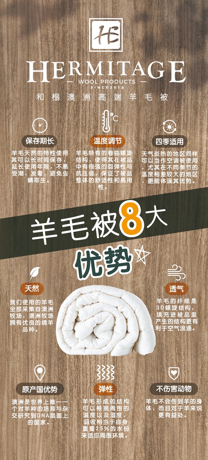 纯天然材料:选用100%澳洲高品质纯羊毛,不含任何化学添加剂。