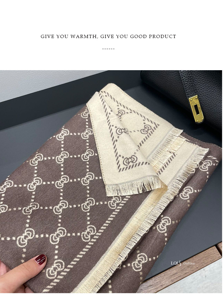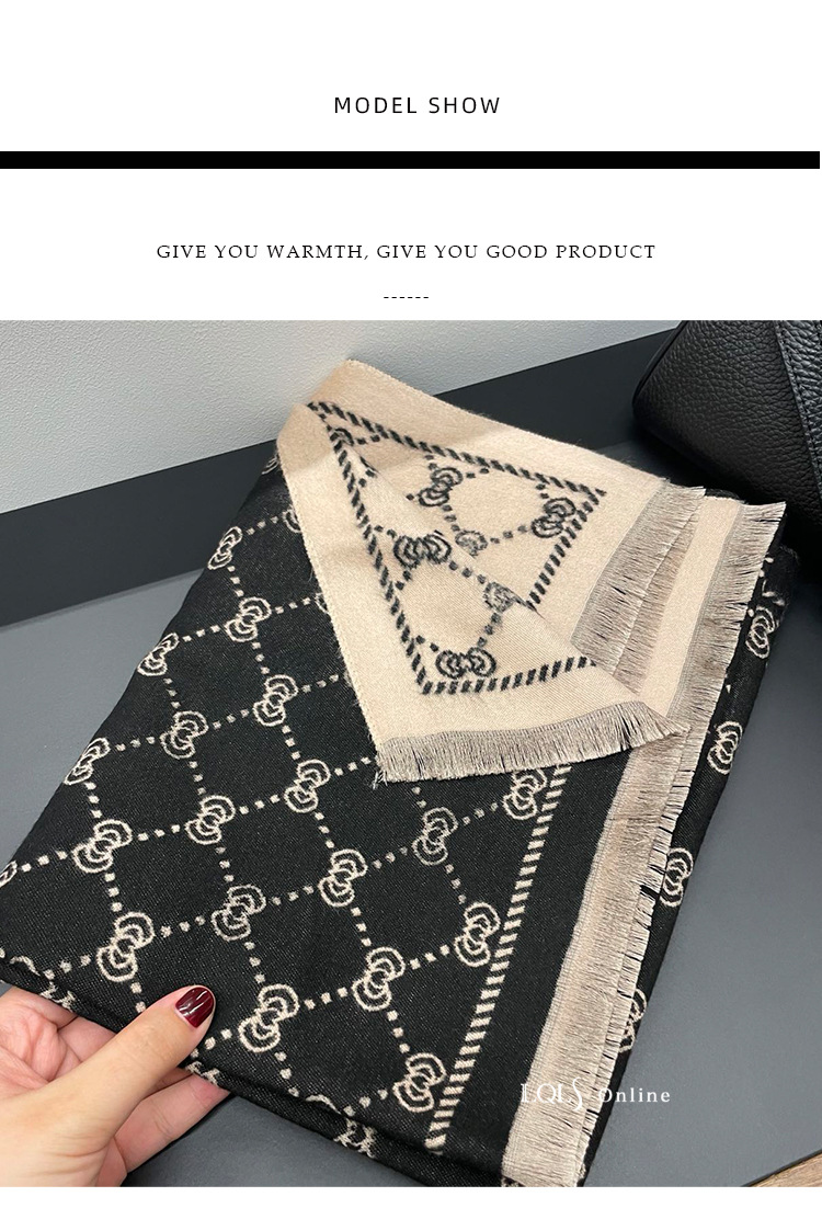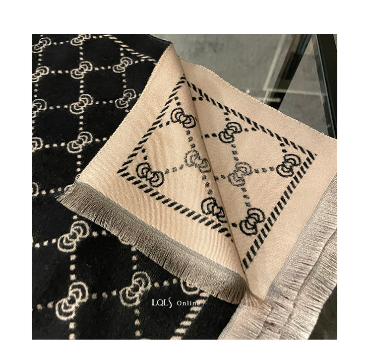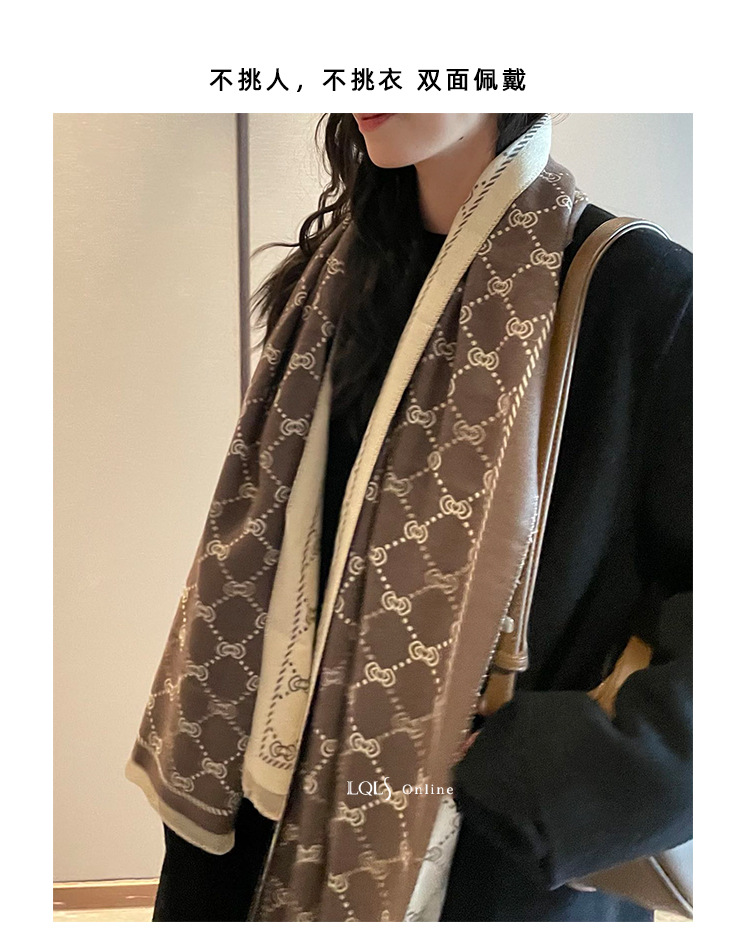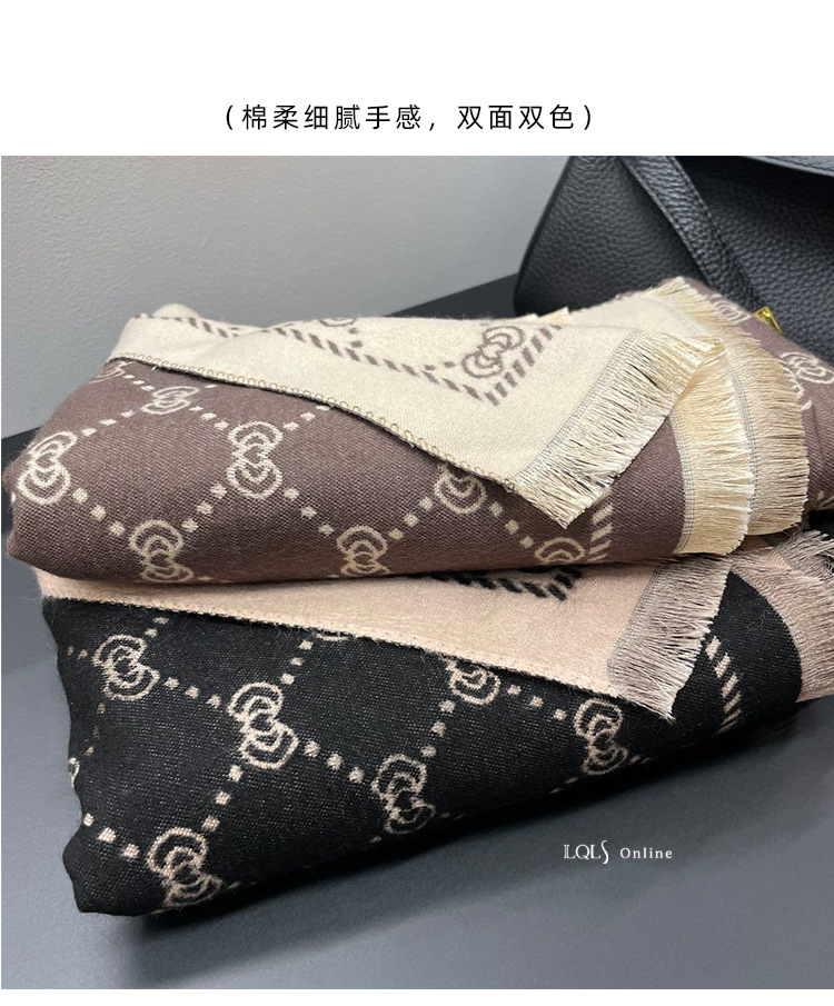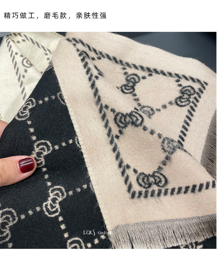 c7-4;gucc双面经典感显气质双面加厚黑色围巾女冬季韩版时尚保暖围脖高级感披肩