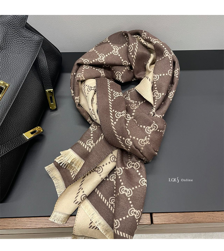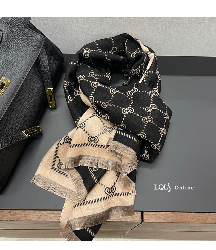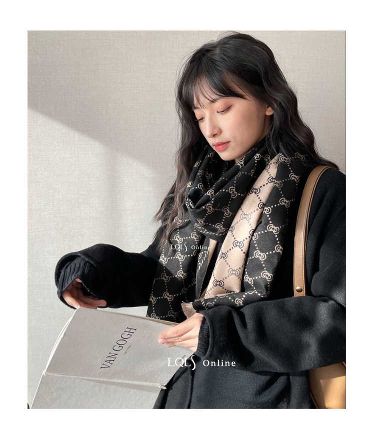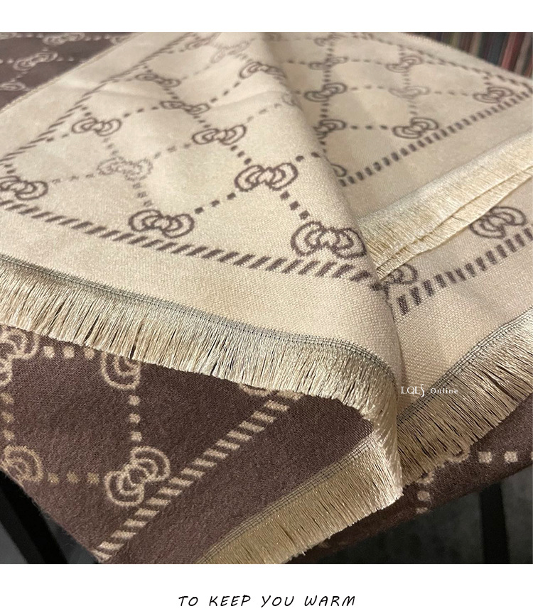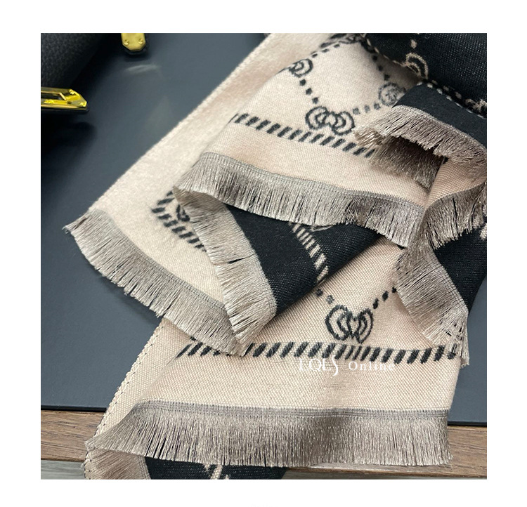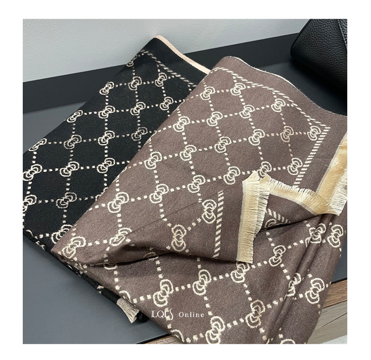c7-4;gucc双面经典感显气质双面加厚黑色围巾女冬季韩版时尚保暖围脖高级感披肩