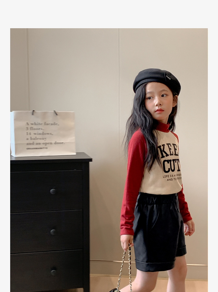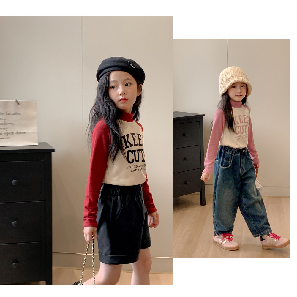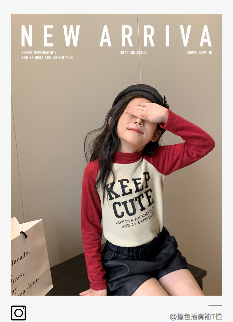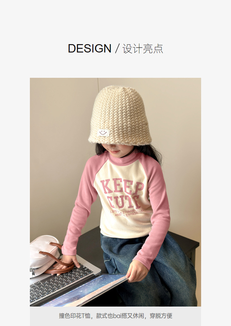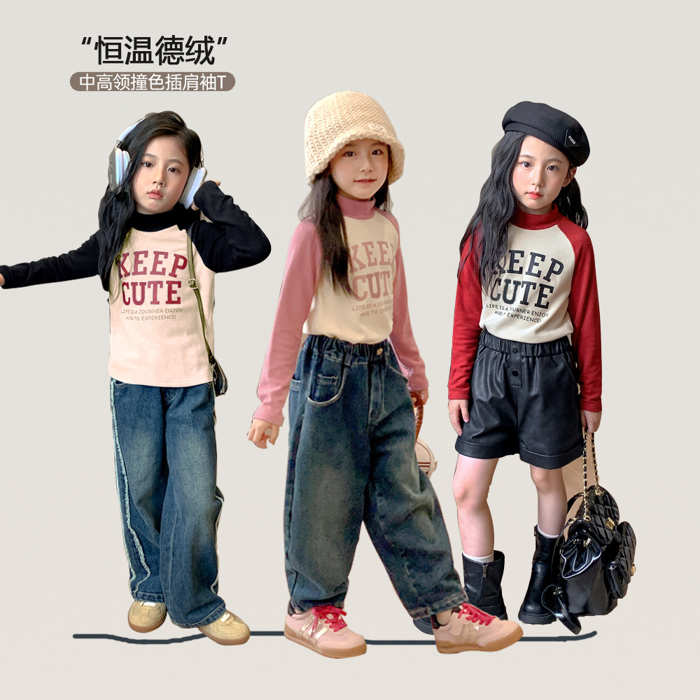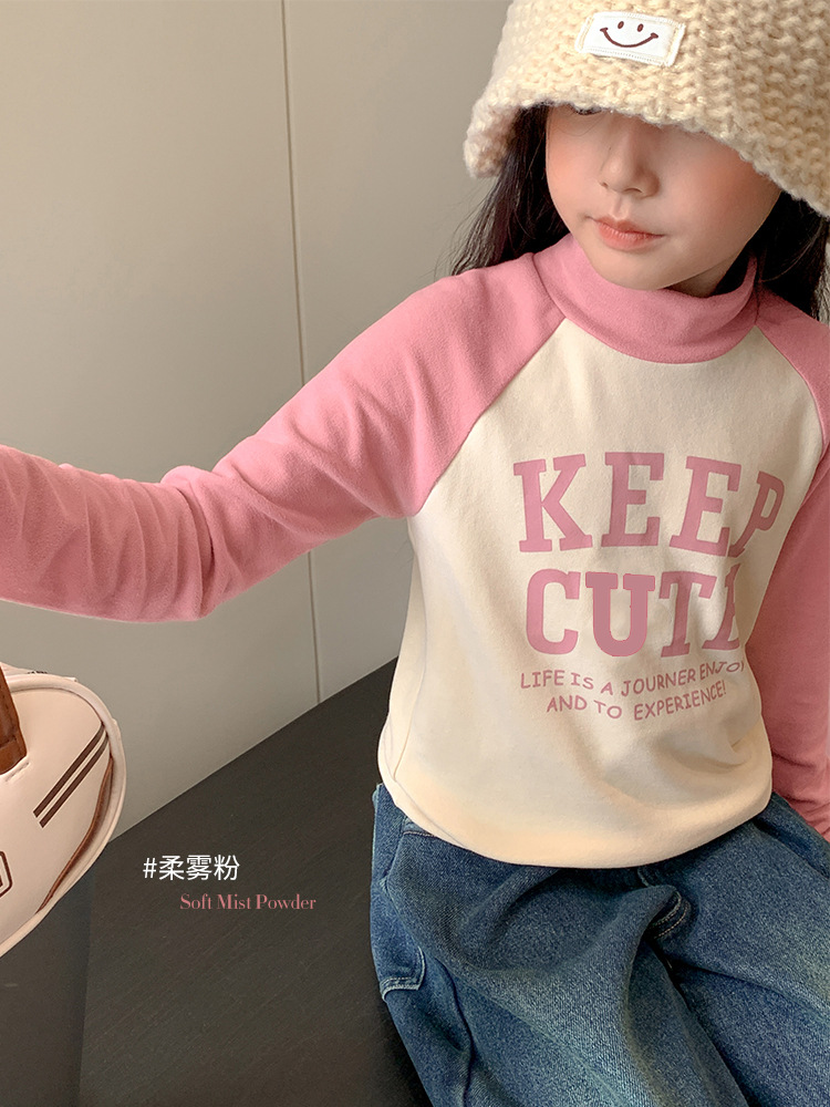 【高领保暖,潮流营造!】新款儿童打底衫t恤男童女童春秋,中大童德绒插肩打底衣中高领上衣,环保印花工艺,个性时尚!