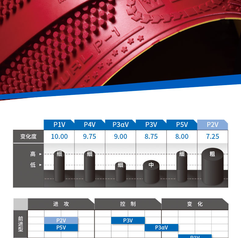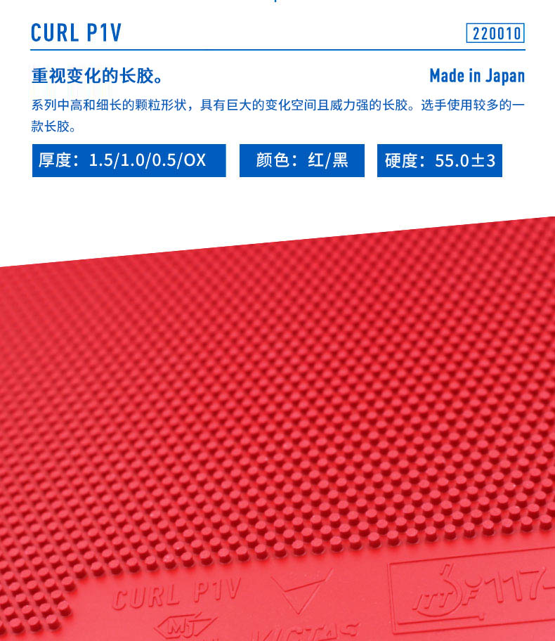 VICTAS长胶 P-1V P2V 套胶CURL单胶皮P1V削球原TSP