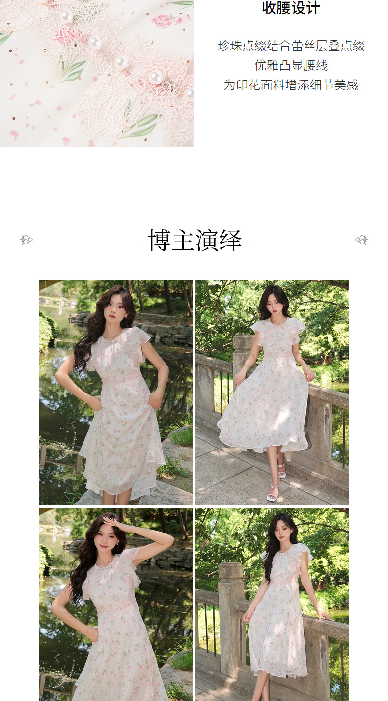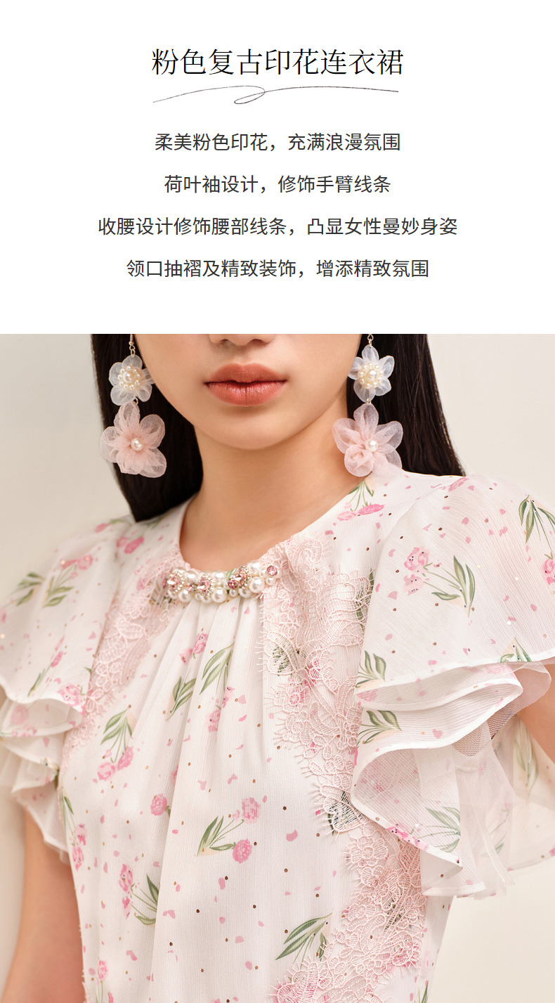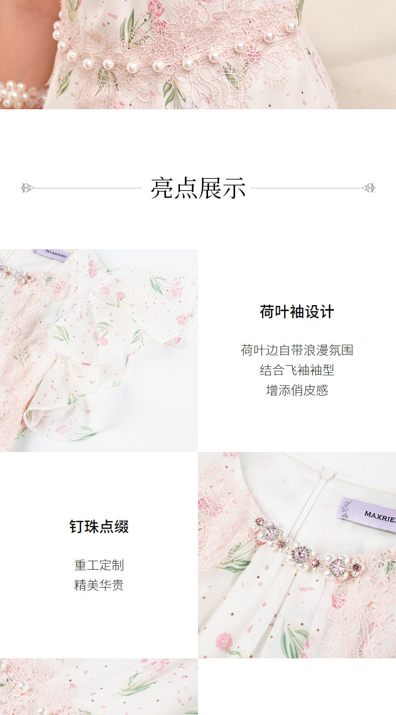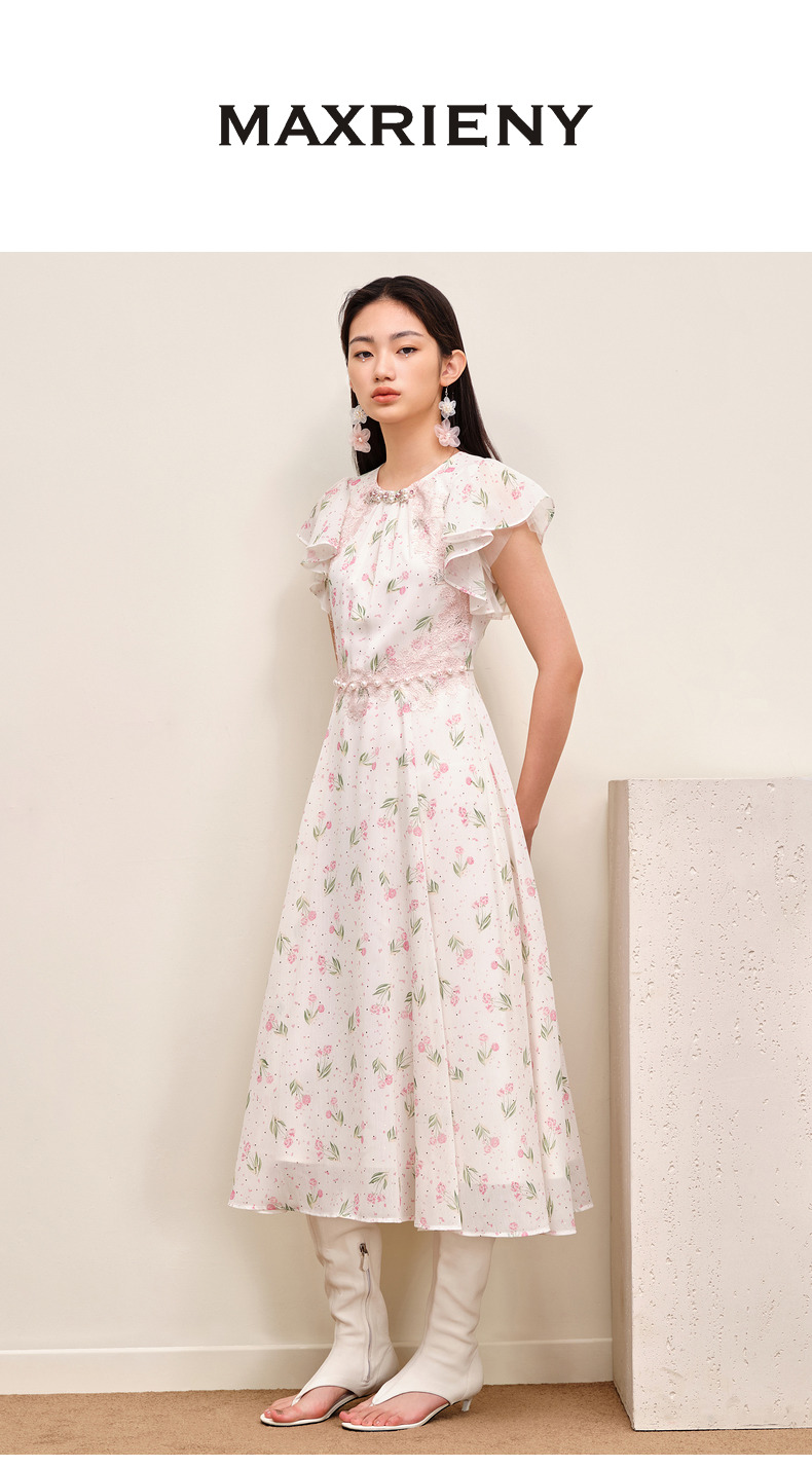 MAXRIENY欧式园艺风连衣裙温柔碎花雪纺裙浪漫长裙(货号:MS88DR541)