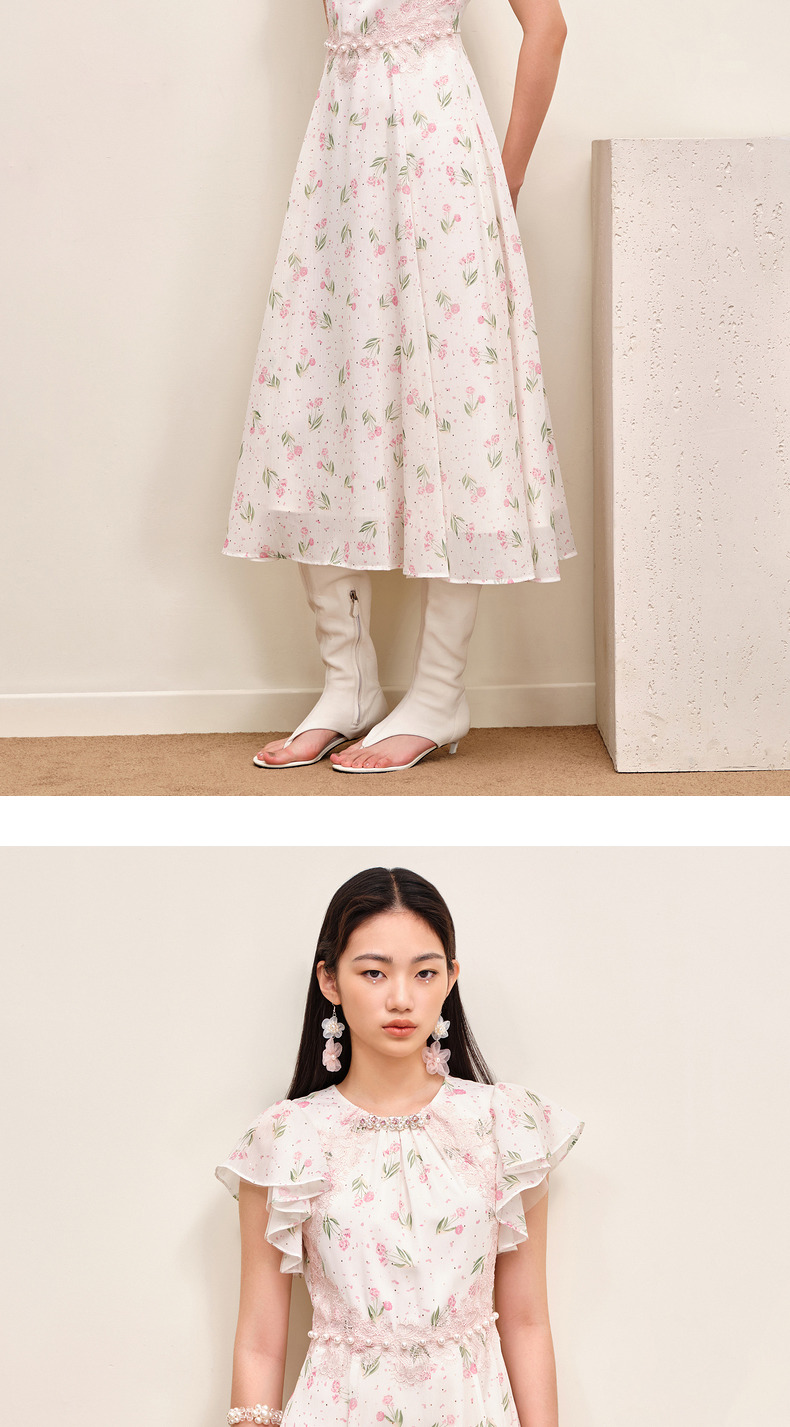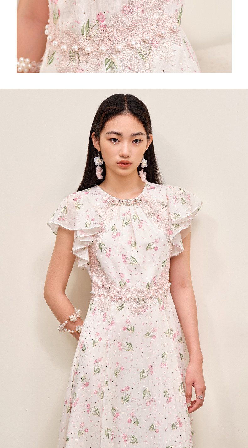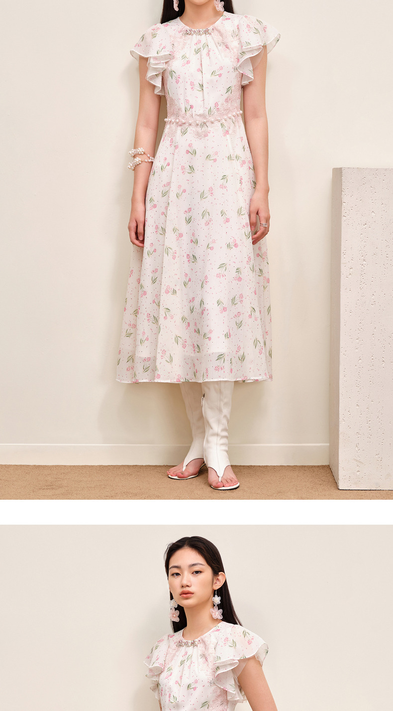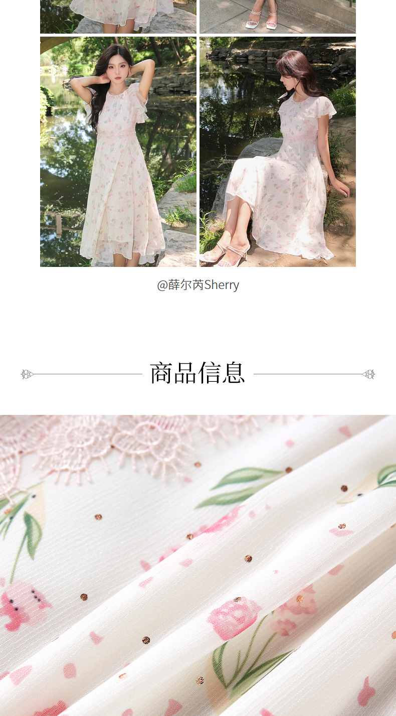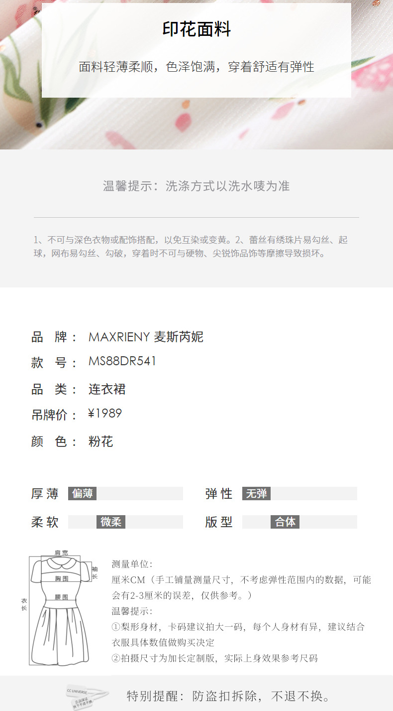 MAXRIENY欧式园艺风连衣裙温柔碎花雪纺裙浪漫长裙(货号:MS88DR541)