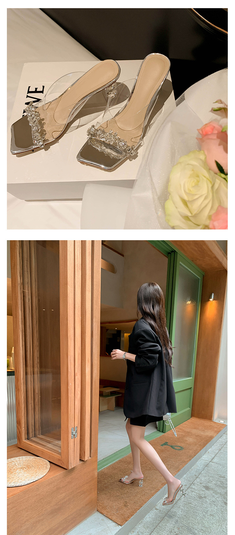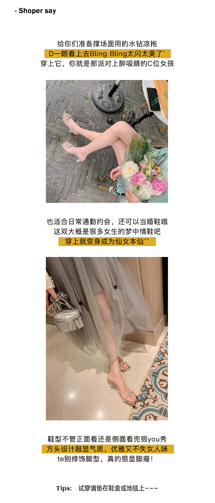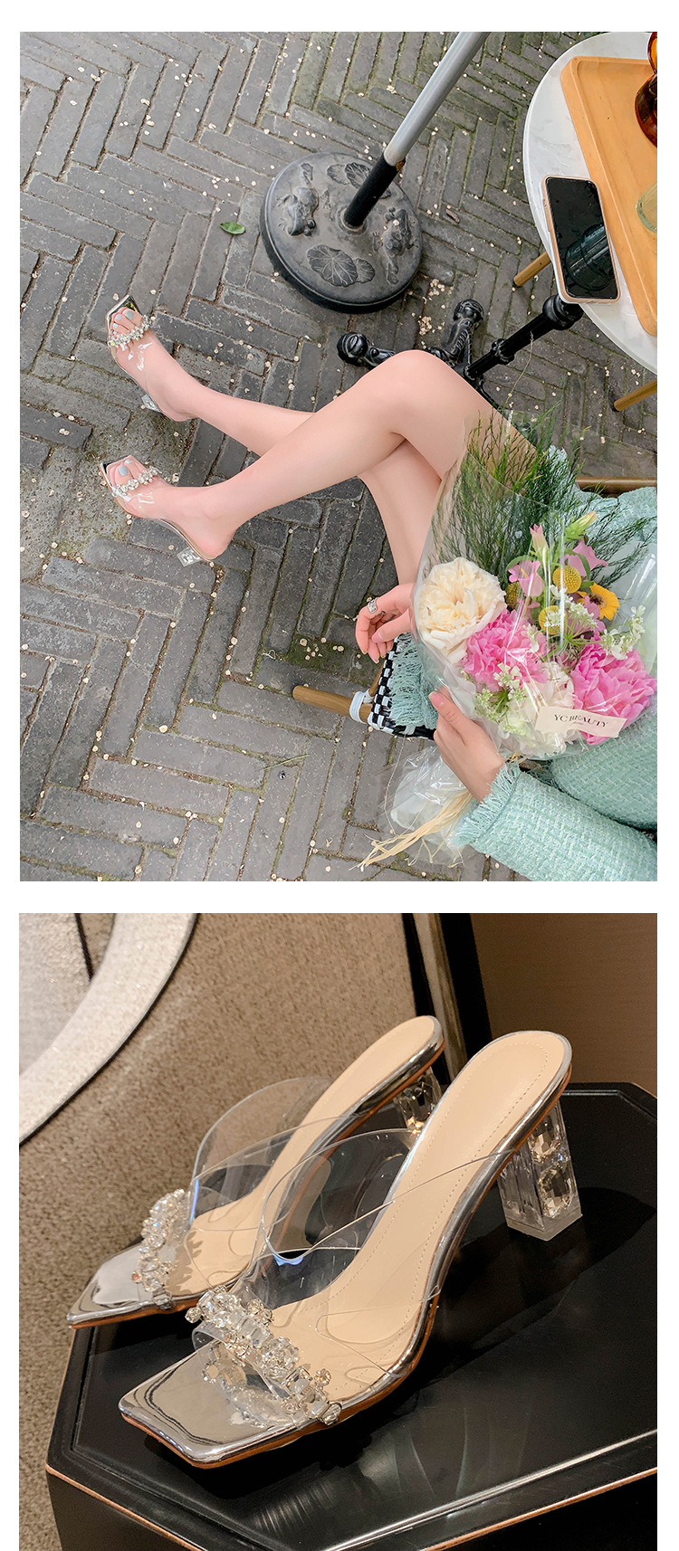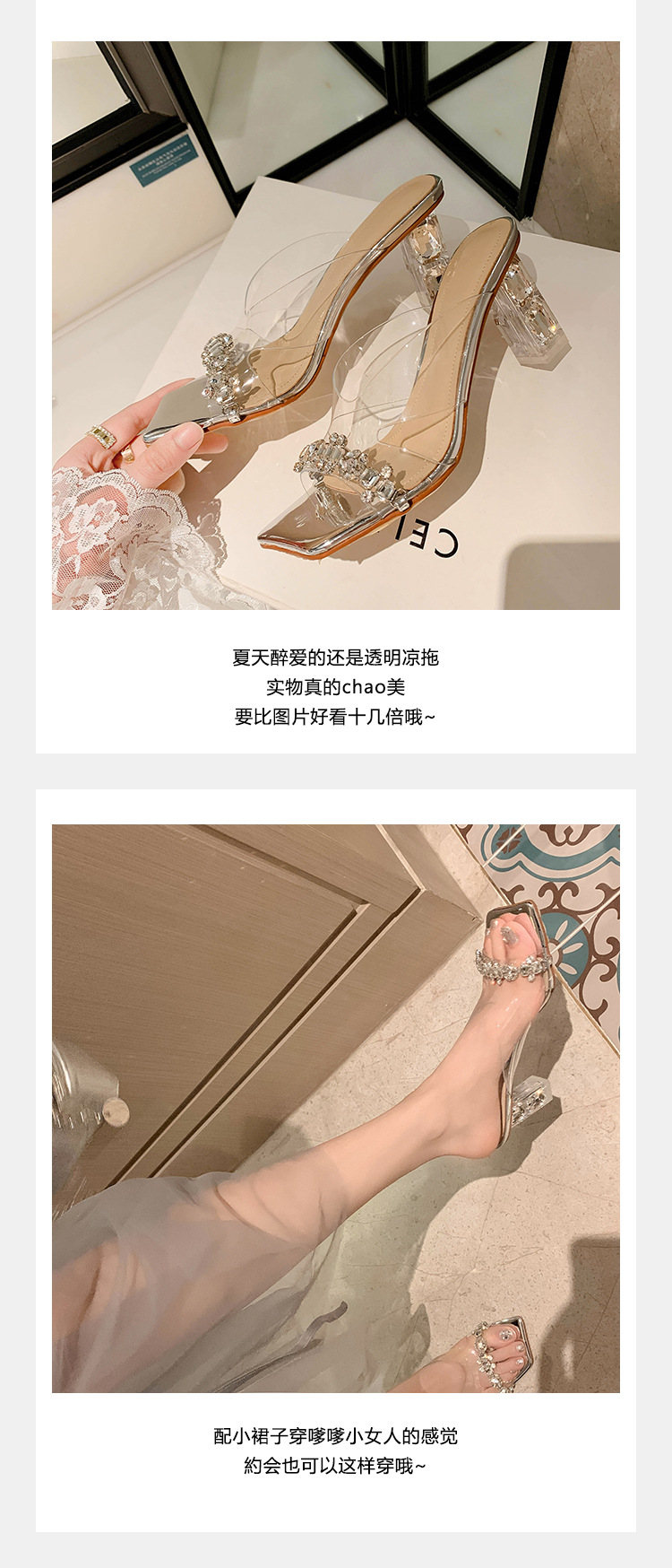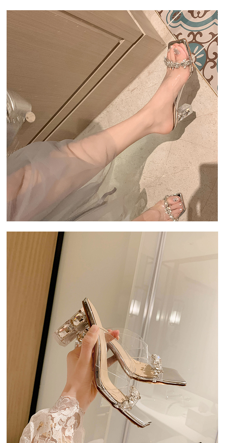 YLY&W0092INS 巨美自留!bing透明水钻银色仙女凉拖鞋外穿时尚水晶高跟凉鞋