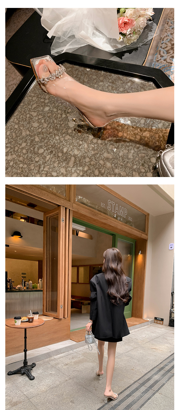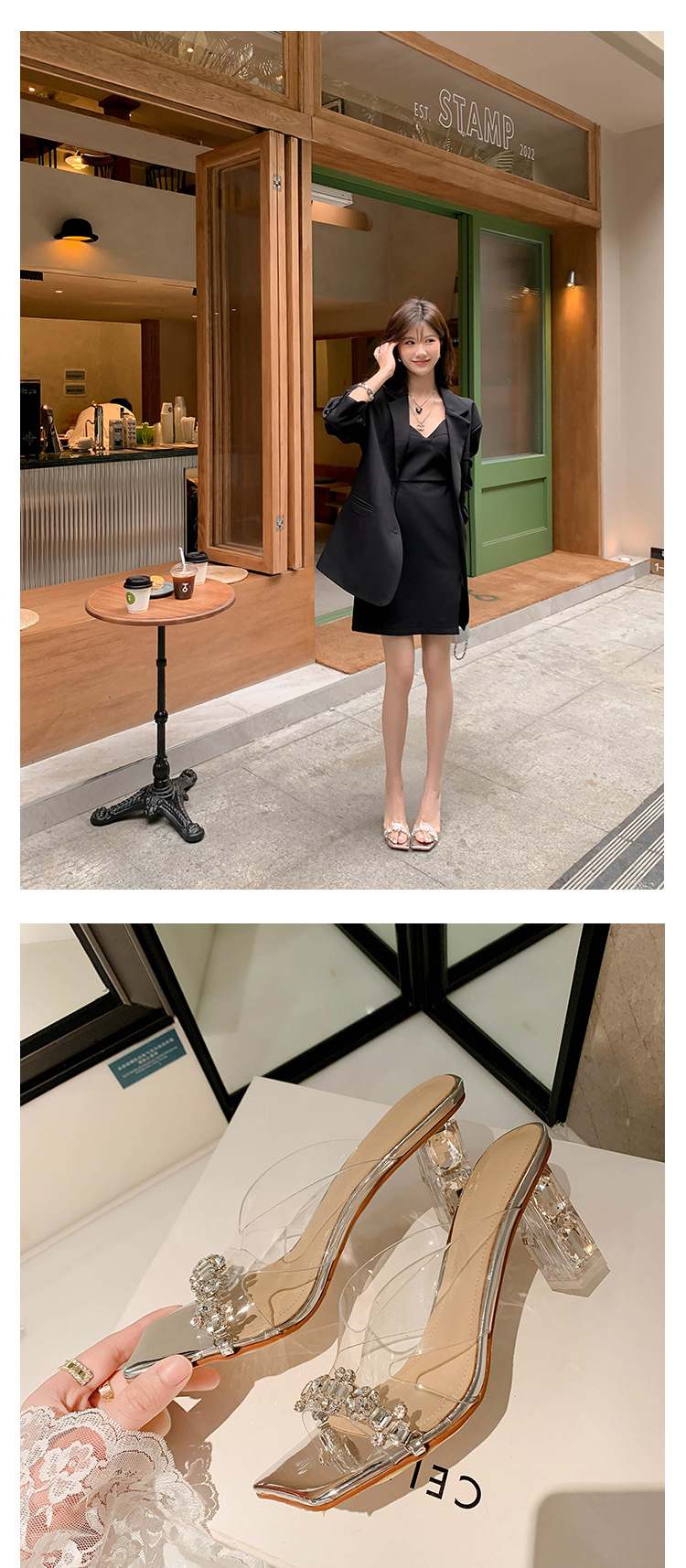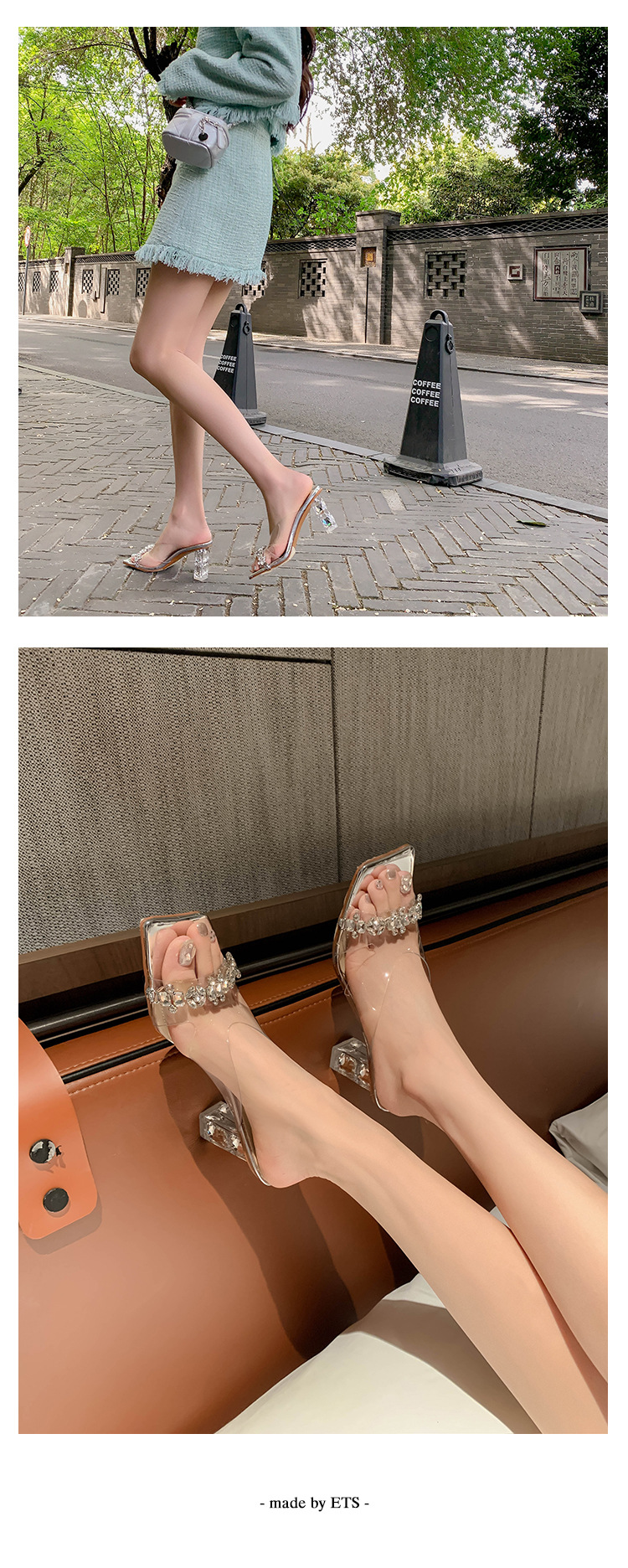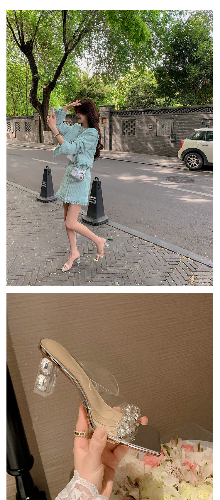 YLY&W0092INS 巨美自留!bing透明水钻银色仙女凉拖鞋外穿时尚水晶高跟凉鞋