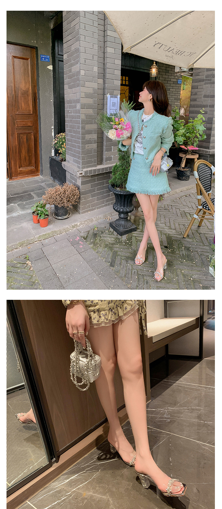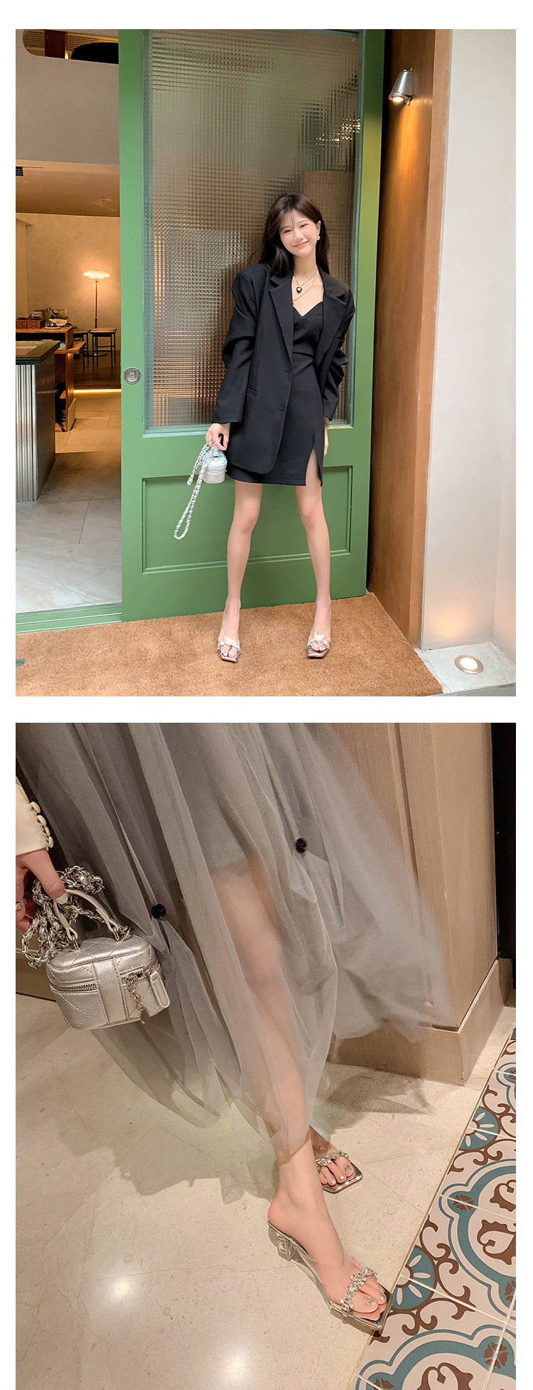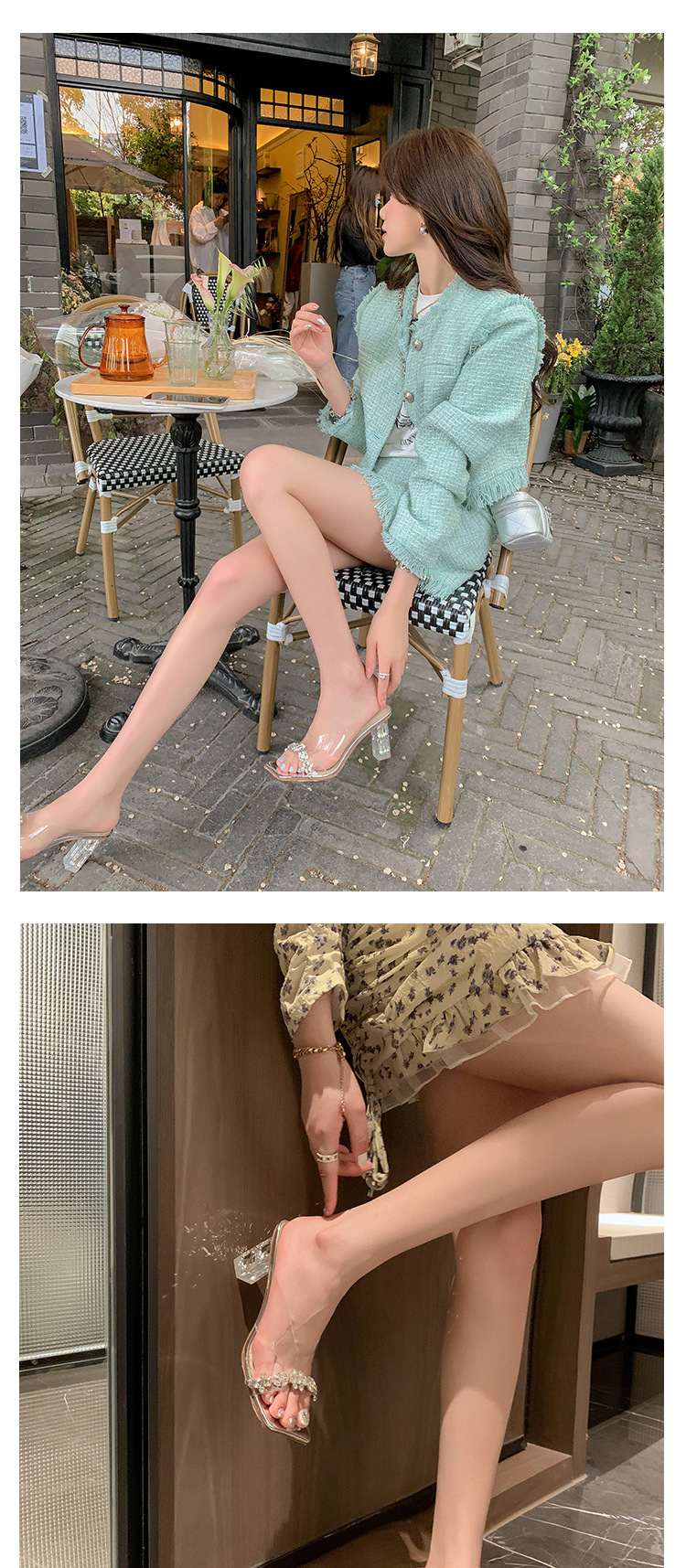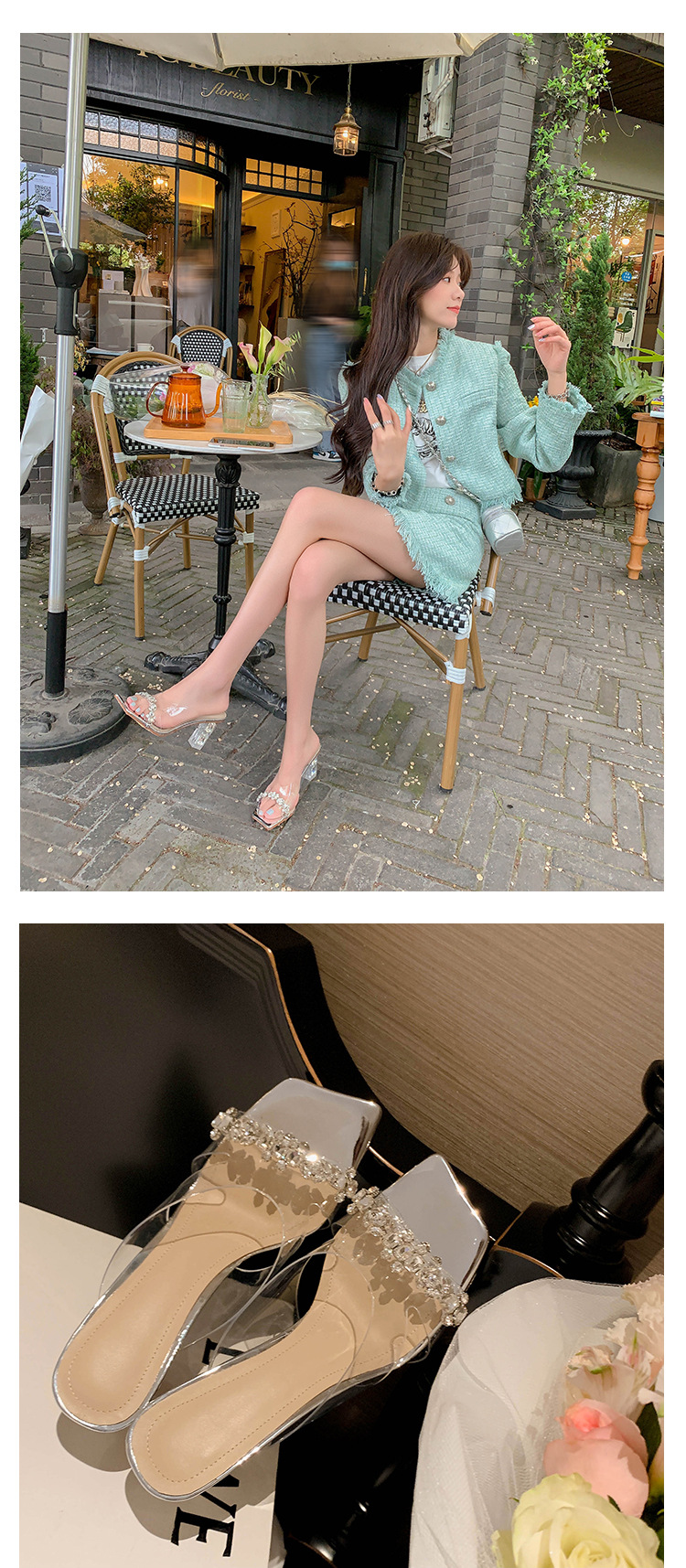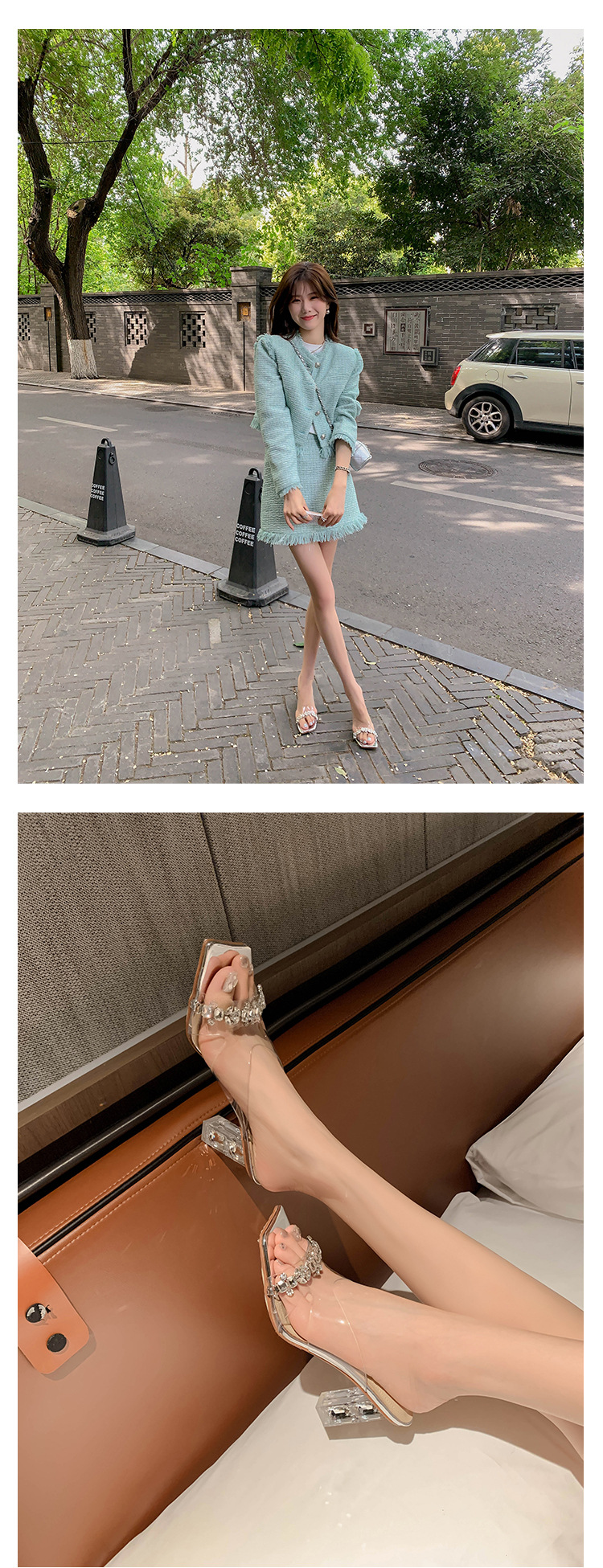 YLY&W0092INS 巨美自留!bing透明水钻银色仙女凉拖鞋外穿时尚水晶高跟凉鞋