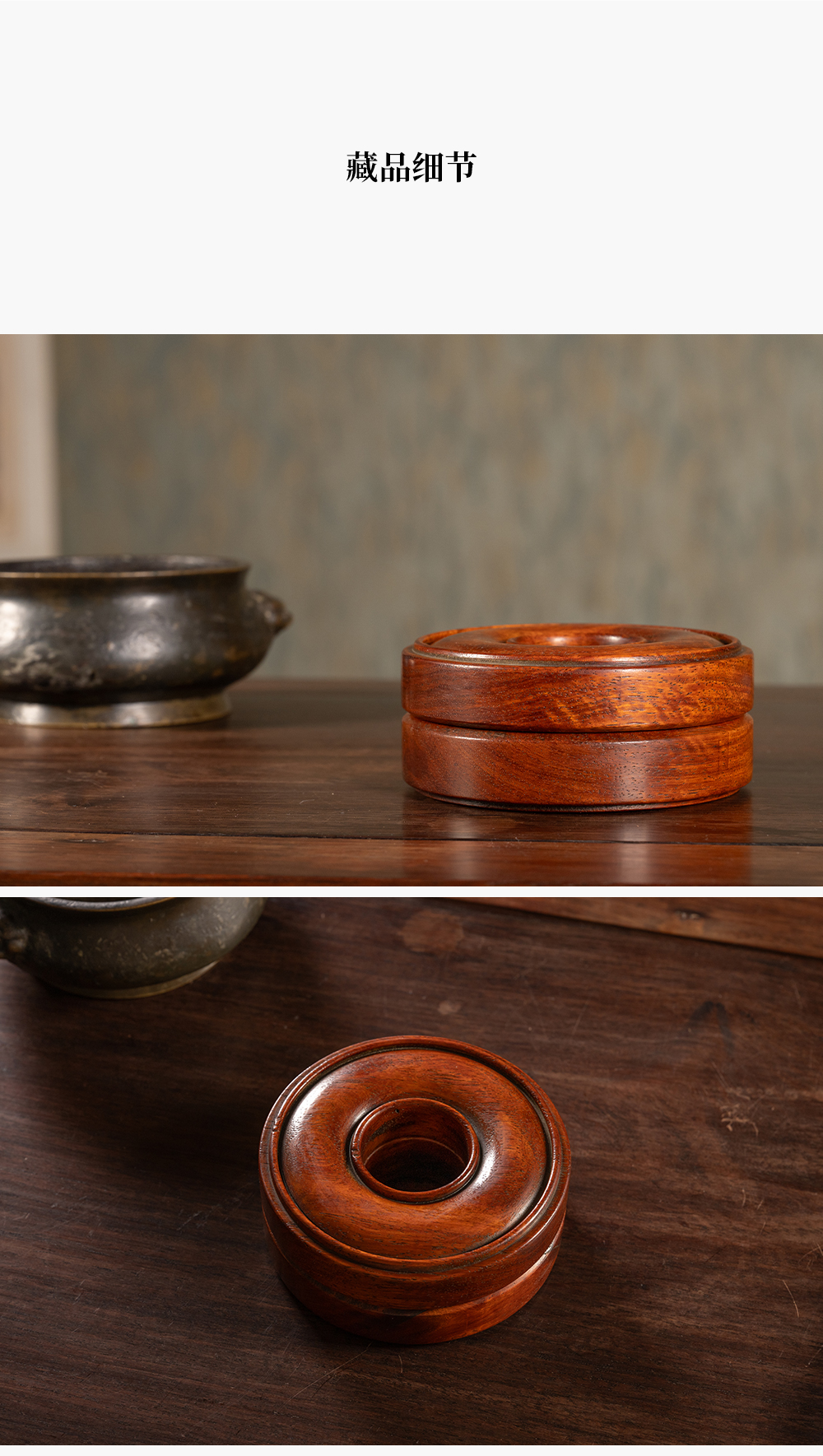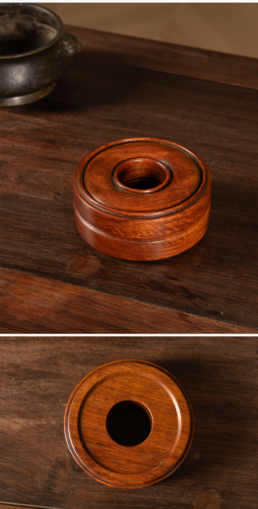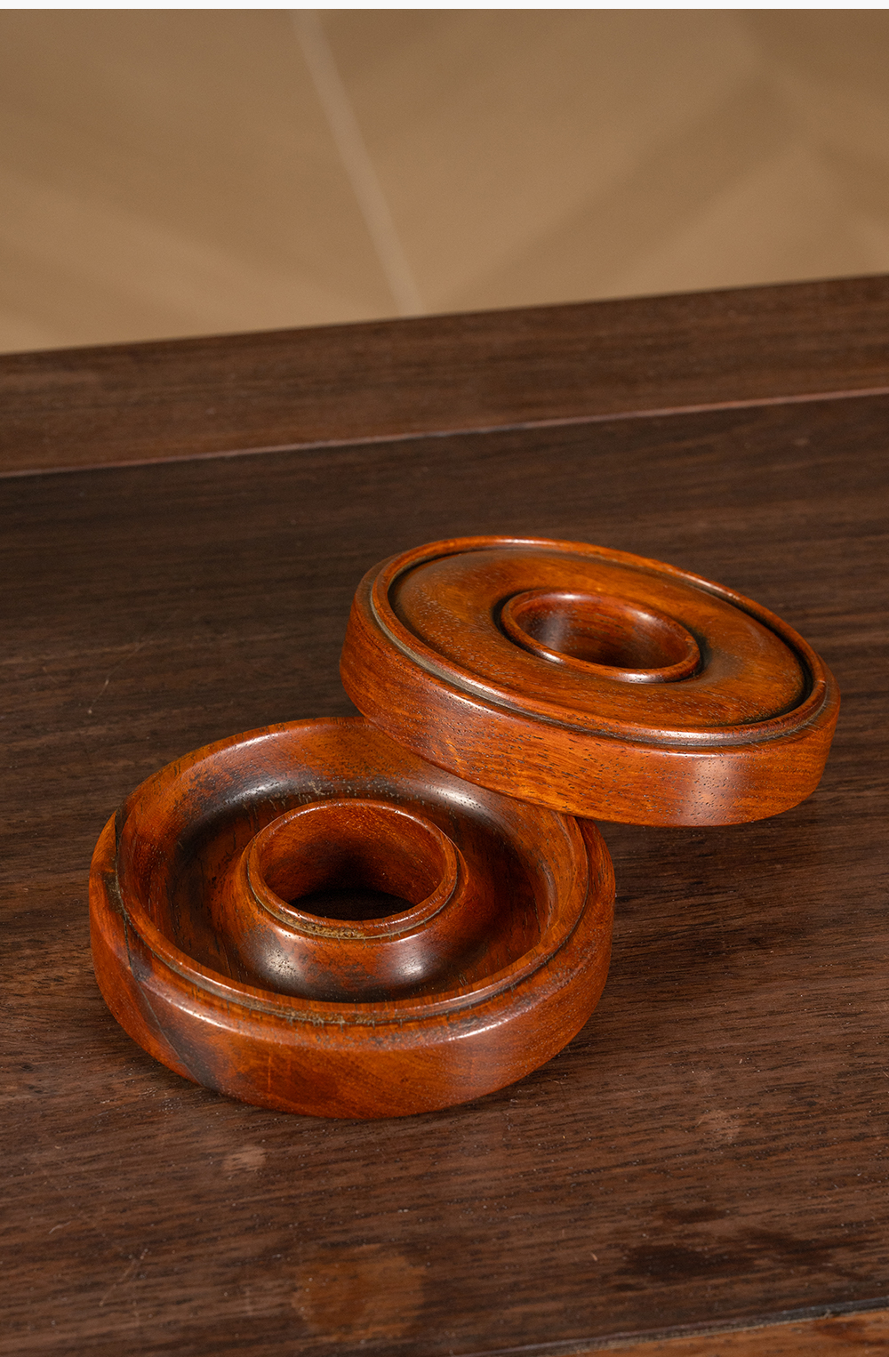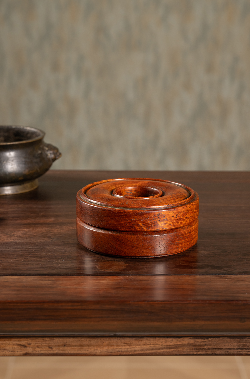 清 青金石嵌绿松石莲花盖盒(红木座)