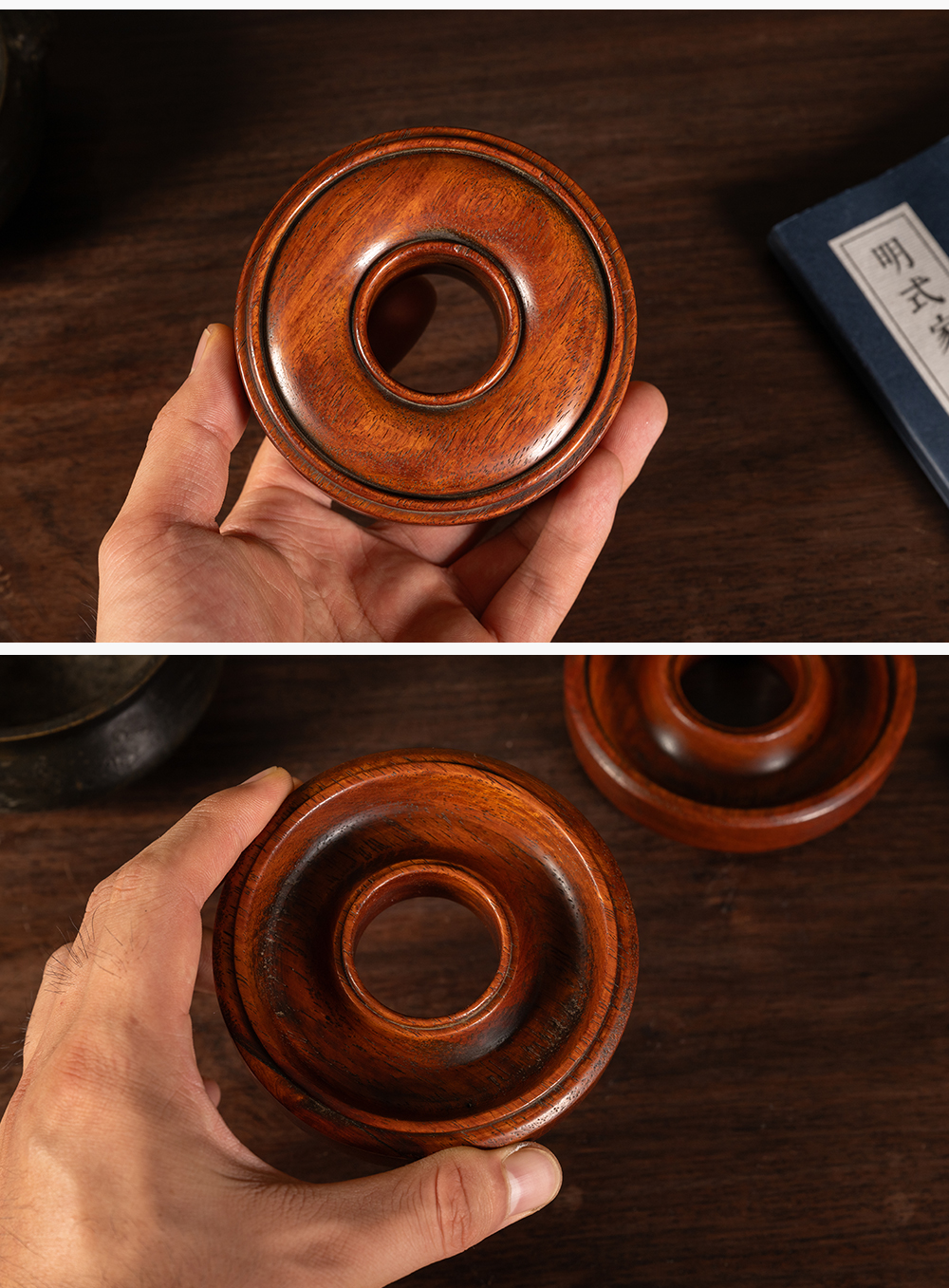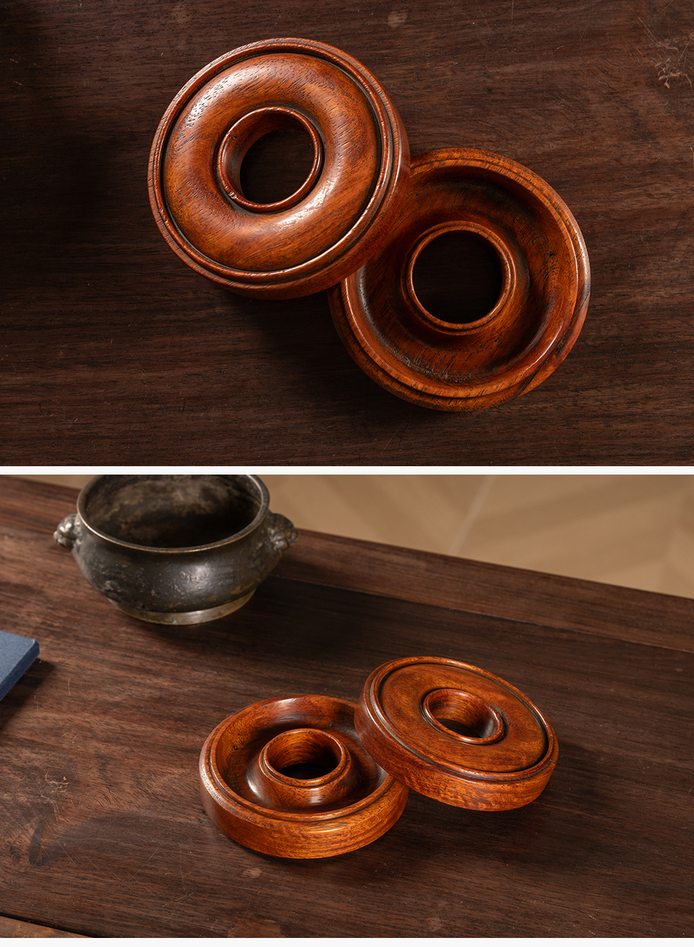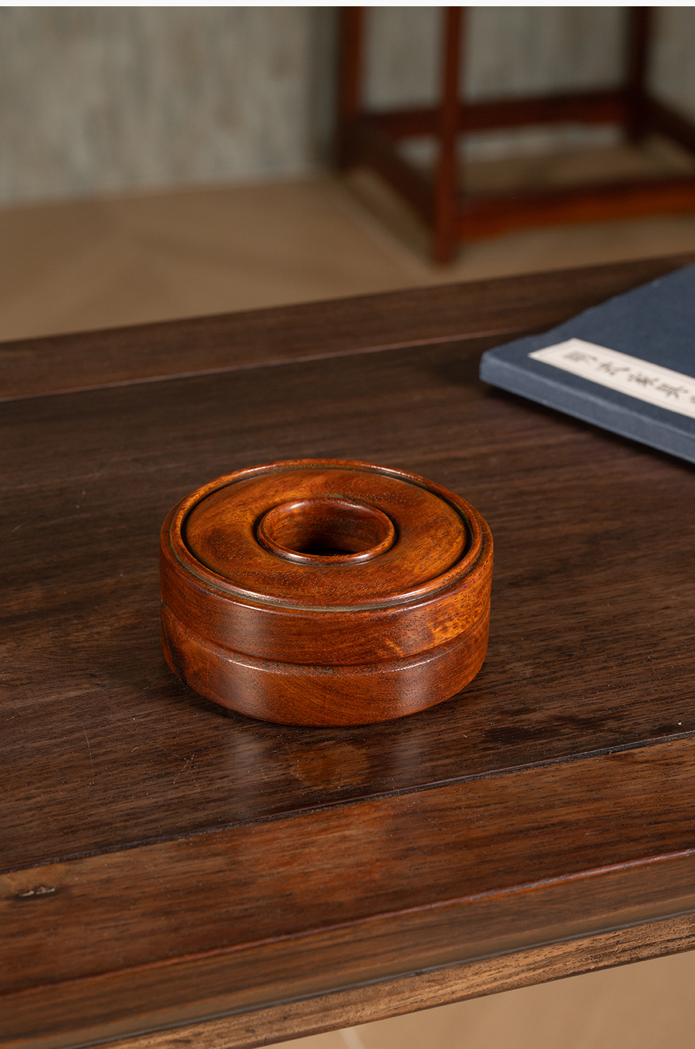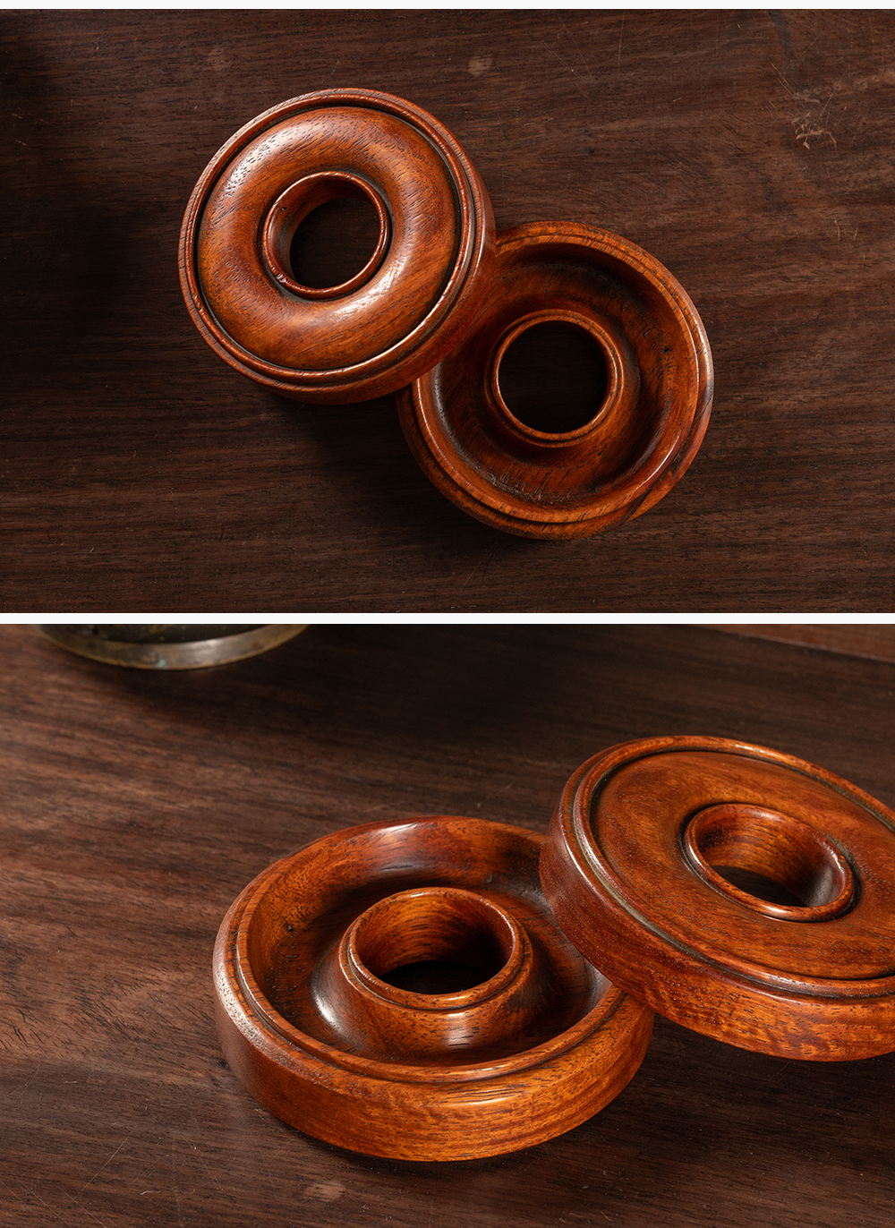 清 青金石嵌绿松石莲花盖盒(红木座)