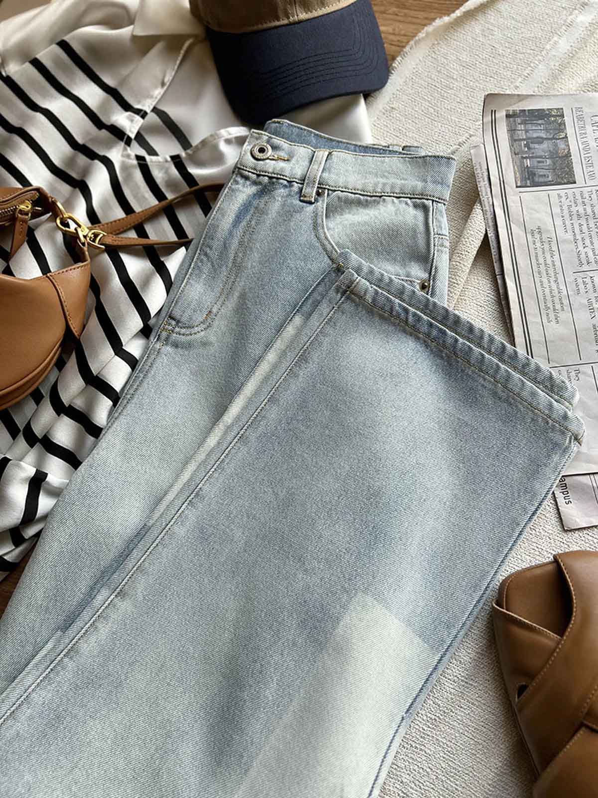 版型无敌,显瘦显高方格设计牛仔裤简直A爆~