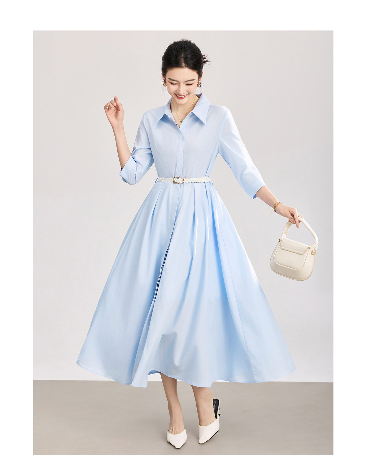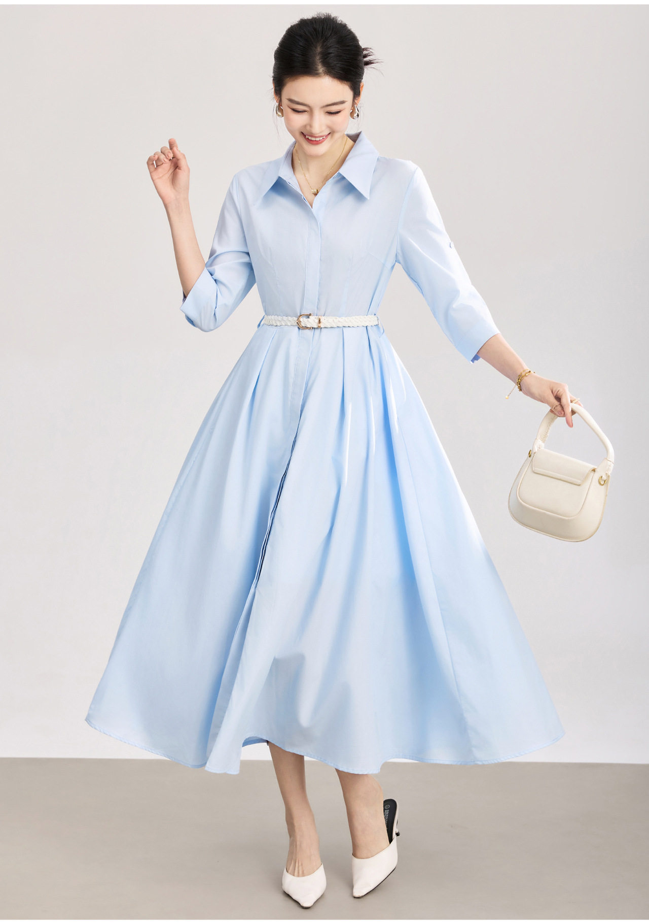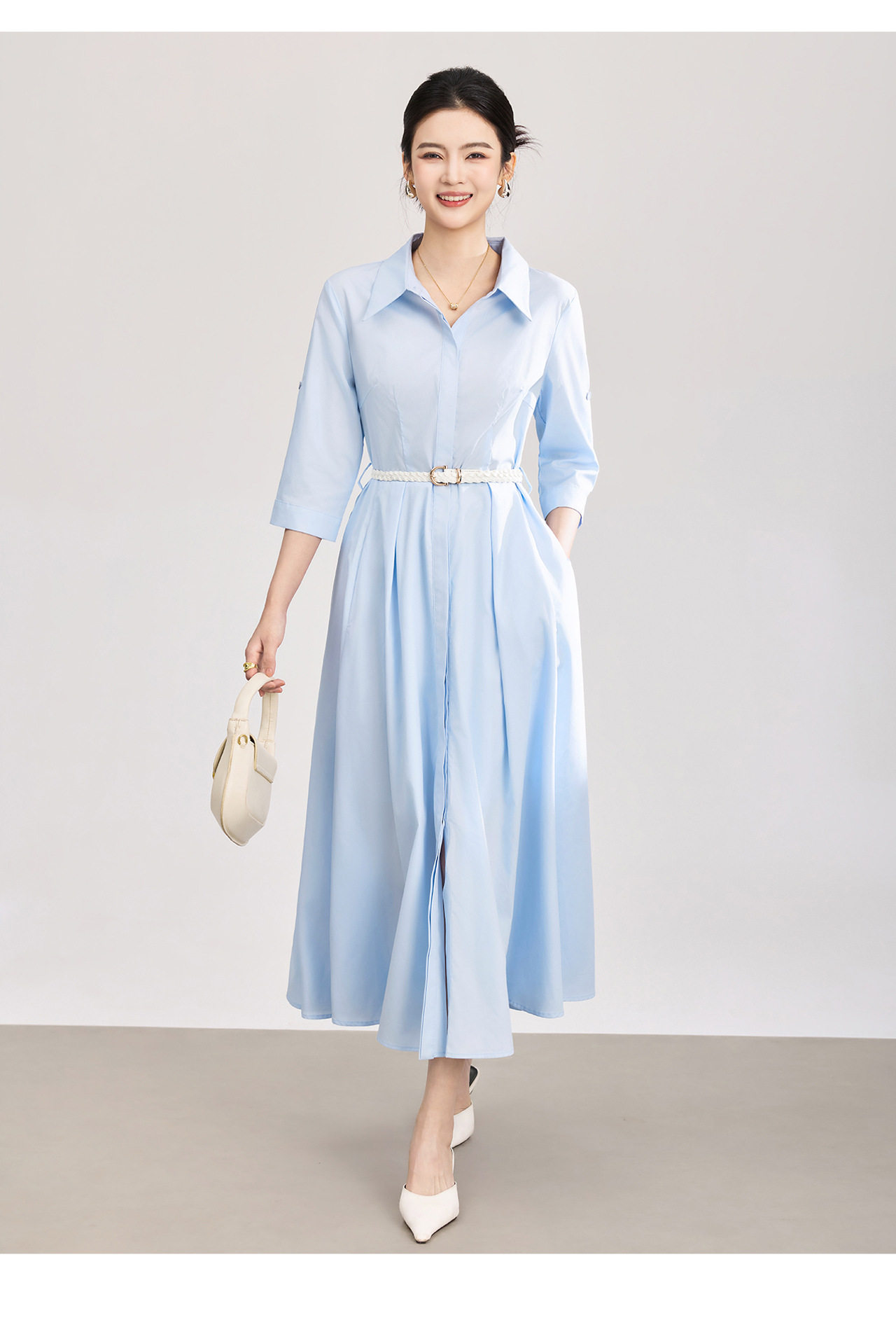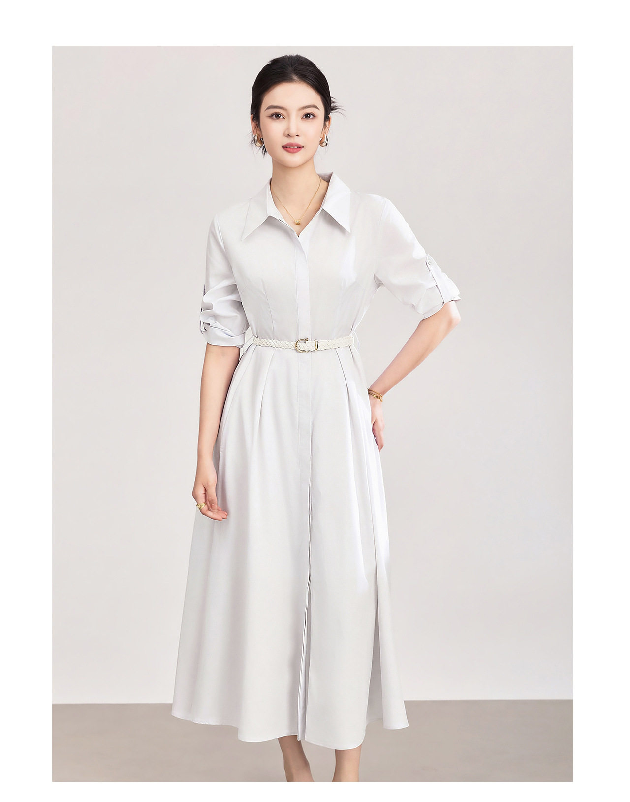 「高货wl」全新升级【铂金会员358/天猫479/差价121】(05644)洛诗琳淡雅气质翻领连衣裙2026春夏通勤天丝棉收腰衬衫裙