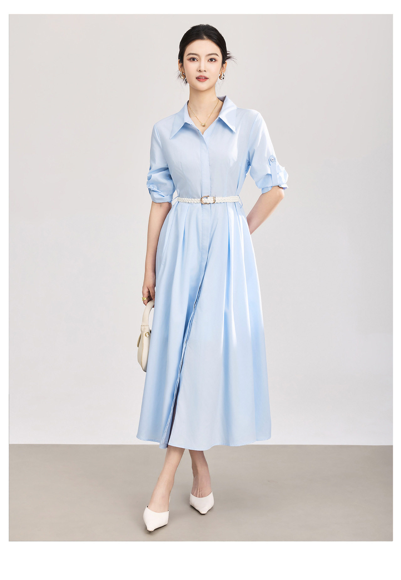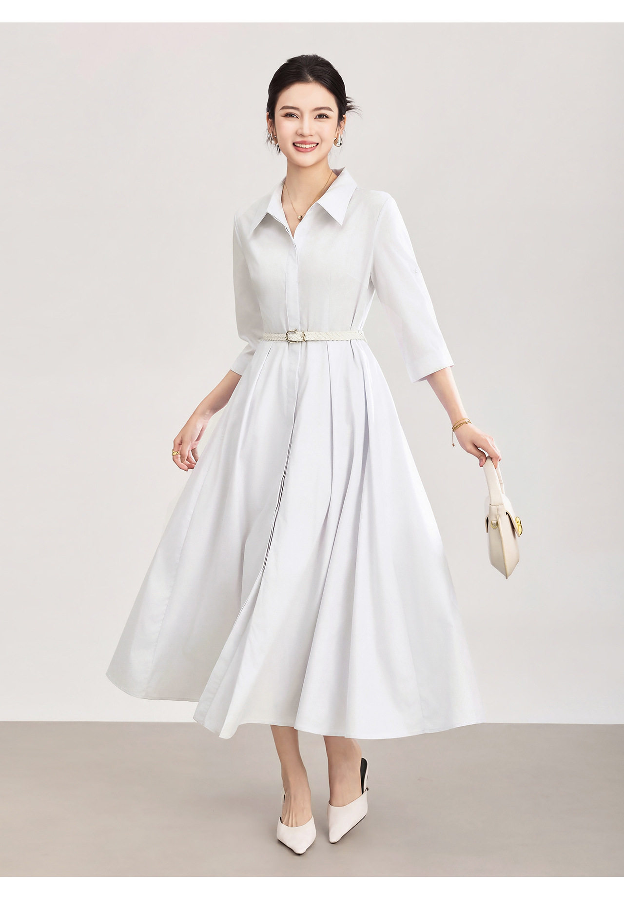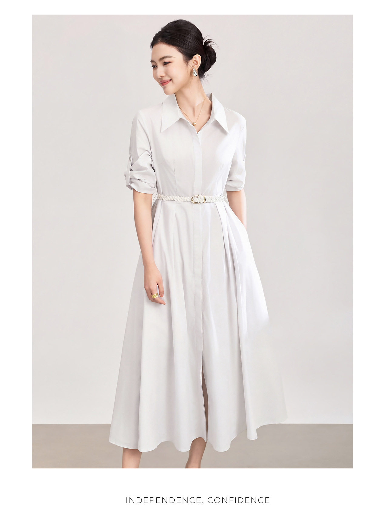 「高货wl」全新升级【铂金会员358/天猫479/差价121】(05644)洛诗琳淡雅气质翻领连衣裙2026春夏通勤天丝棉收腰衬衫裙